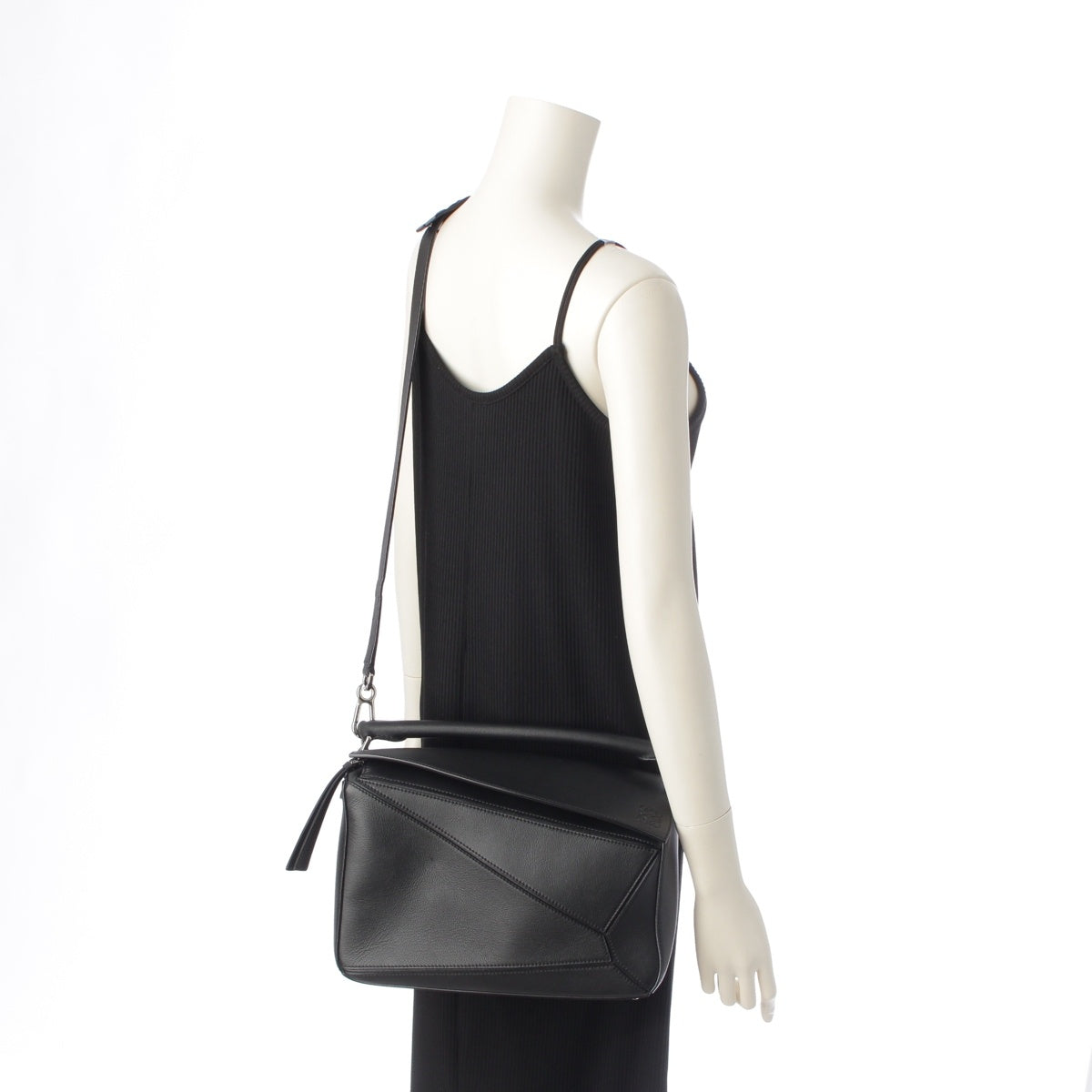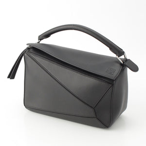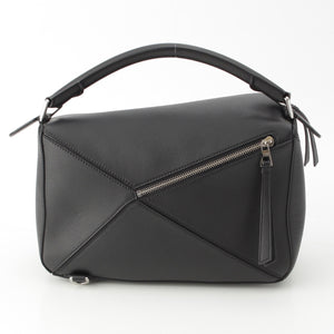 LOEWE leather Puzzle SilverMetal Handbag 2WAY Shoulder black medium