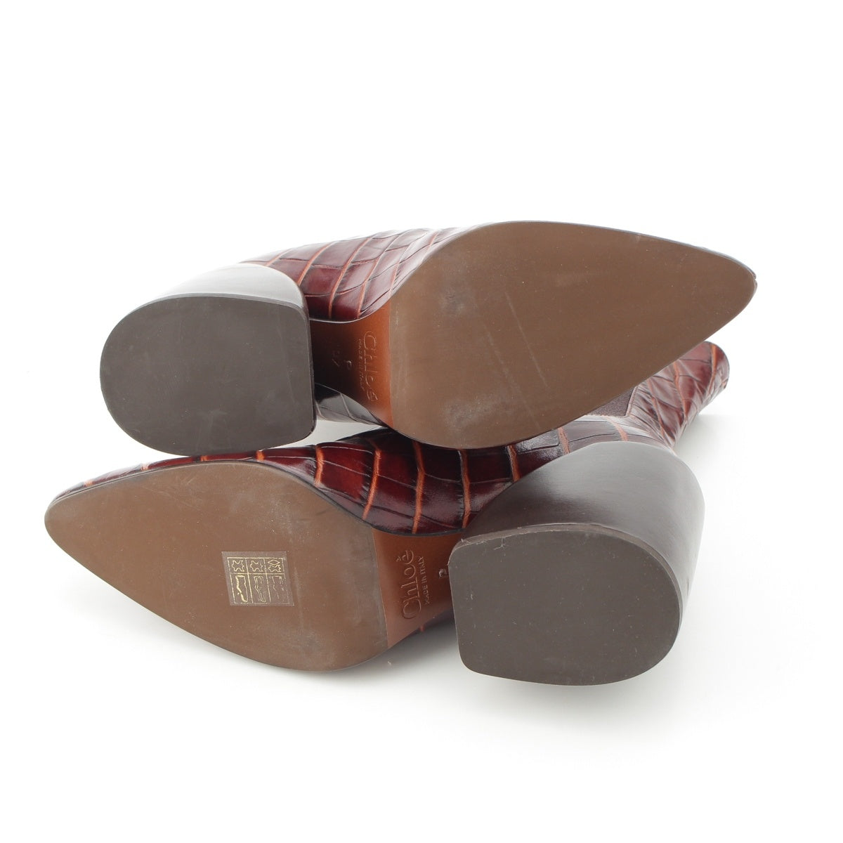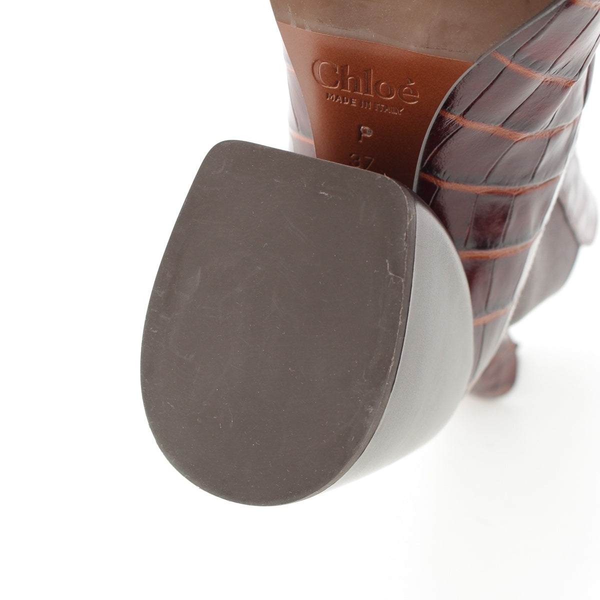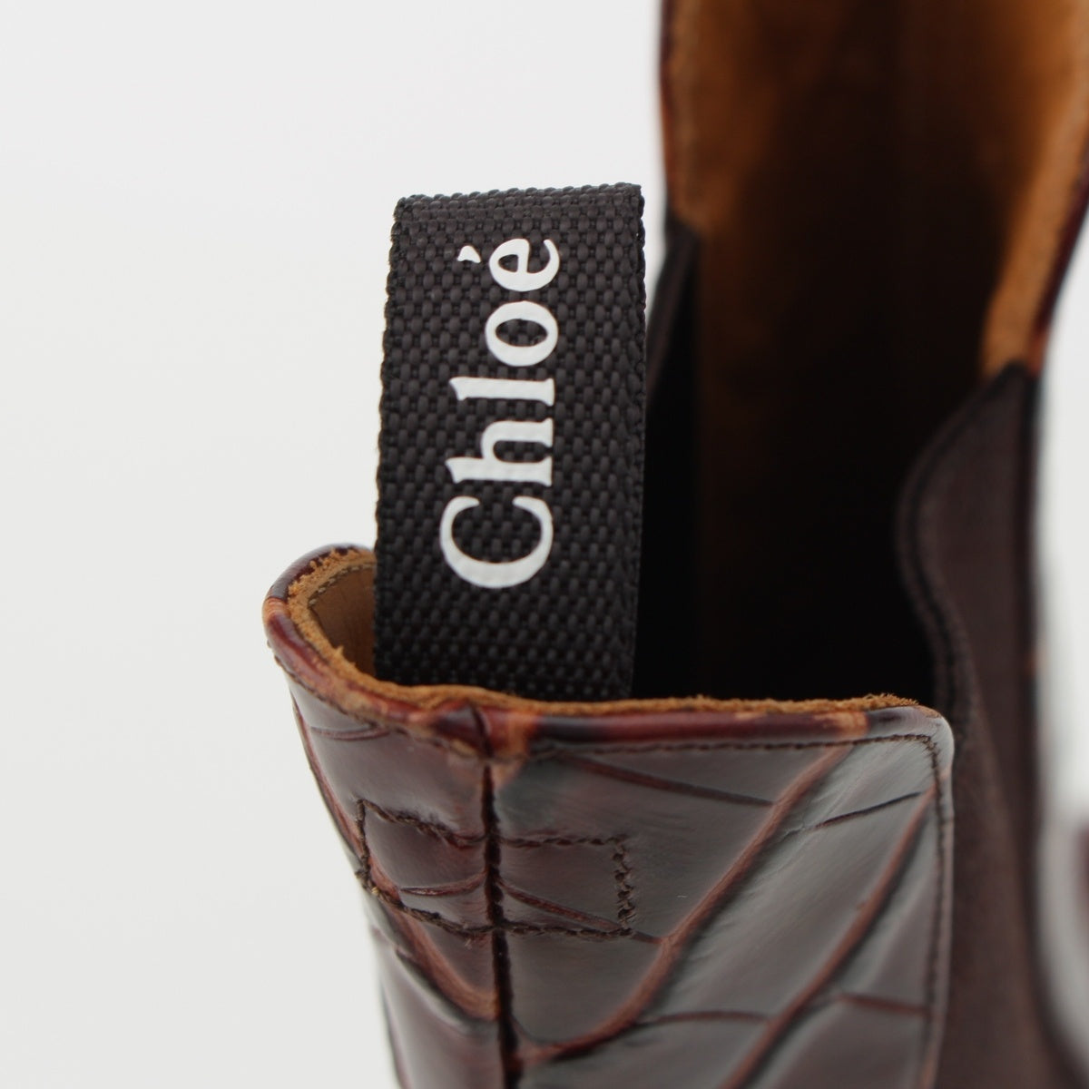 Chloe Embossed leather Chunky heels with side gore boots Brown black 37