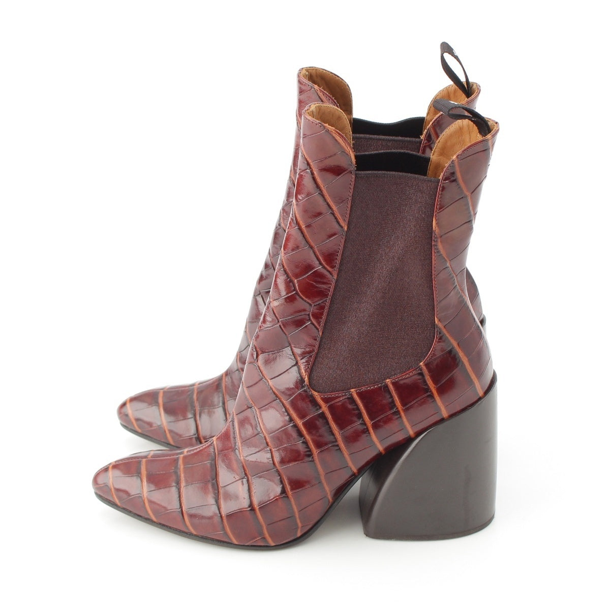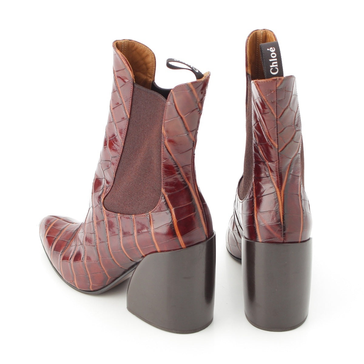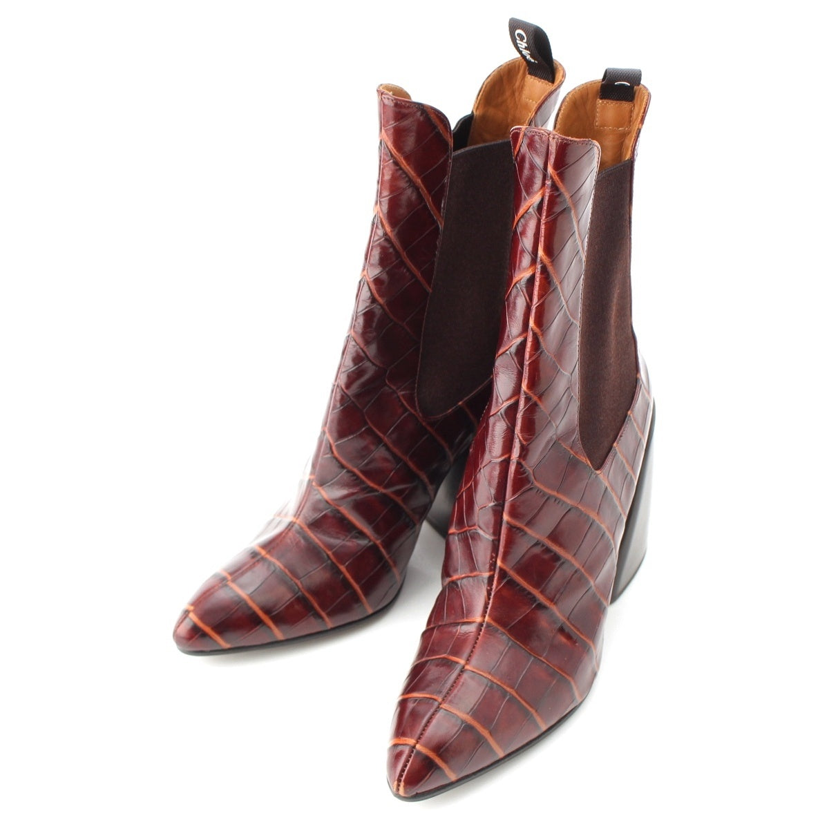 Chloe Embossed leather Chunky heels with side gore boots Brown black 37