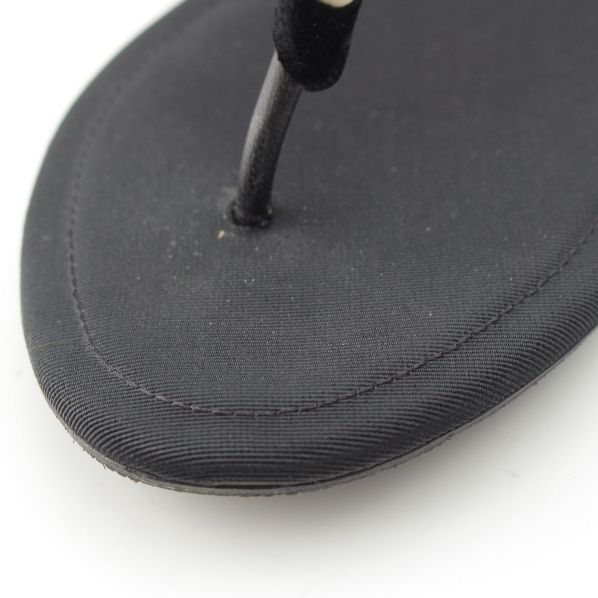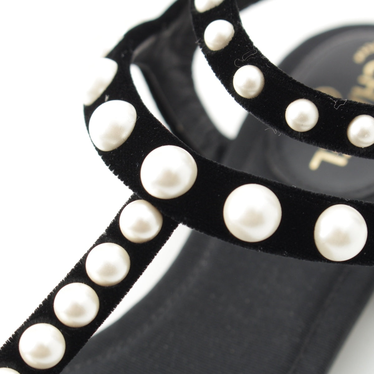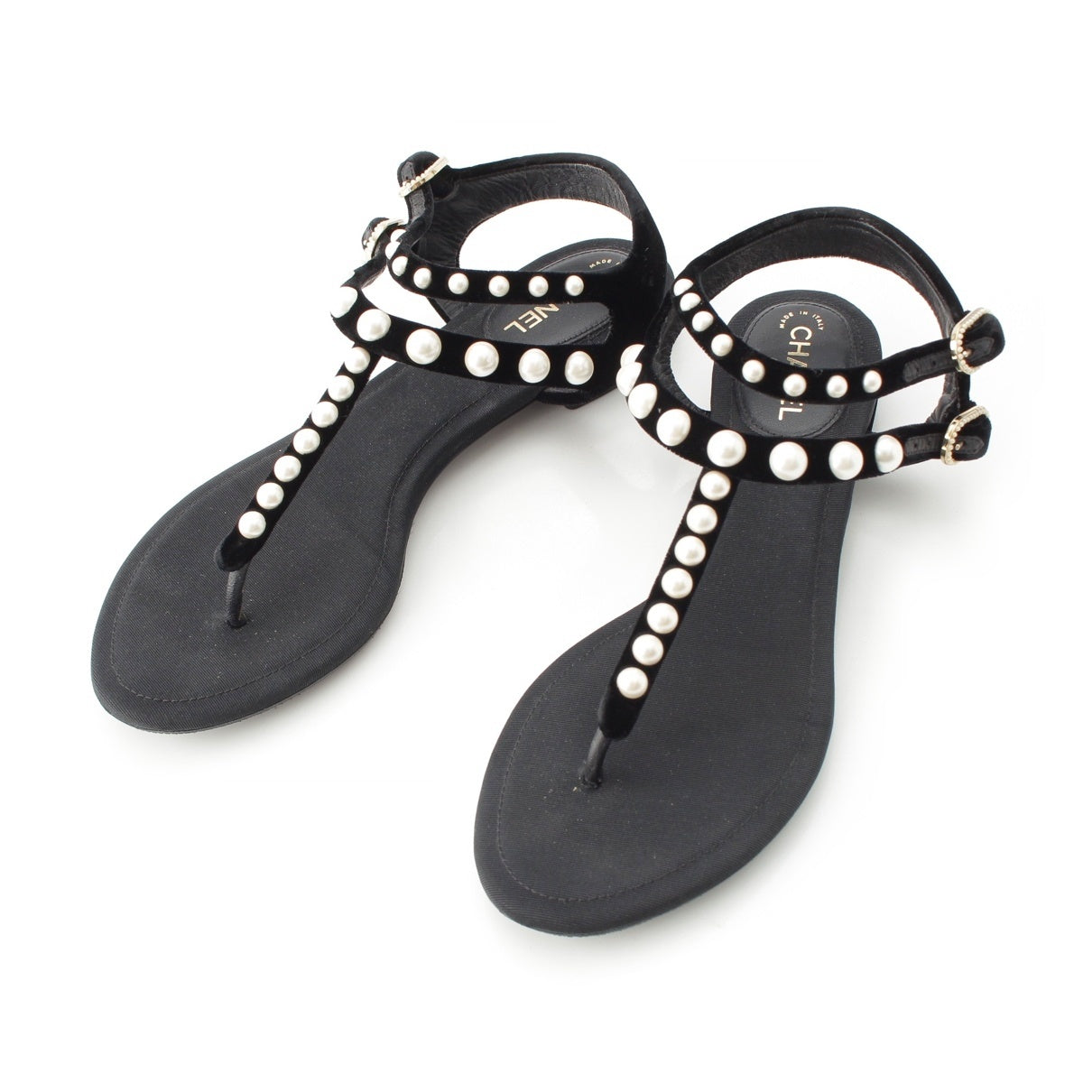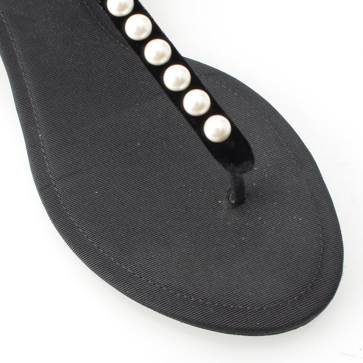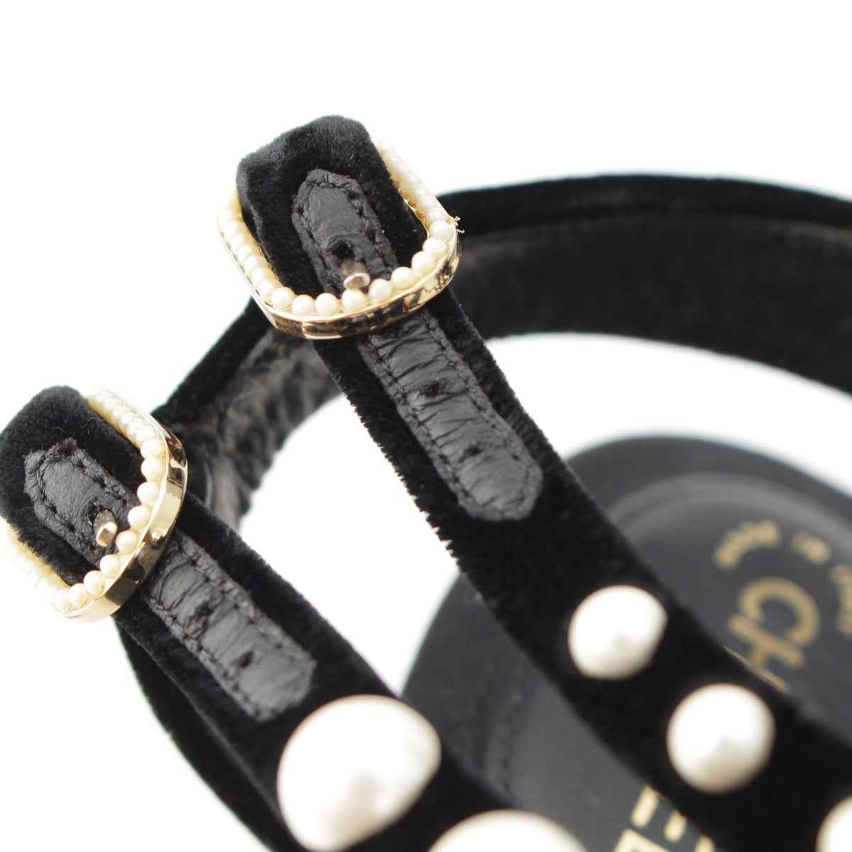 CHANEL Suede Pearl Toggle Sandals Shoes Flats black 36C