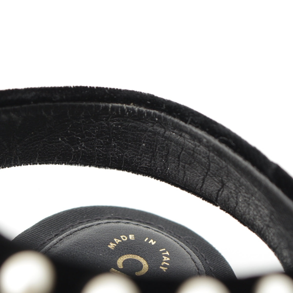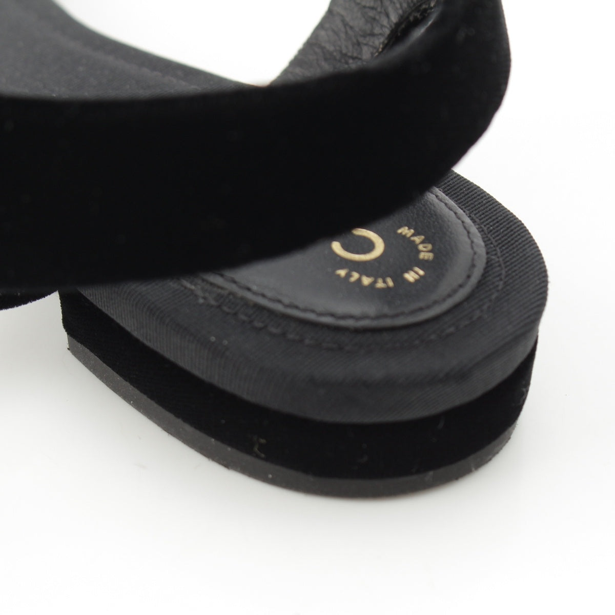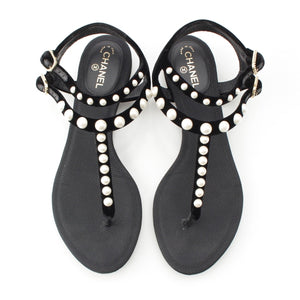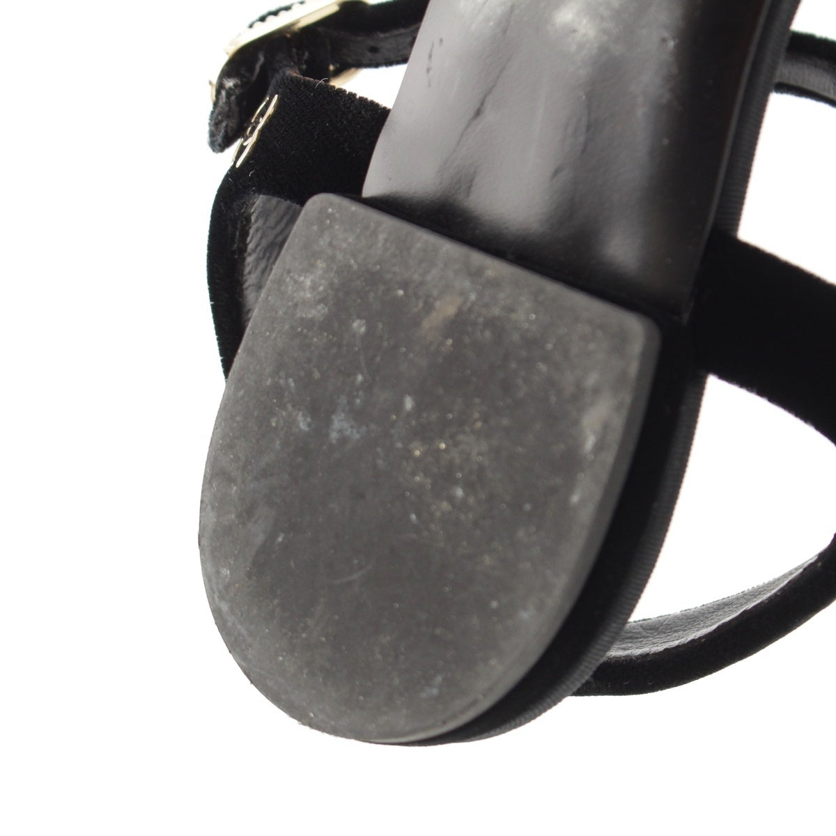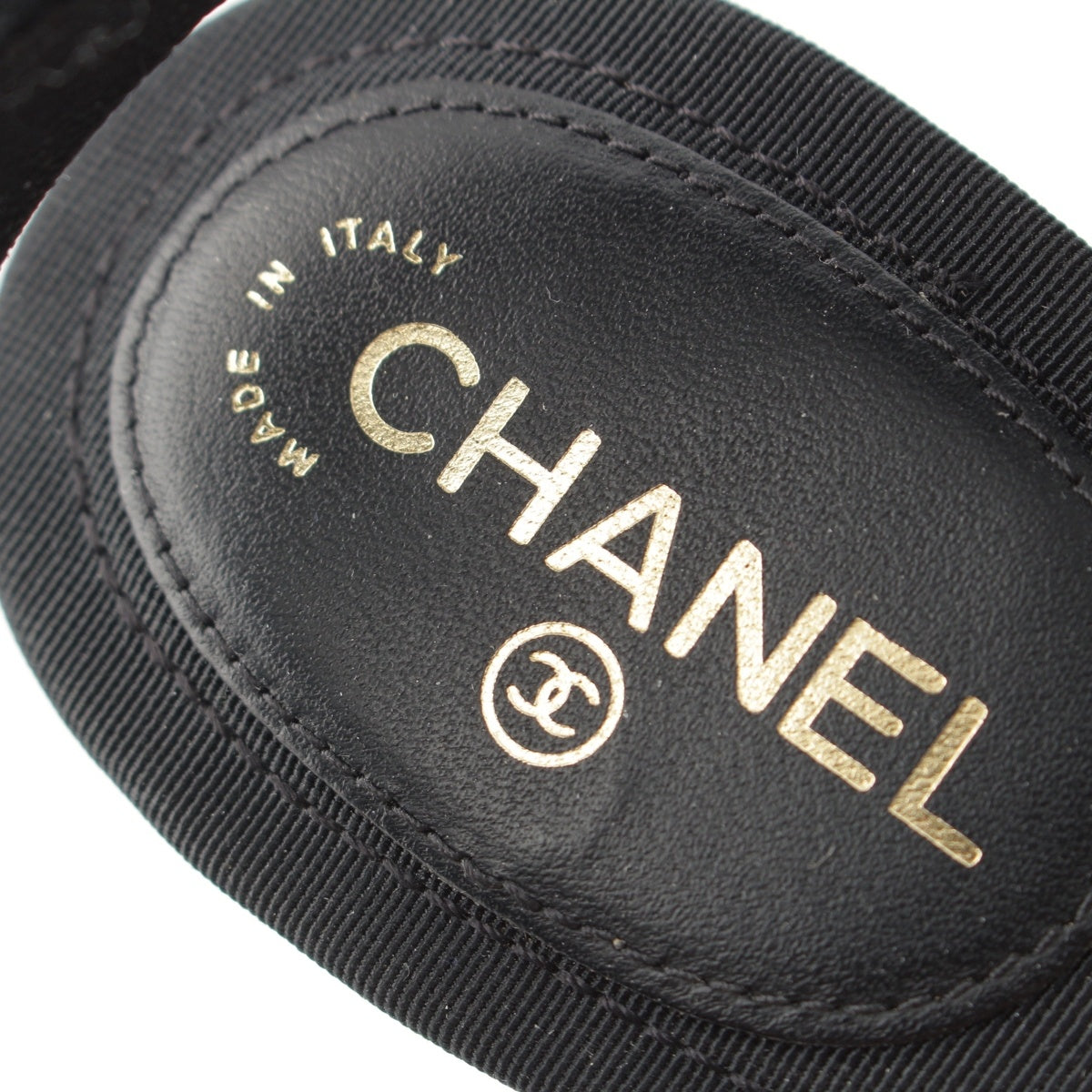CHANEL Suede Pearl Toggle Sandals Shoes Flats black 36C