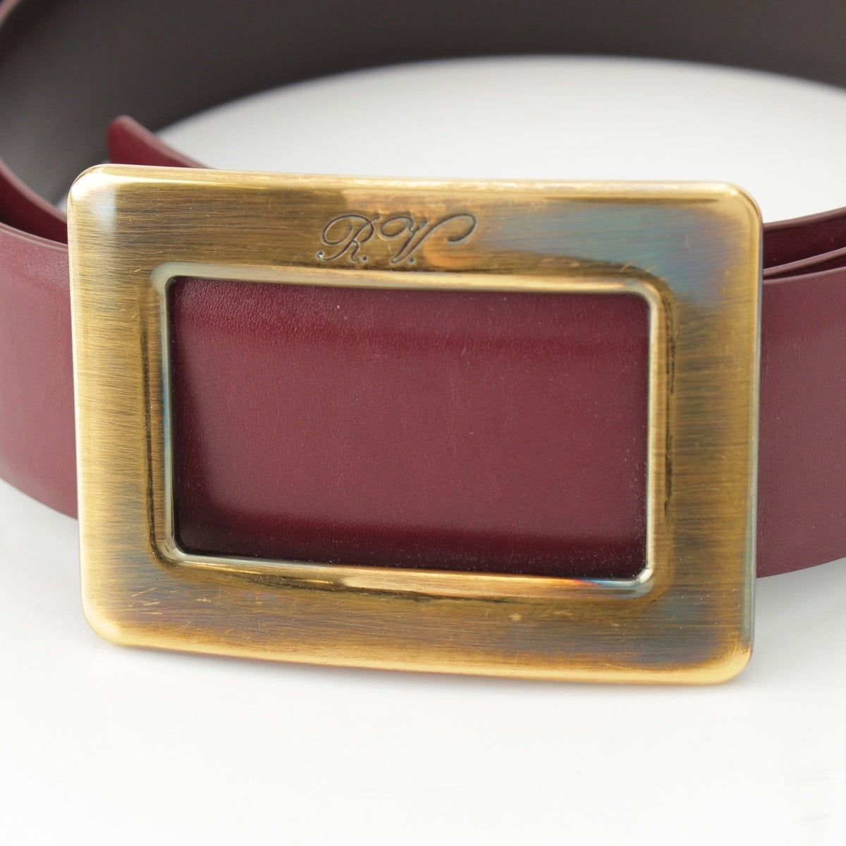 Roger Vivier leather Antique Gold Metal belt Accessory wine-red