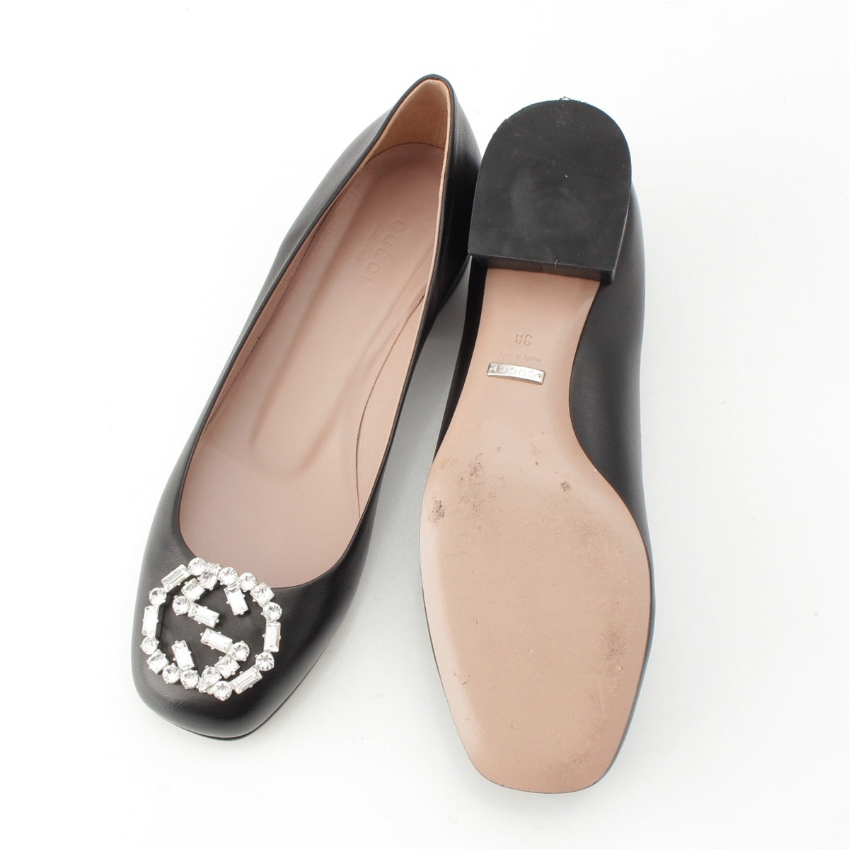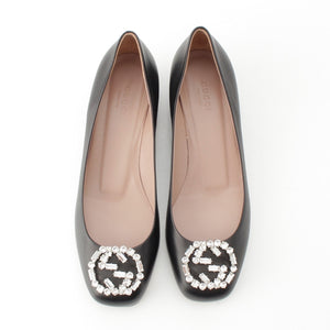 GUCCI leather GG beaded heels pumps shoes black 380