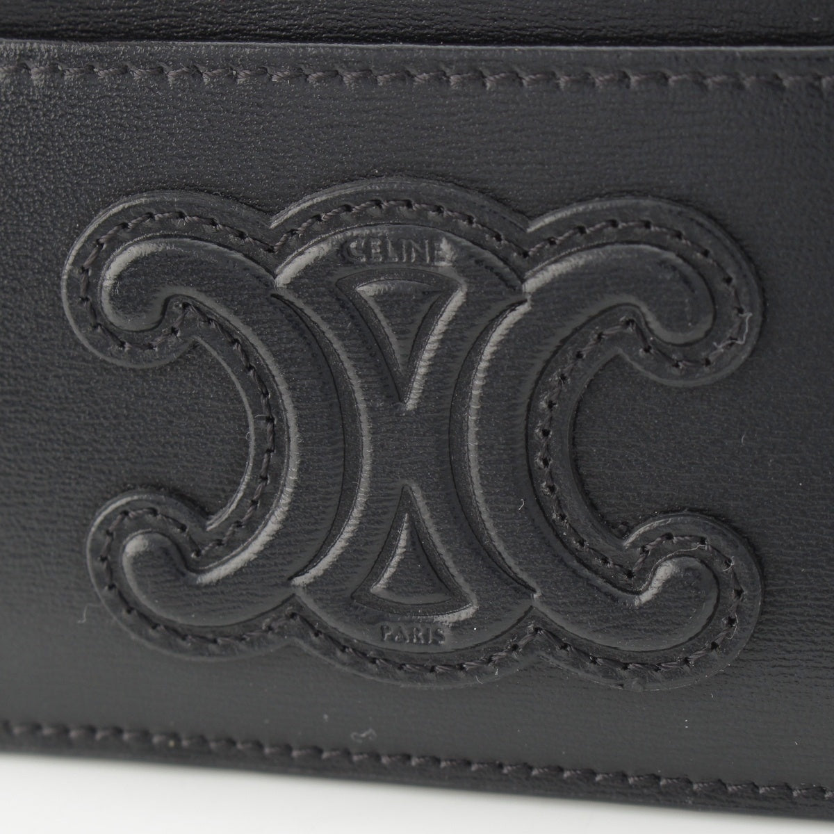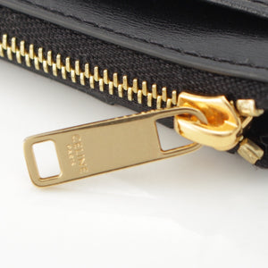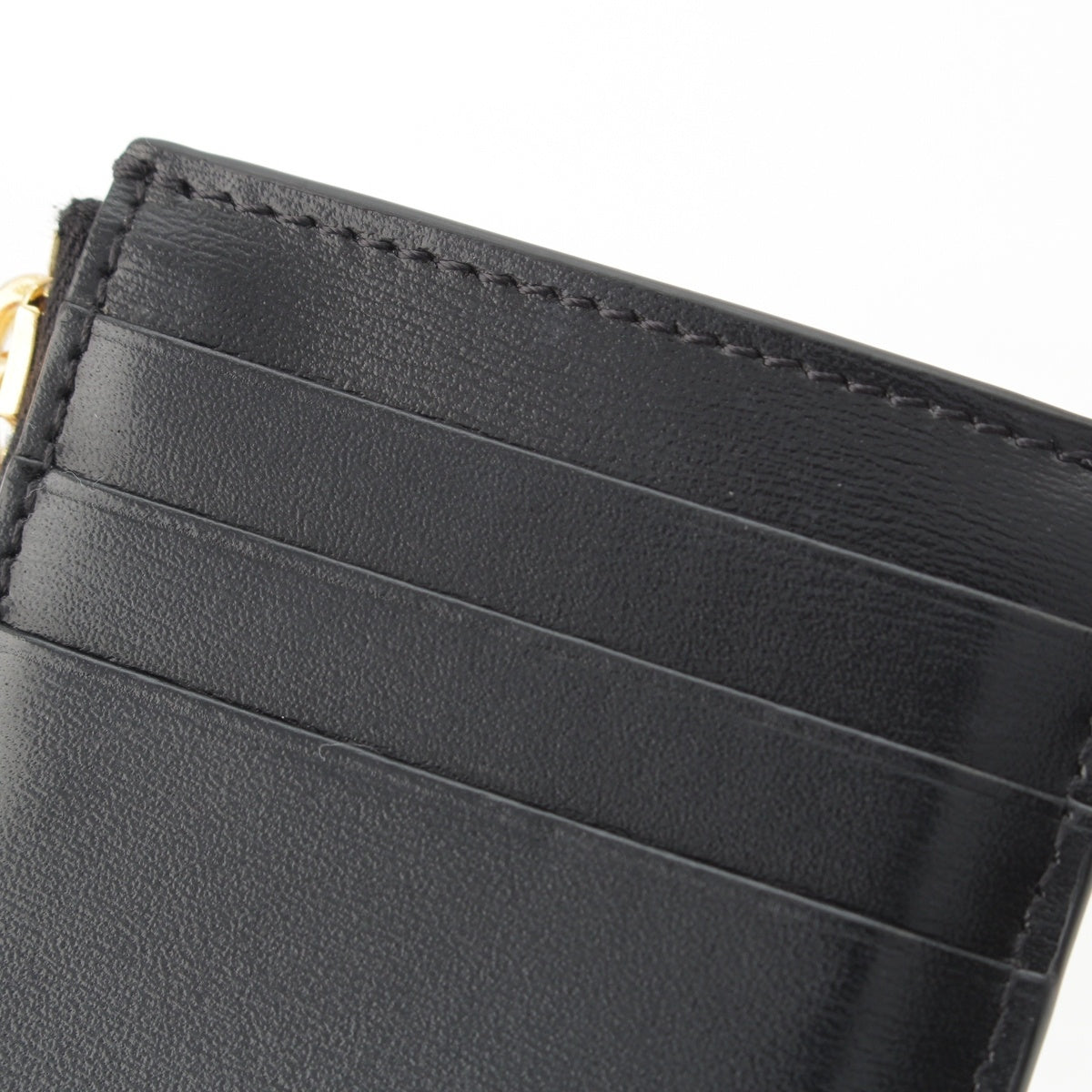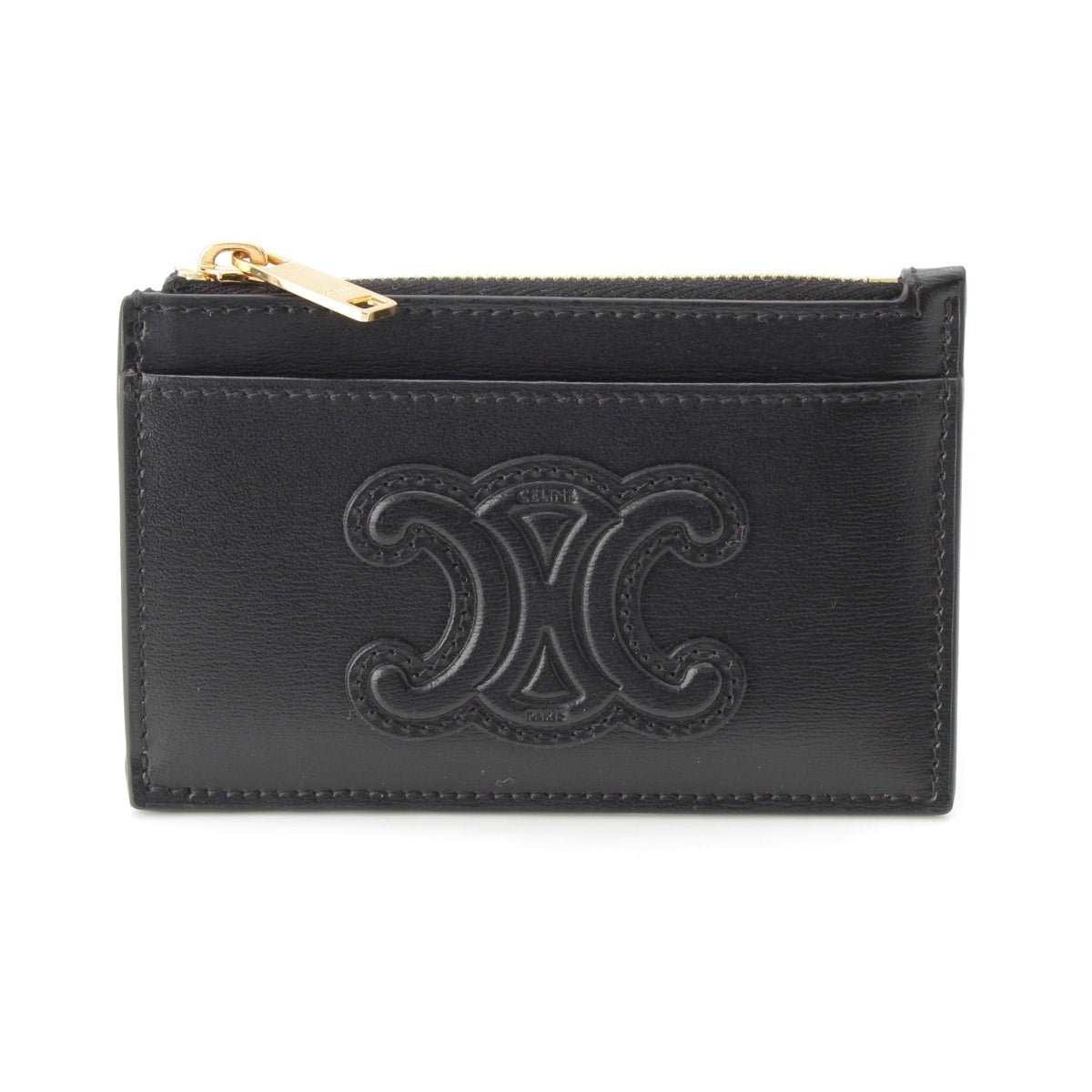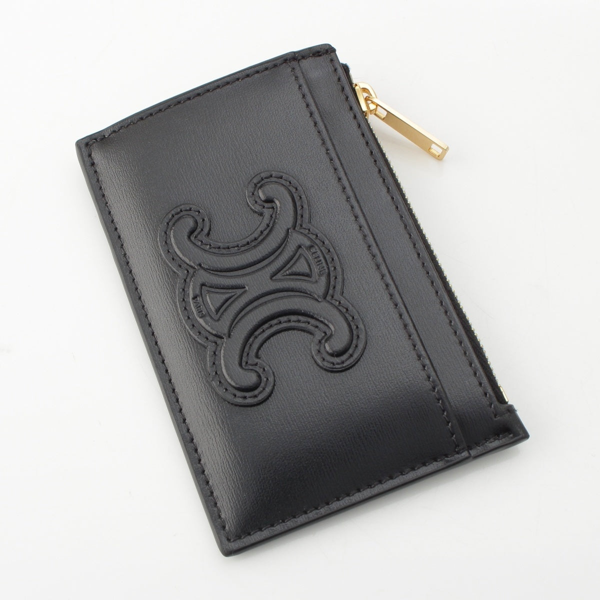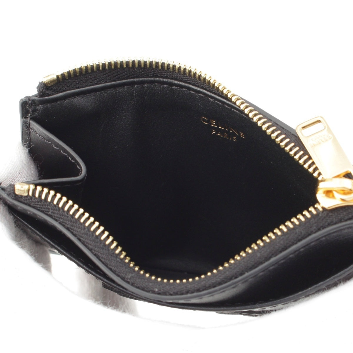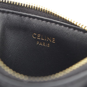 CELINE Cuir Triomphe Smooth lambskin Card holder with zip Coin case Compact wallet Black gold