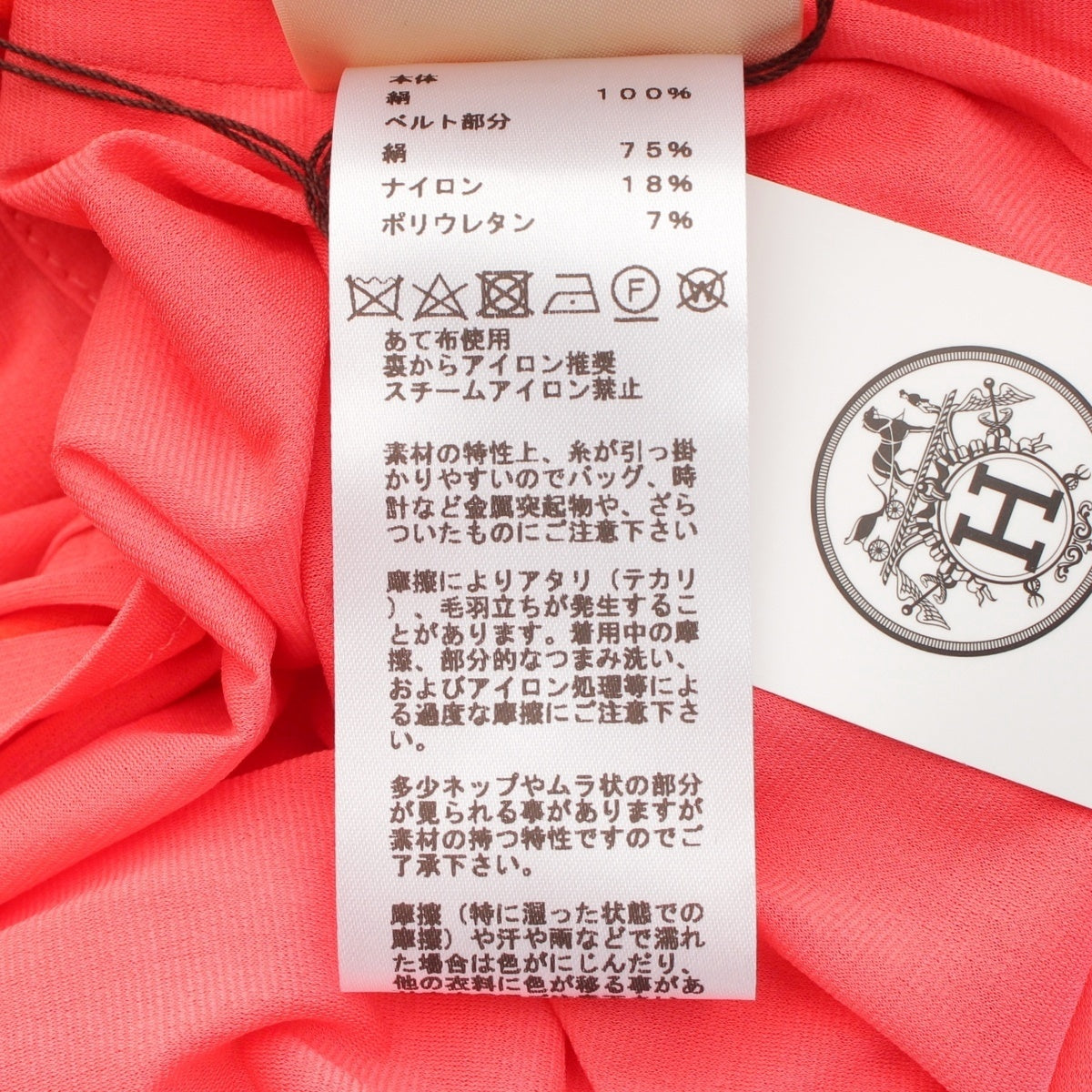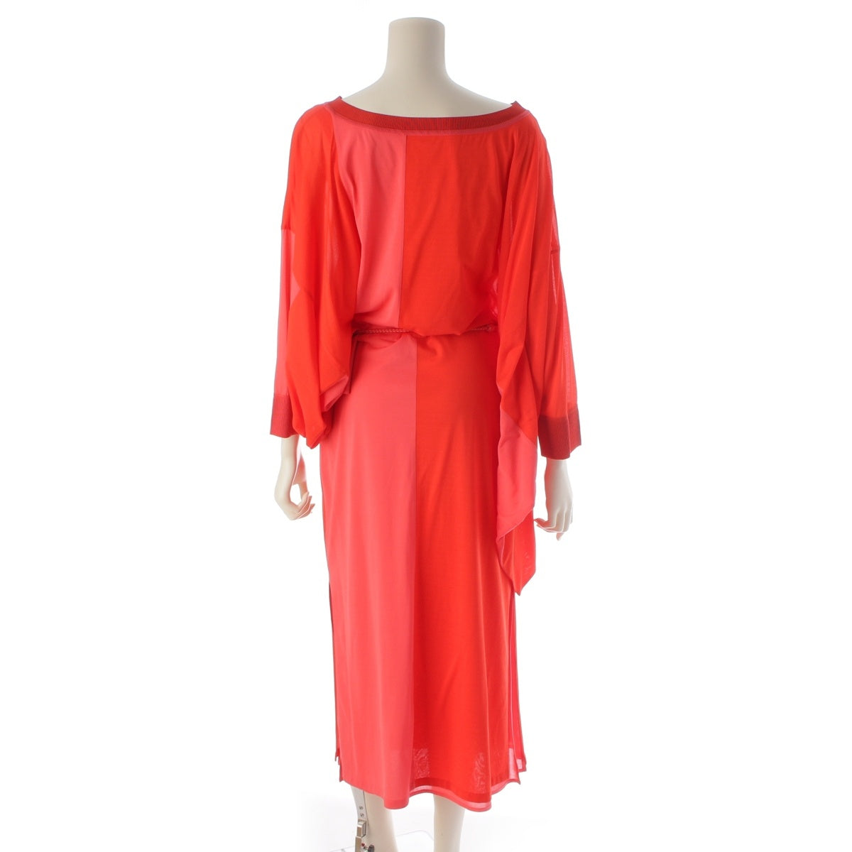HERMES silk Switching belt included one piece Tops Skirt Long Red pink 38