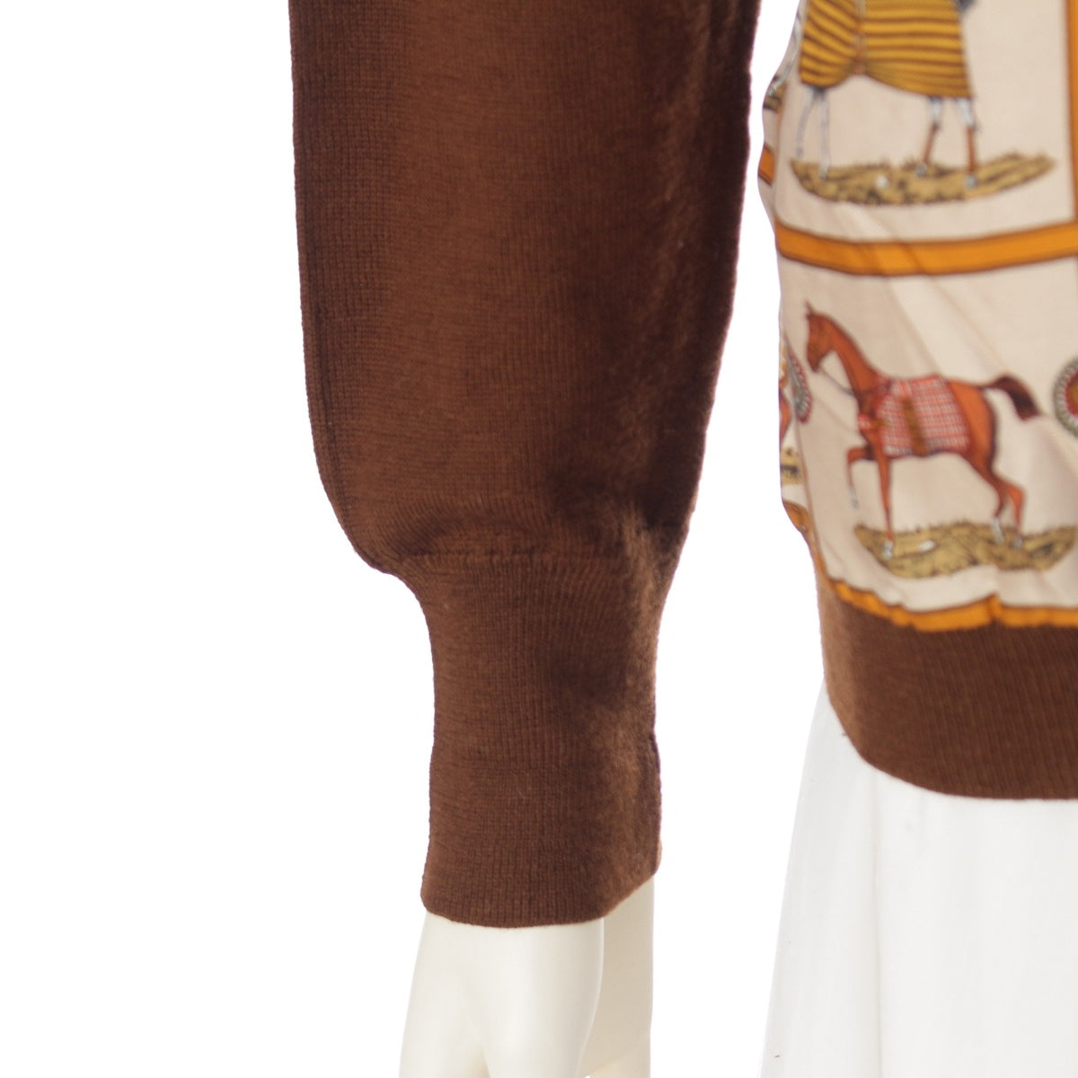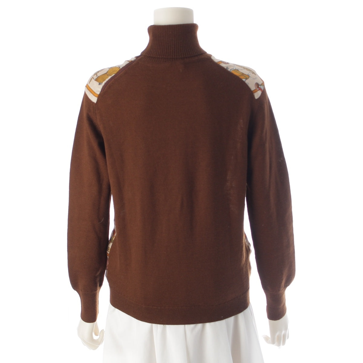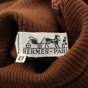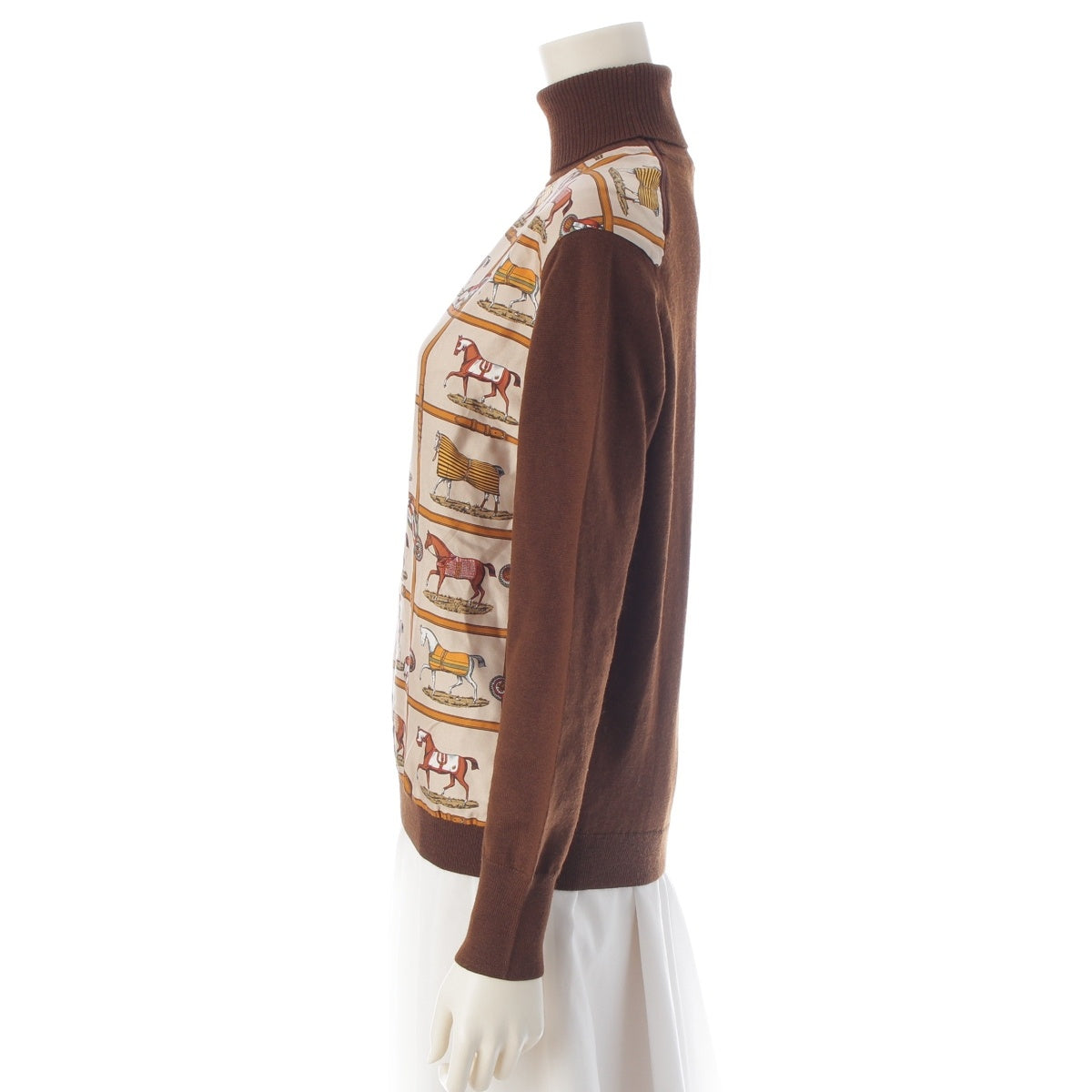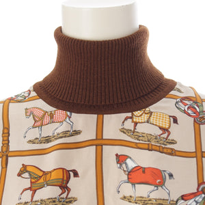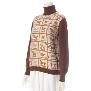 HERMES Silk wool 48 horses in the paddock, printed high neck sweater knit Brown 42