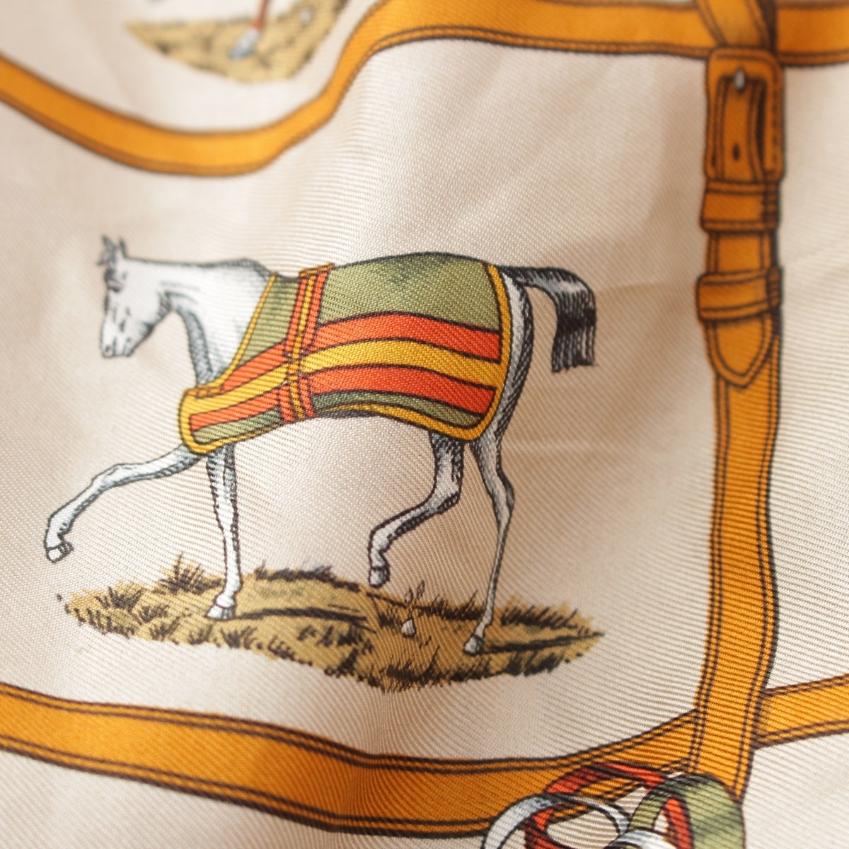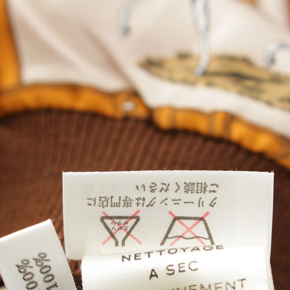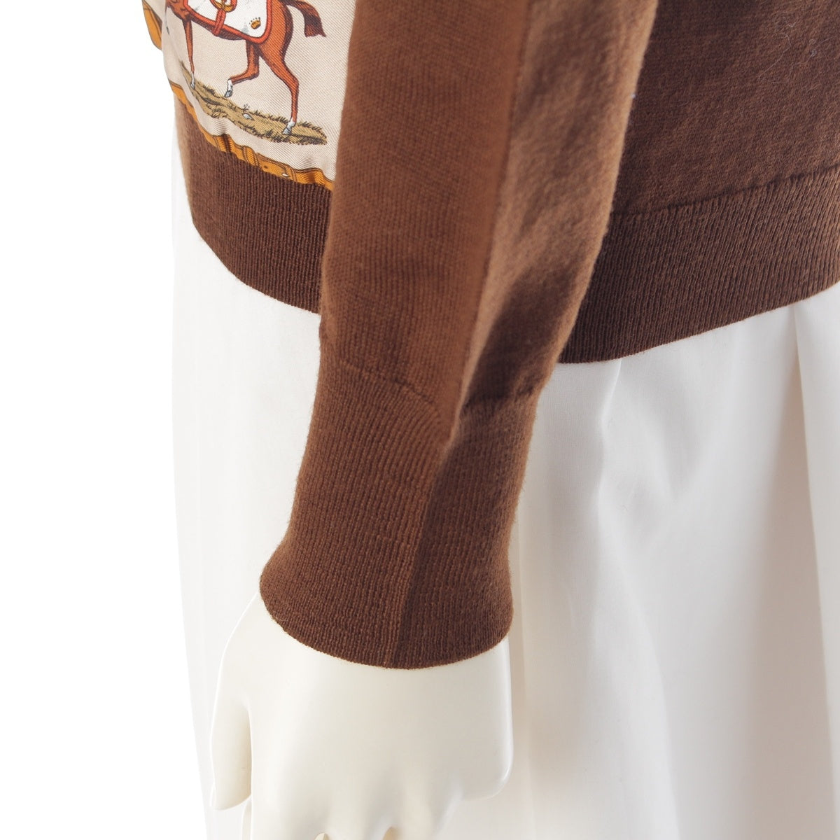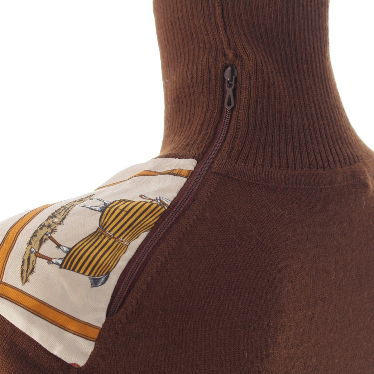 HERMES Silk wool 48 horses in the paddock, printed high neck sweater knit Brown 42