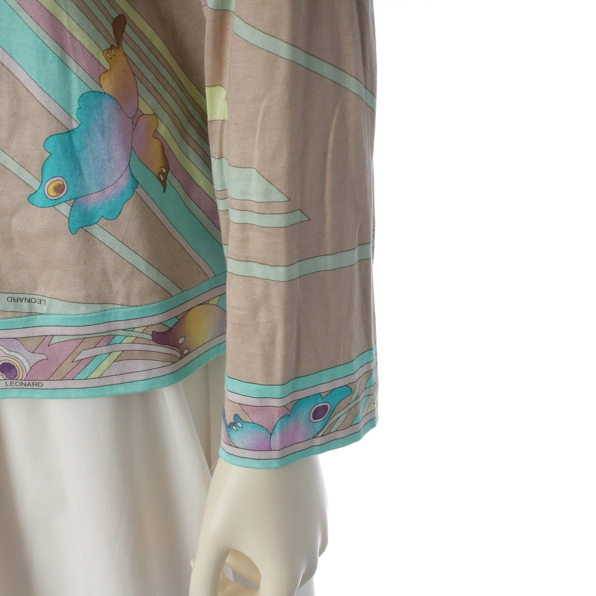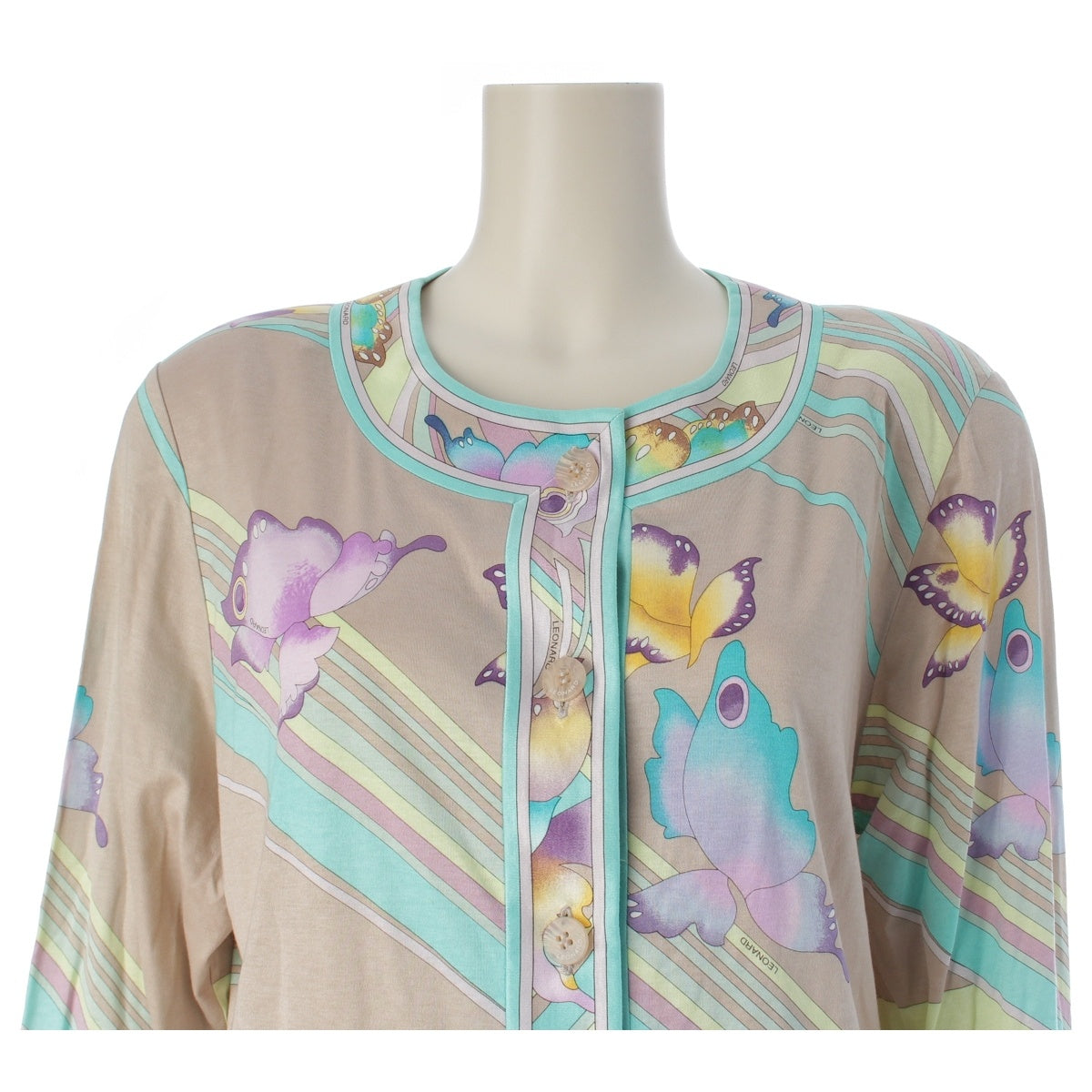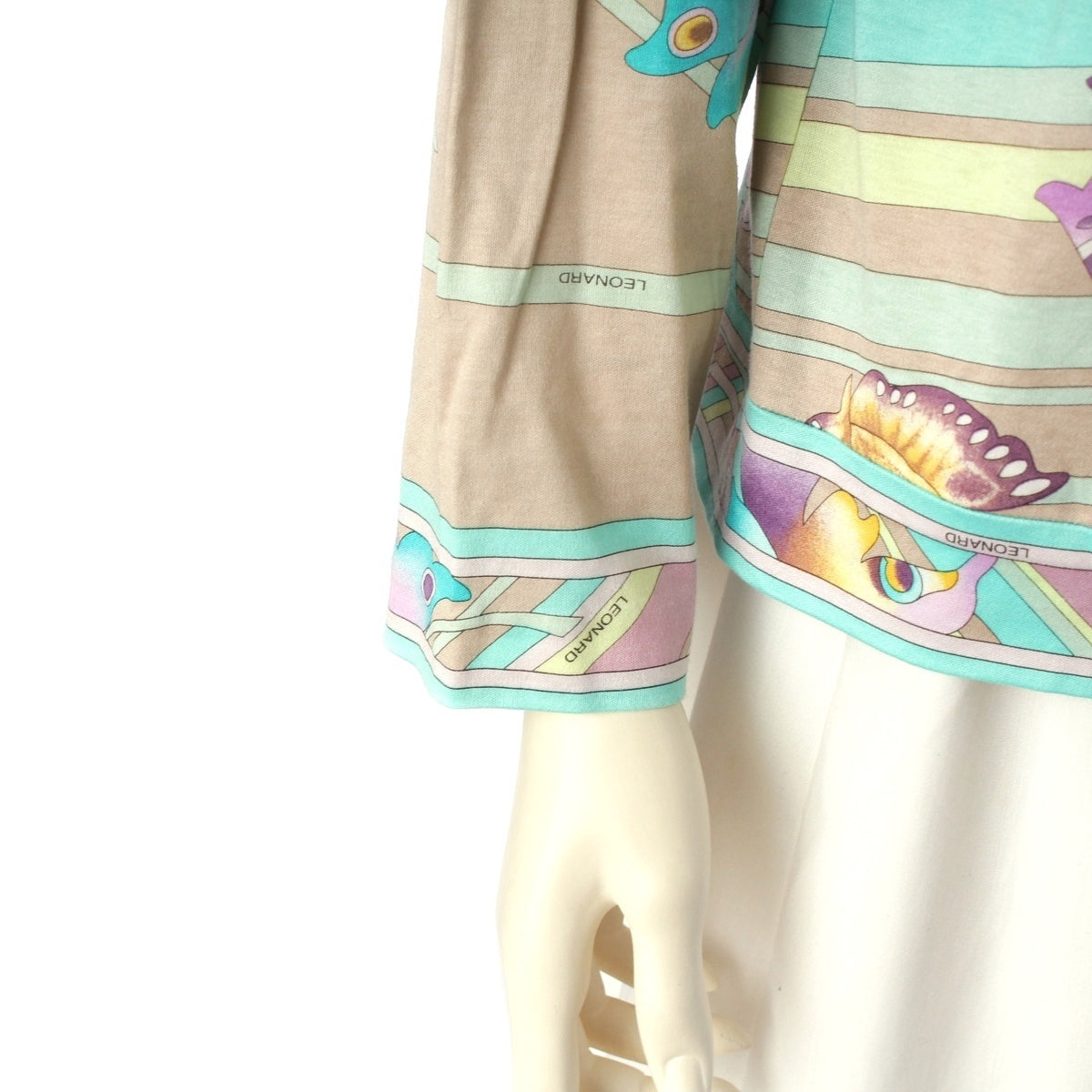LEONARD cotton Shoulder pads, collarless cardigan 0399183 blue L