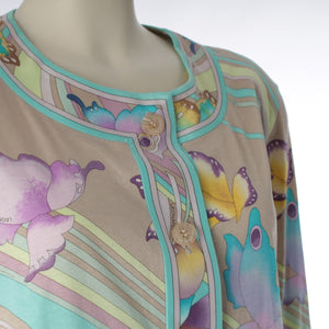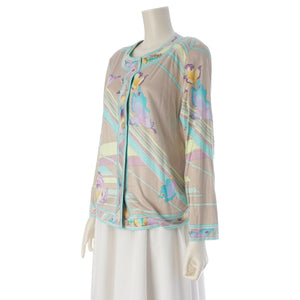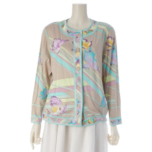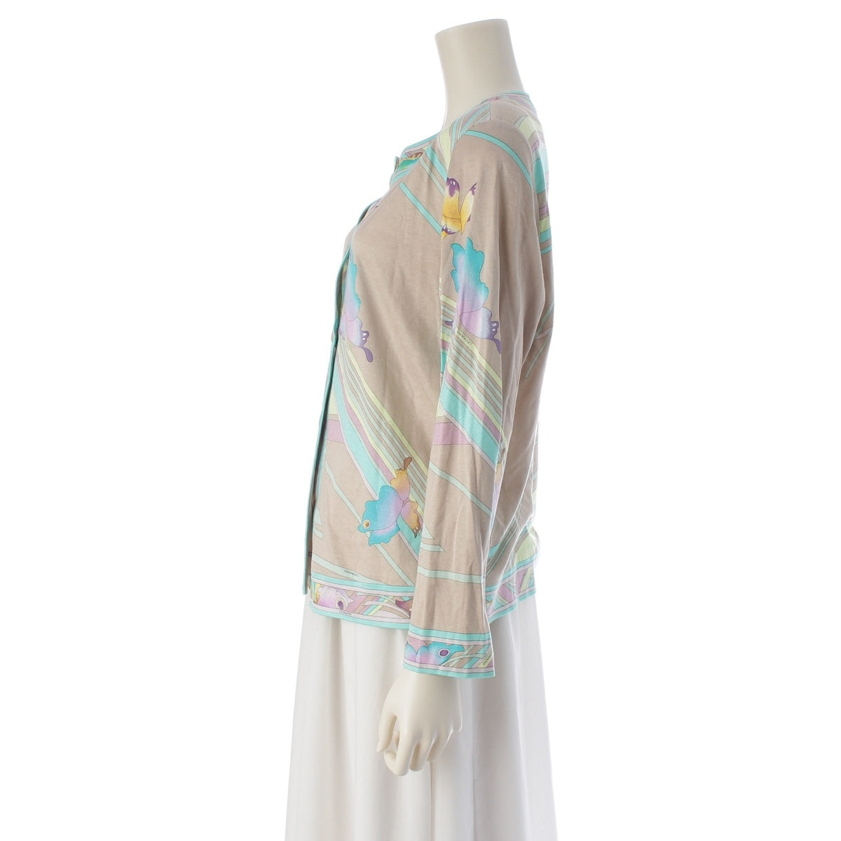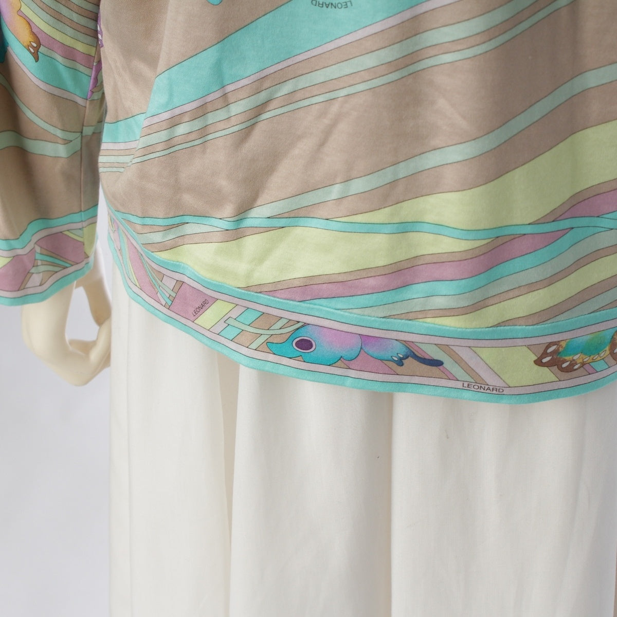 LEONARD cotton Shoulder pads, collarless cardigan 0399183 blue L
