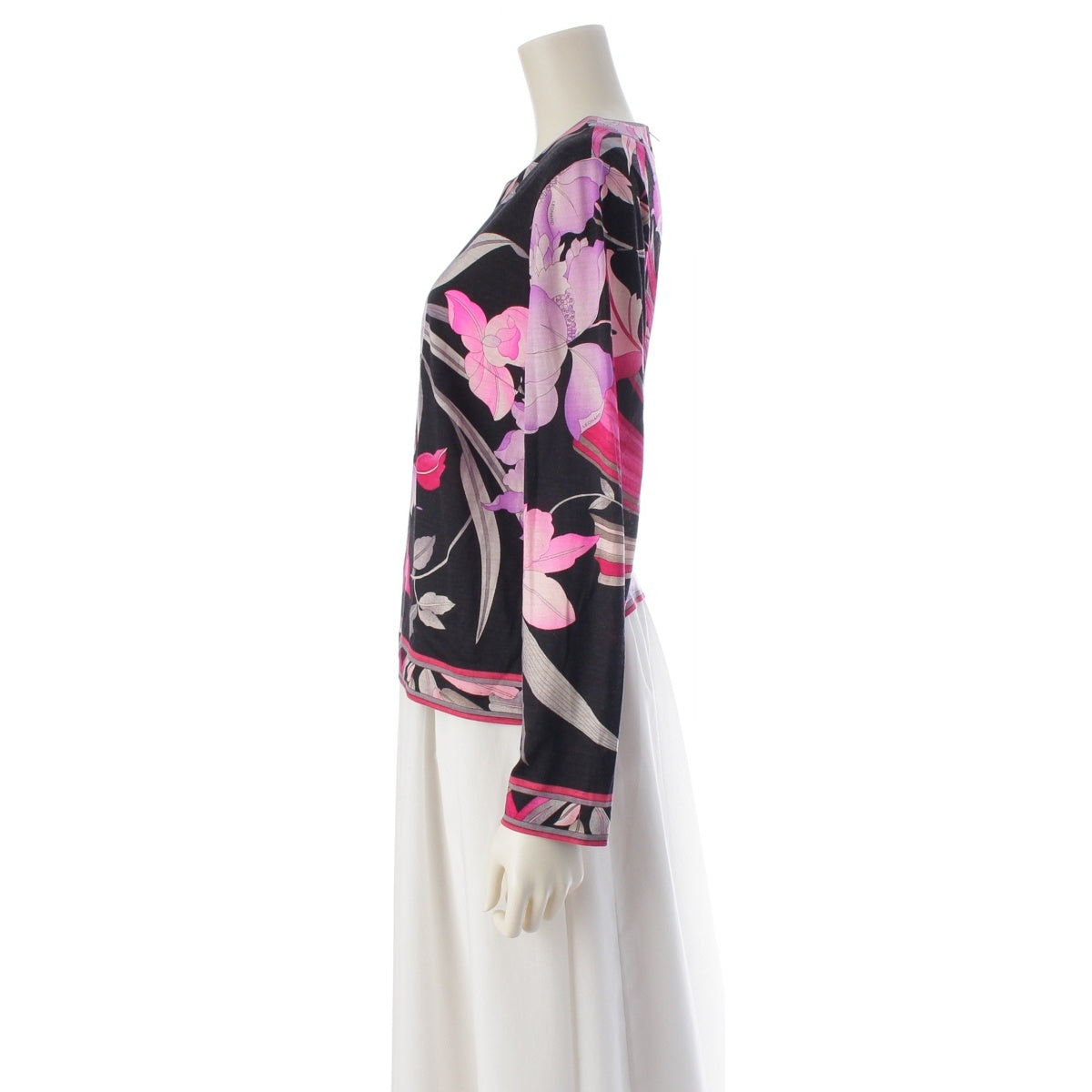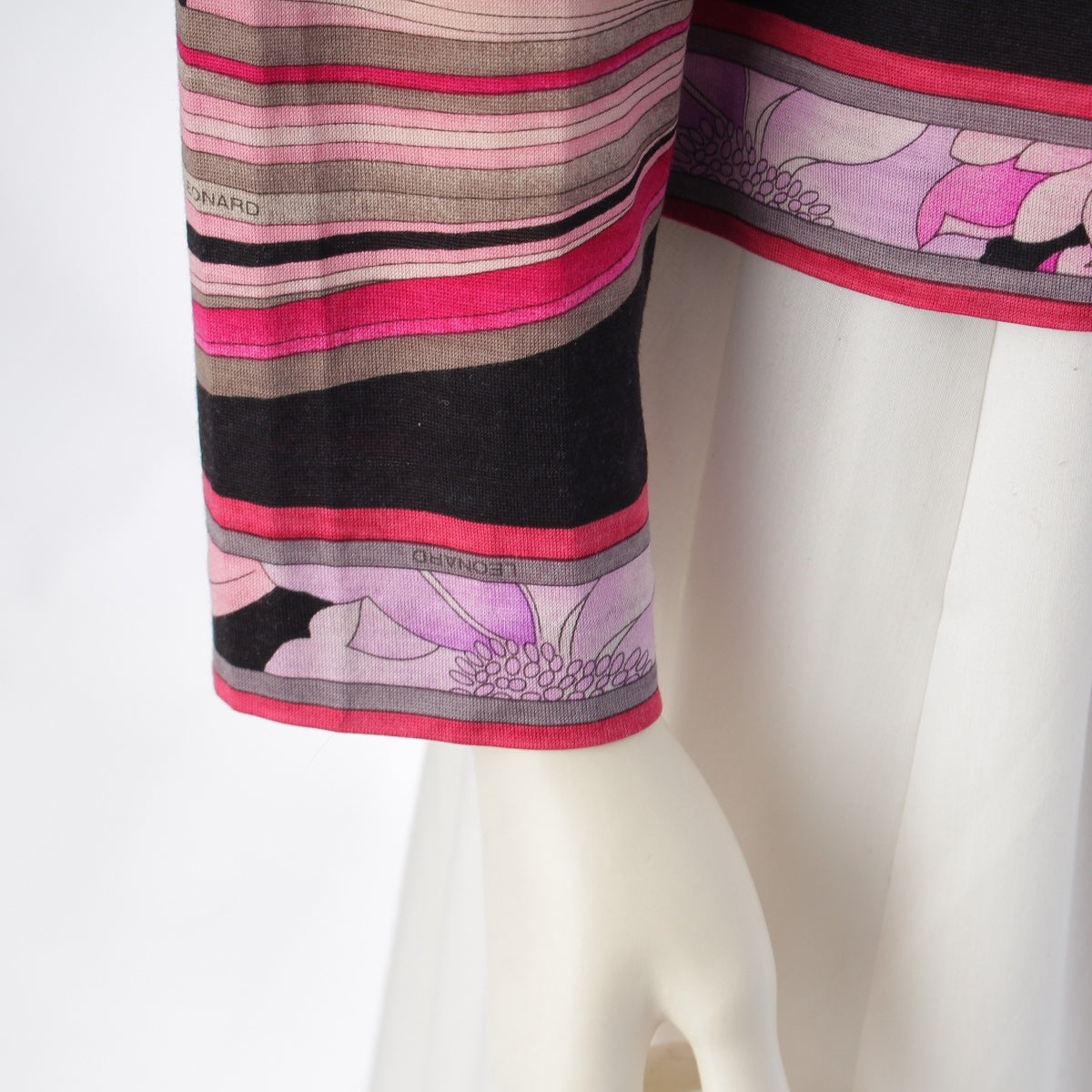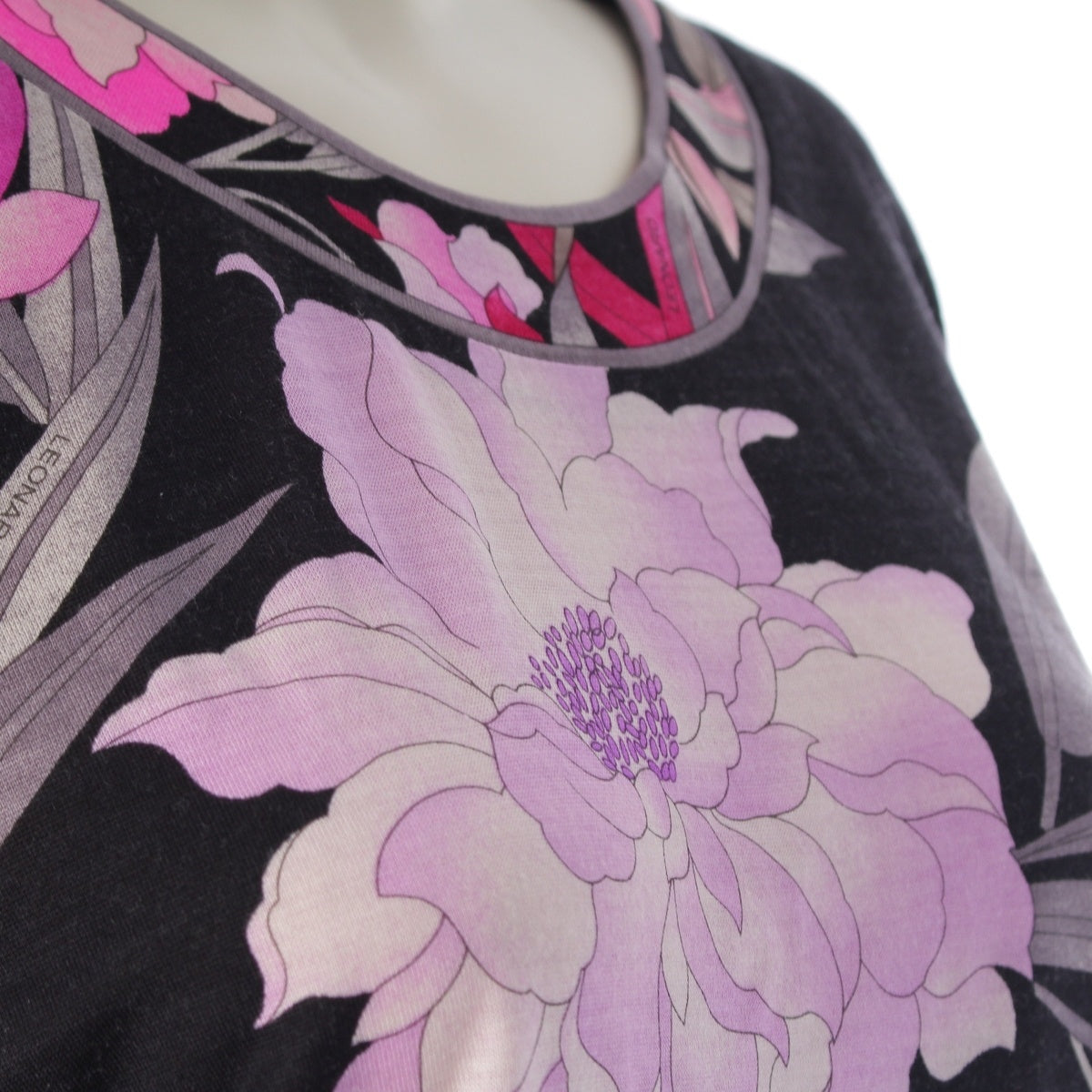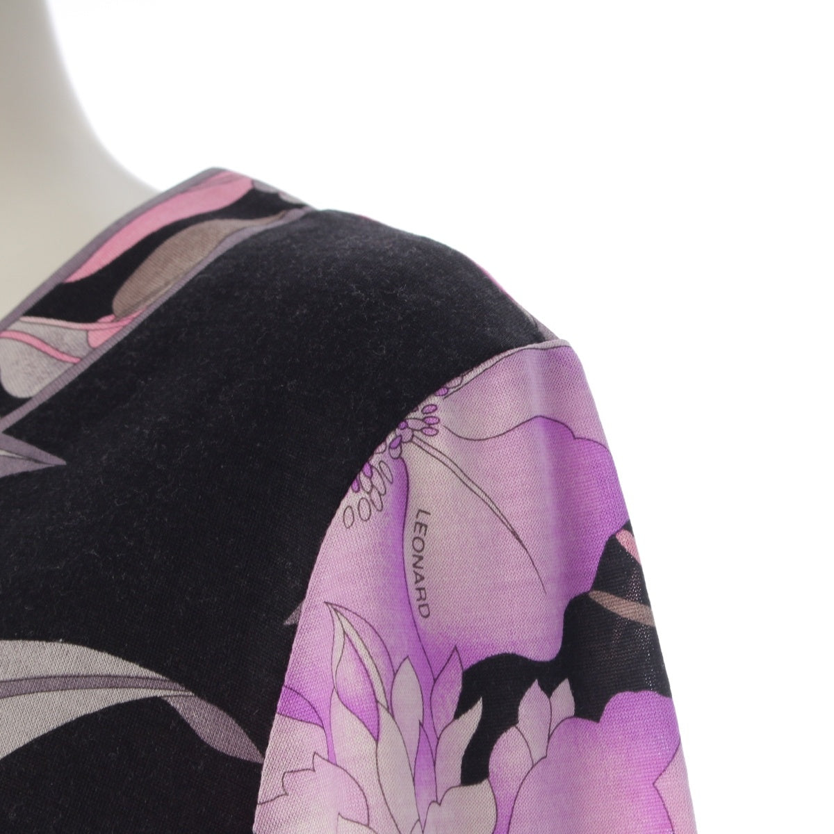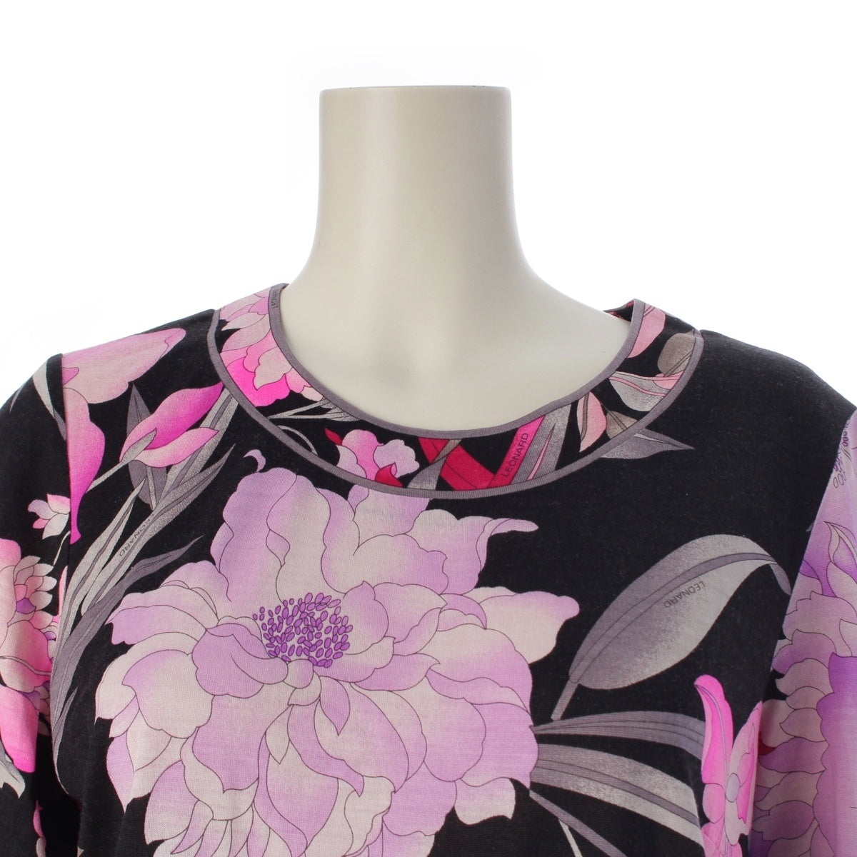 LEONARD Wool silk Crew neck Long sleeve tops 0369109 Black pink LL