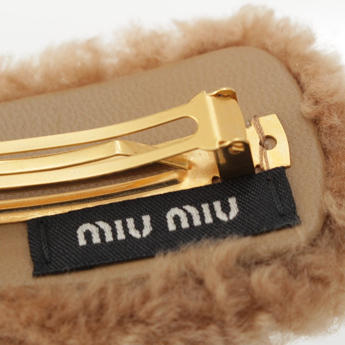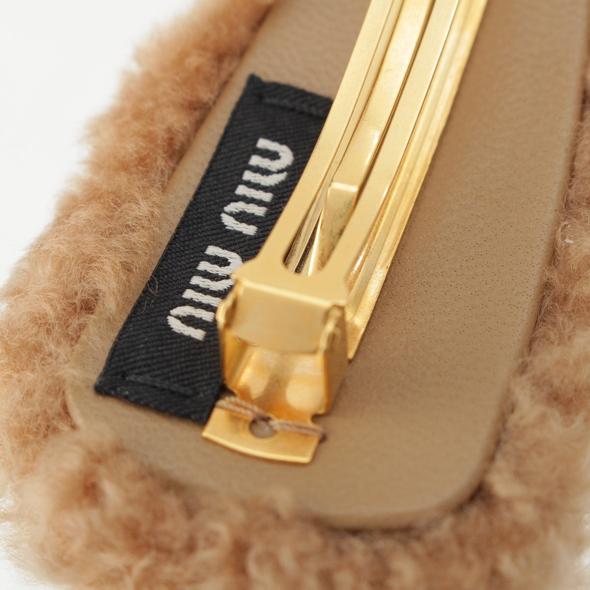 MIUMIU Shearing Hair Clip Boa Hairpin hair accessory 5IF092 Camel