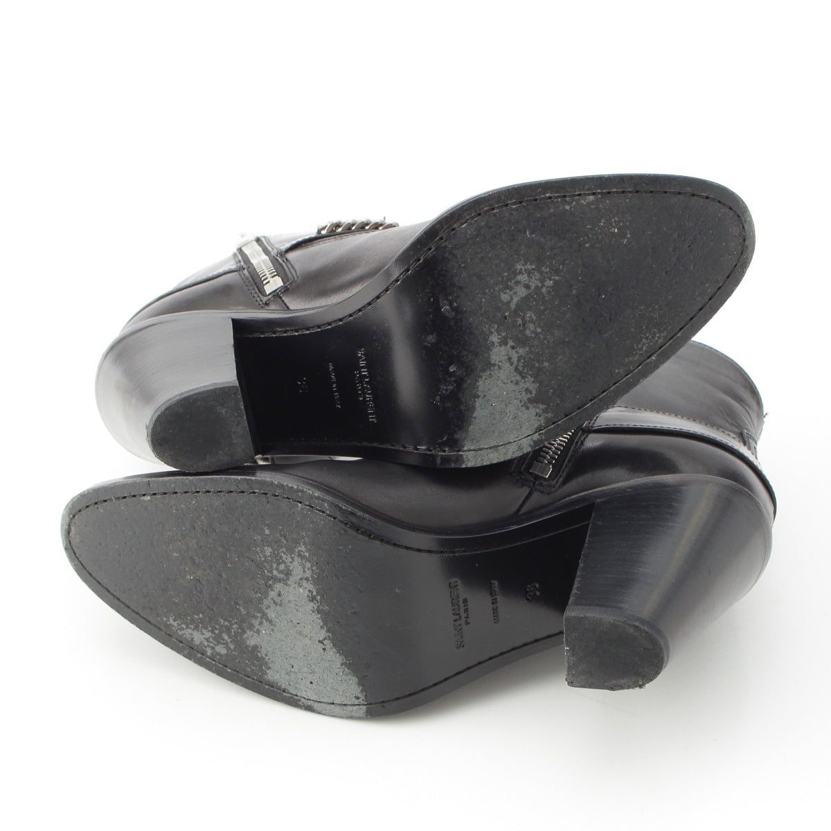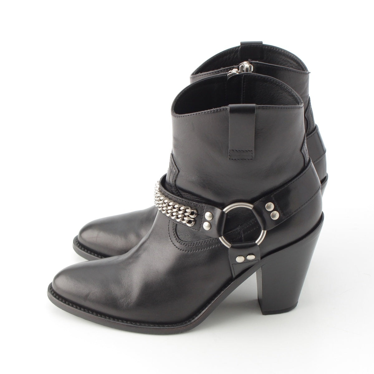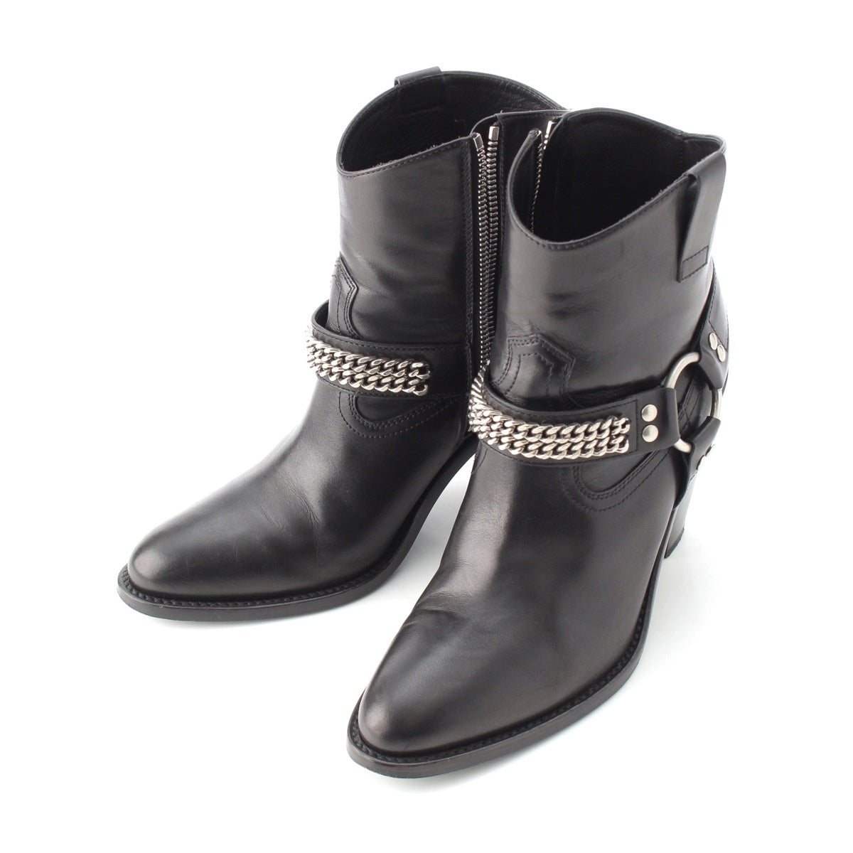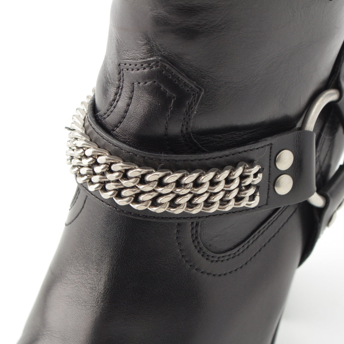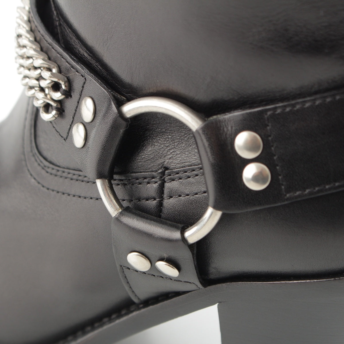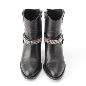 SAINT LAURENT leather Wyatt Ring Chain Harness boots 439284 black 36