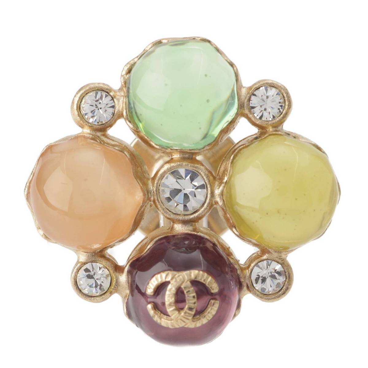 Chanel 08P ココマーク カラーストーン ミニ ブローチ ゴールド×マルチカラー (207067