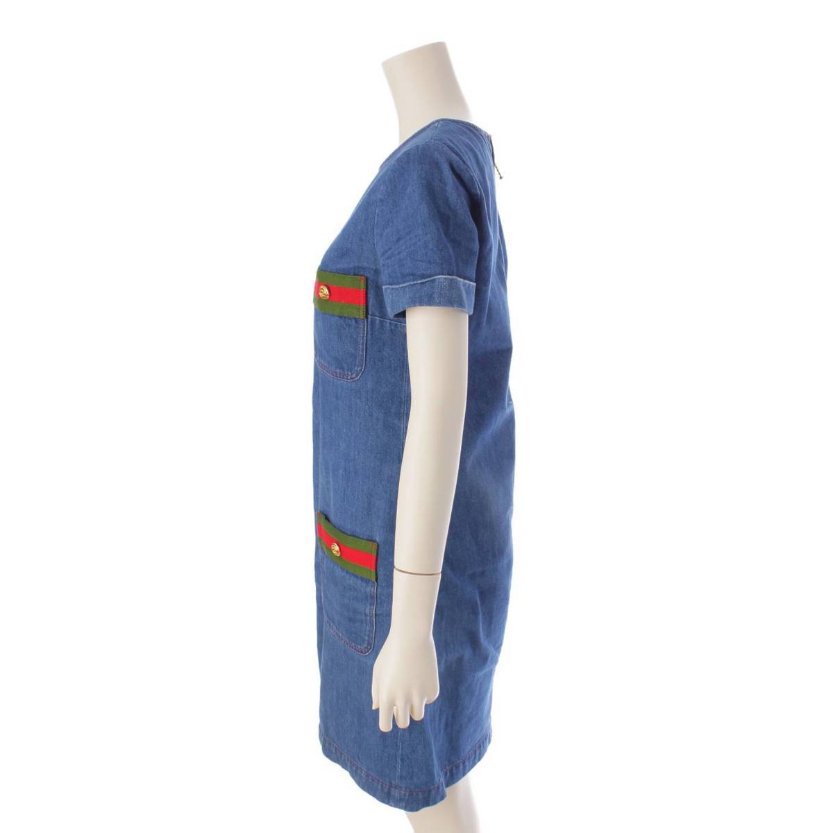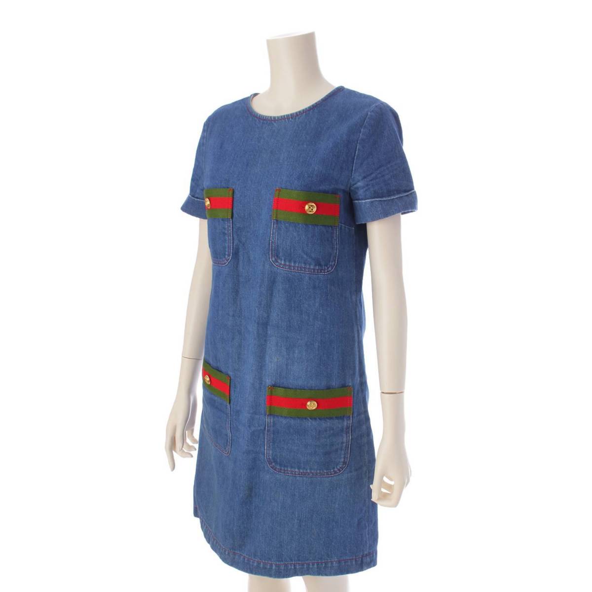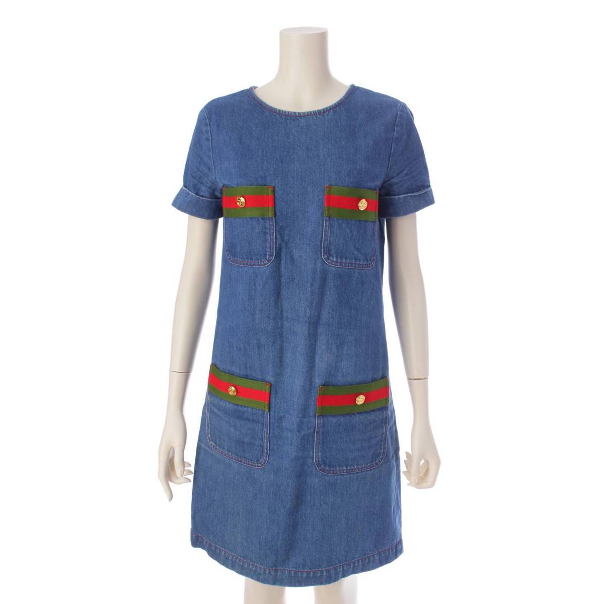 [Gucci] Gucci Sherry Line Short Sleeve Denim Dress 678827 Indigo 36 [Used] [Authenticated and Guaranteed Authentic] 195959