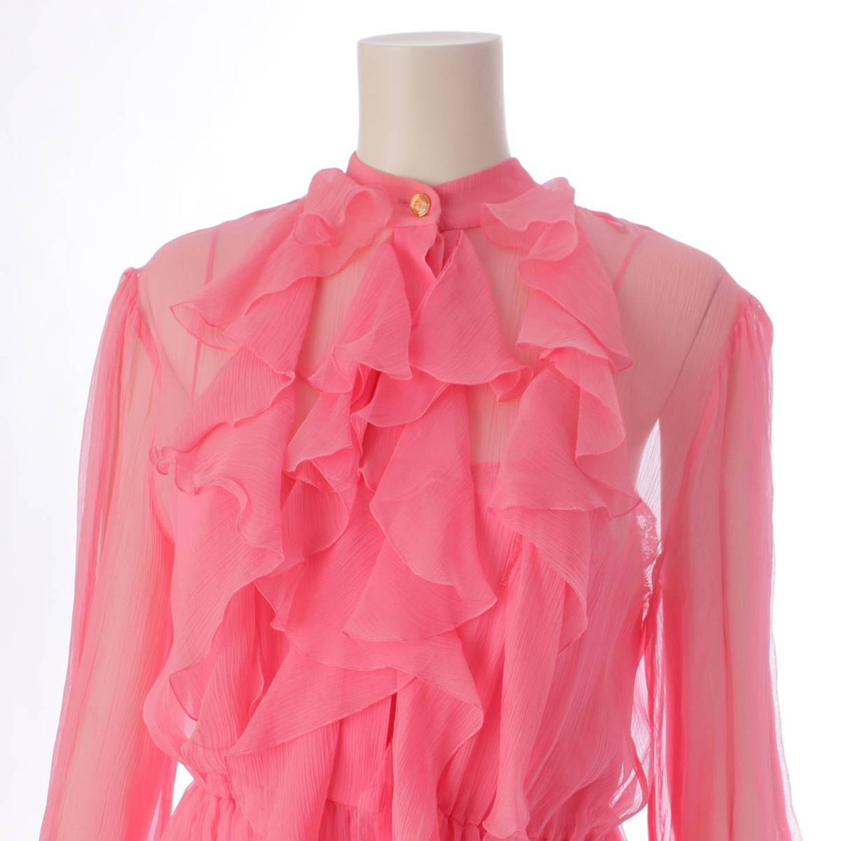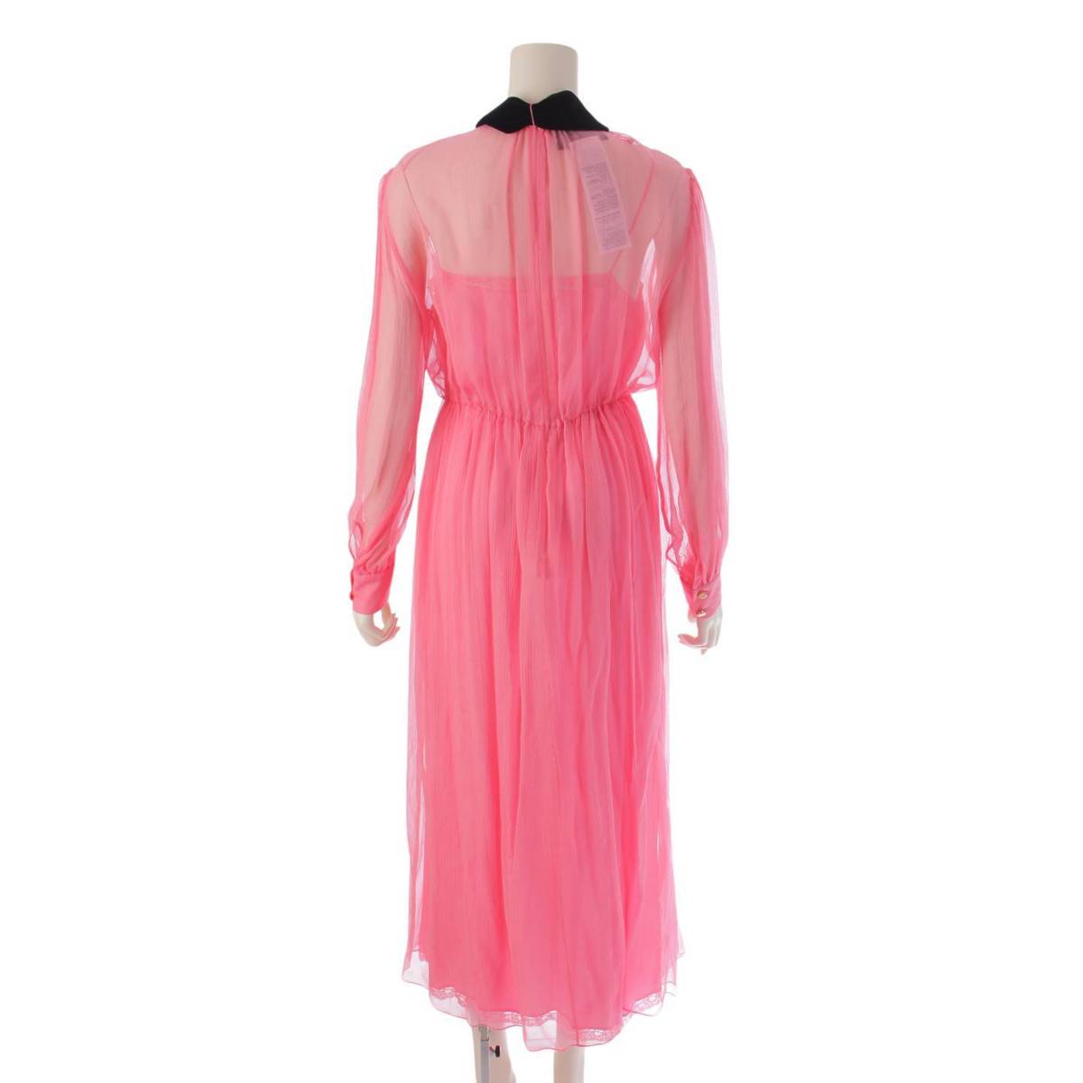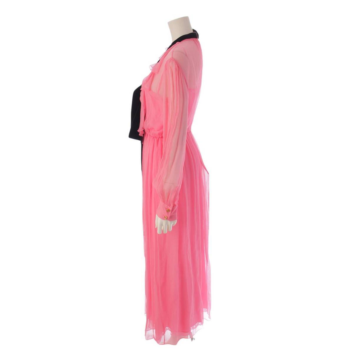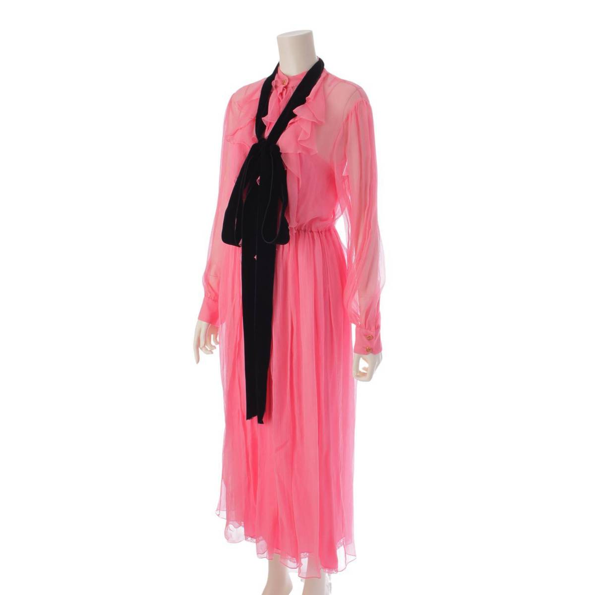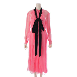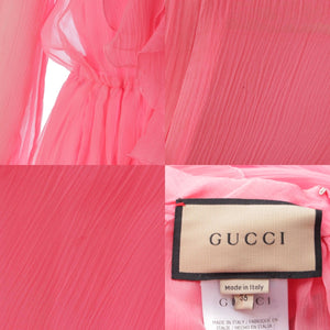 [Gucci] Gucci GG Button Velvet Bowtie Ruffled Silk One Piece Dress 697443 Pink 36 [Used] [Authenticated and Guaranteed Authentic] 199625