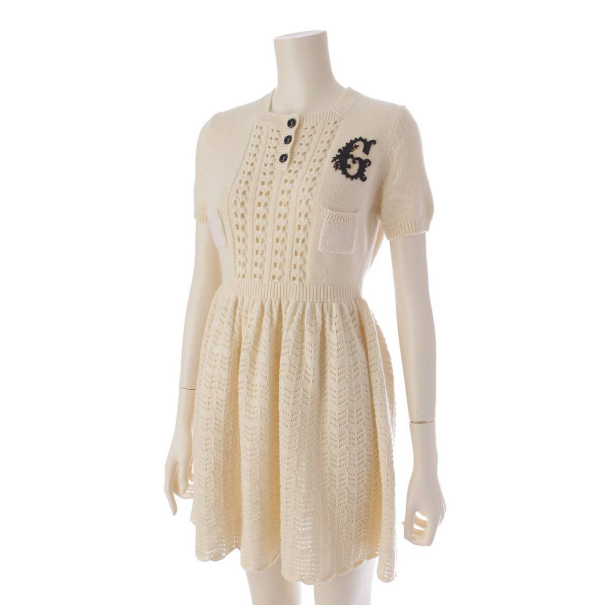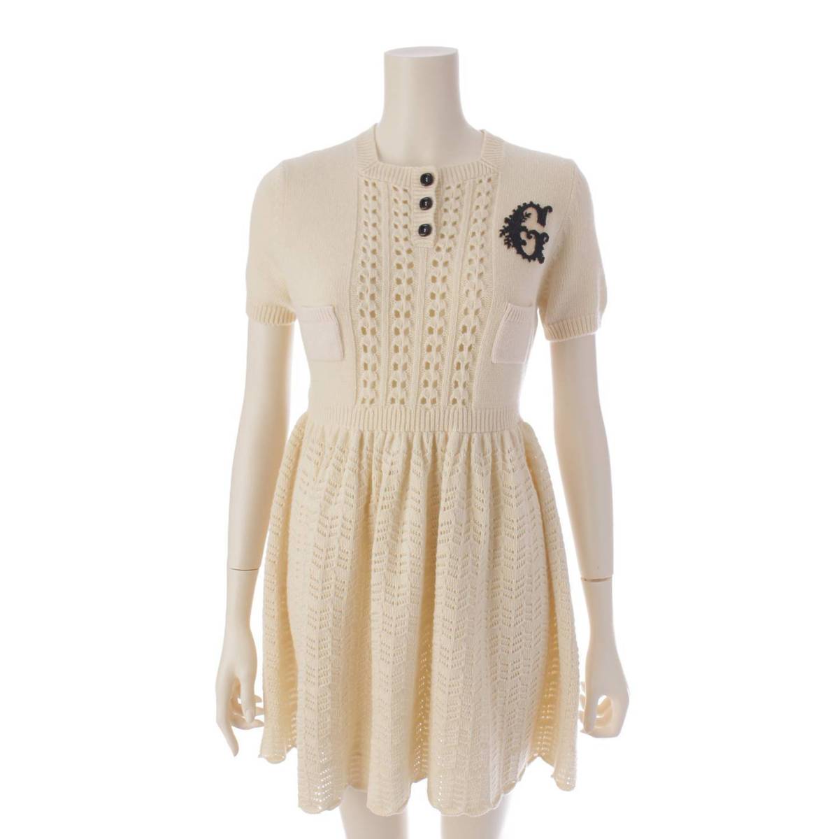 [Gucci] Gucci G logo embroidered short sleeve wool knit dress 642084 Ivory S [Used] [Authenticated and genuine product guaranteed] 199713