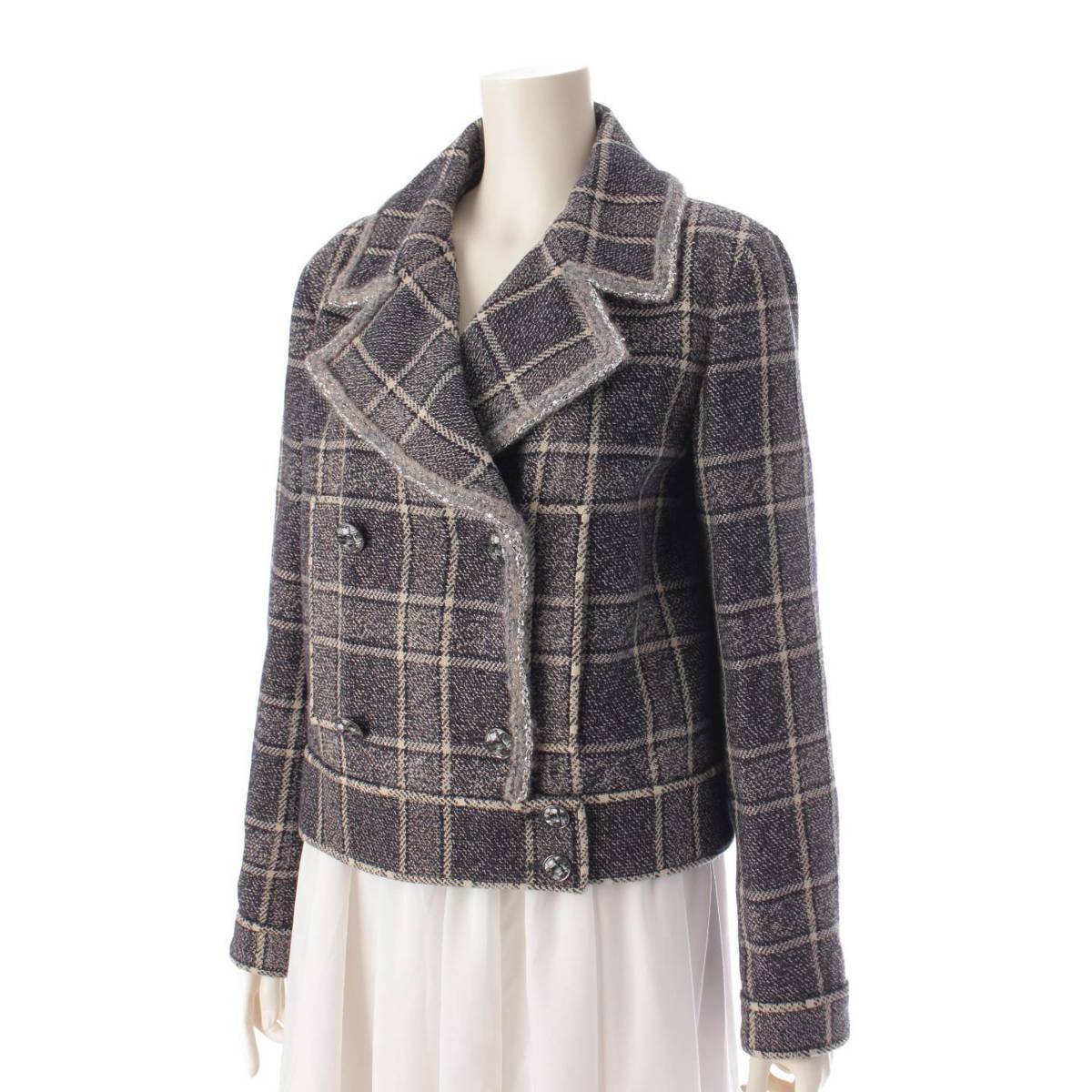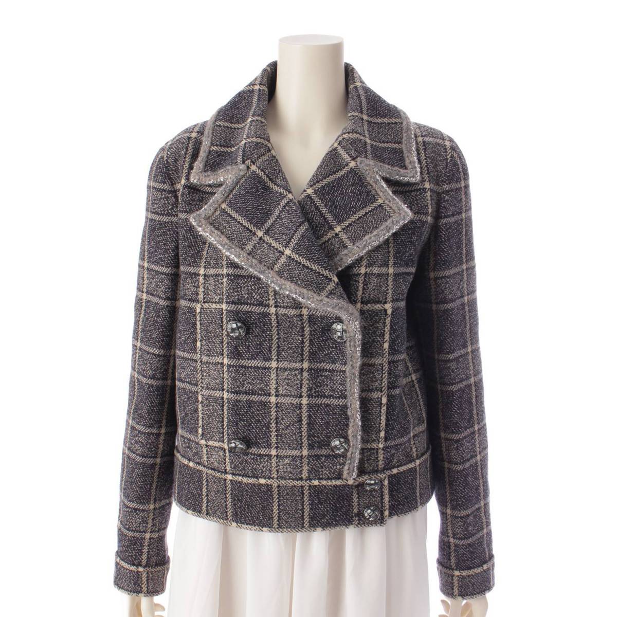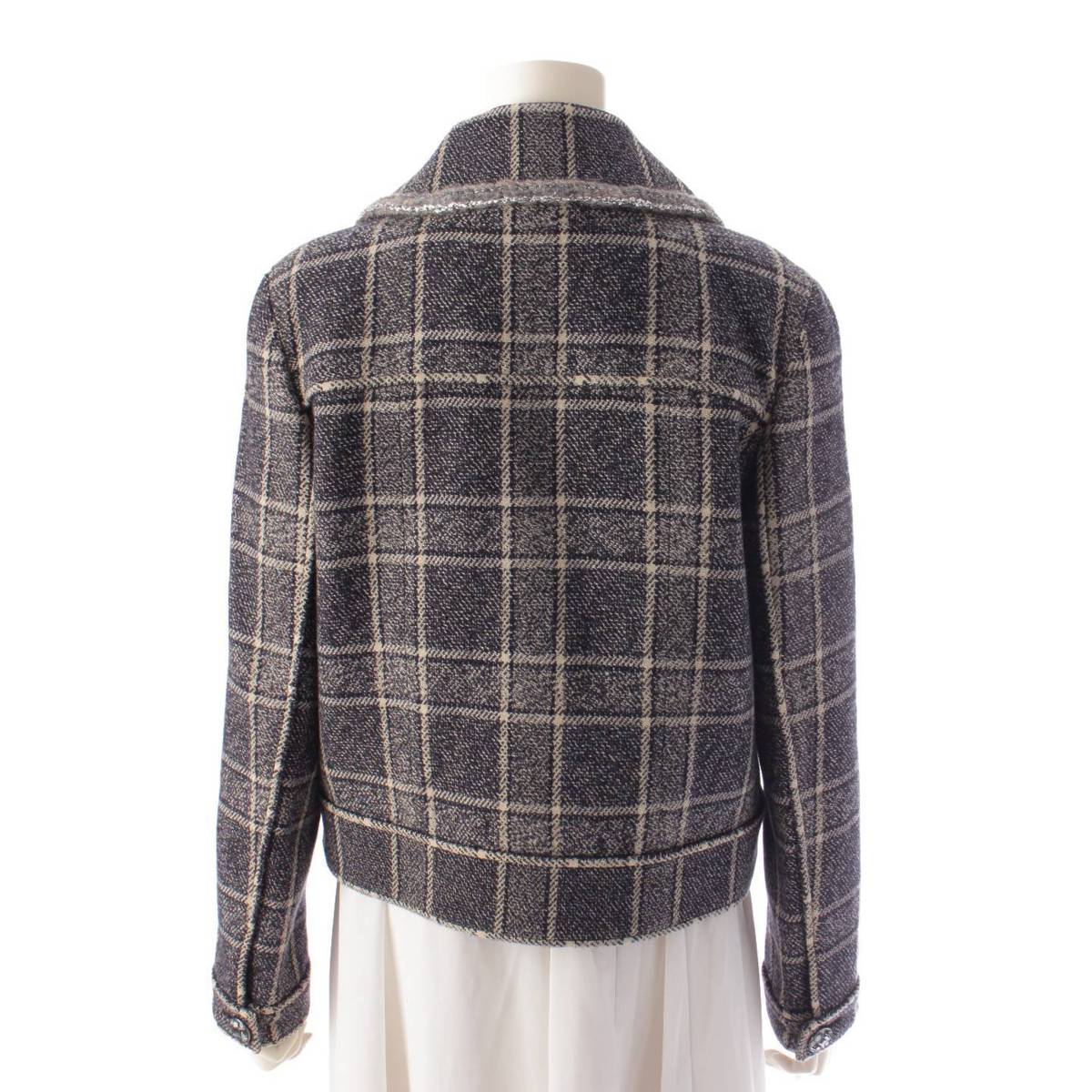 CHANEL 22 years wool Check Double Jacket P73124 Black x white 38