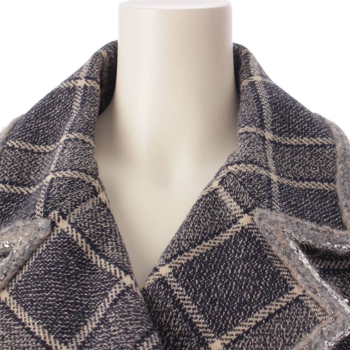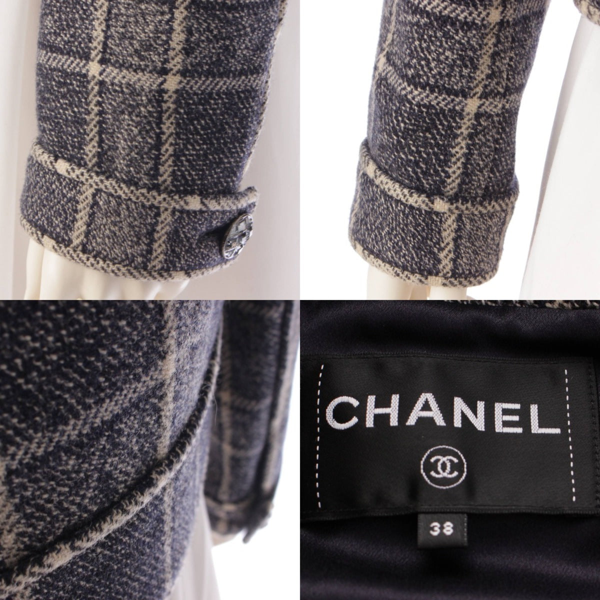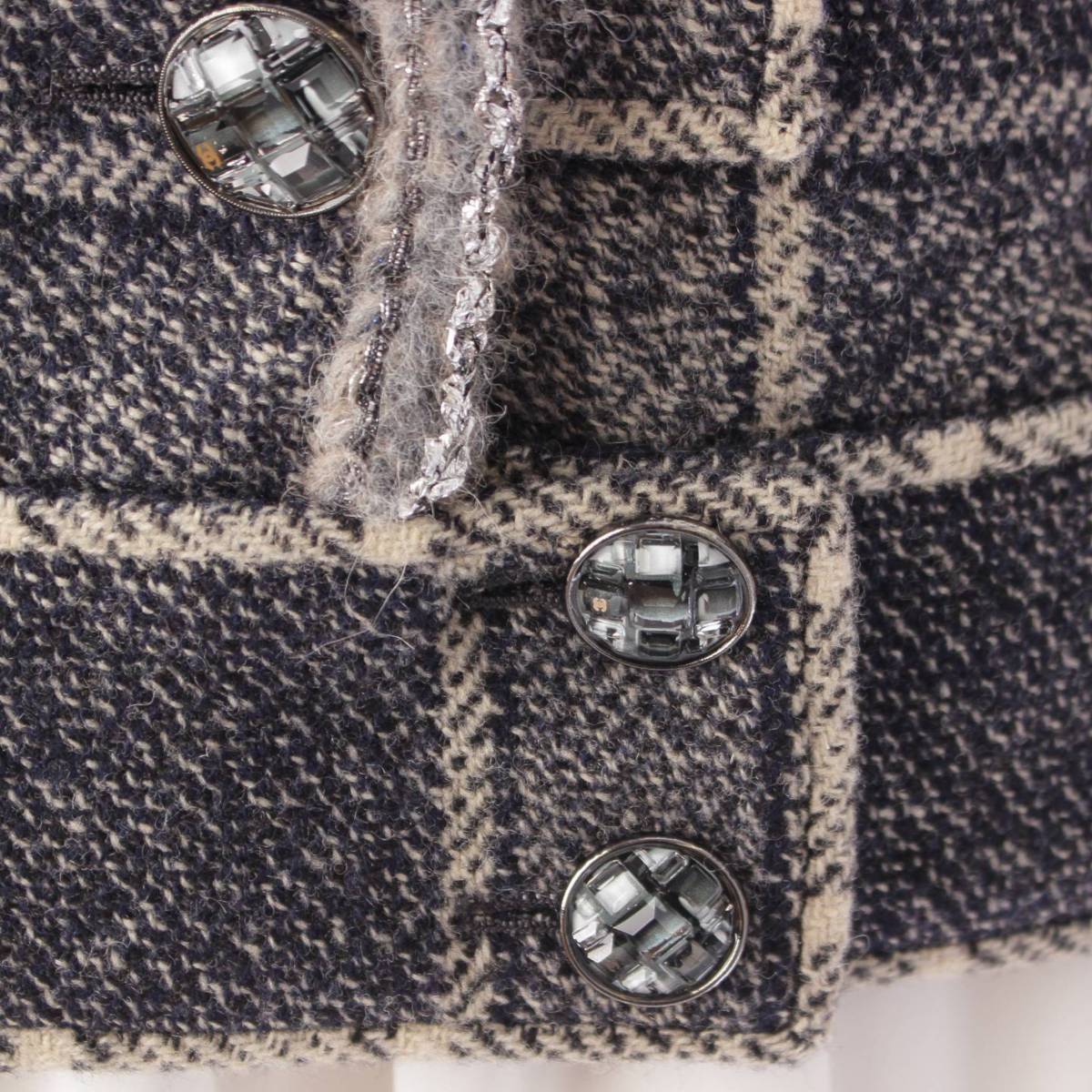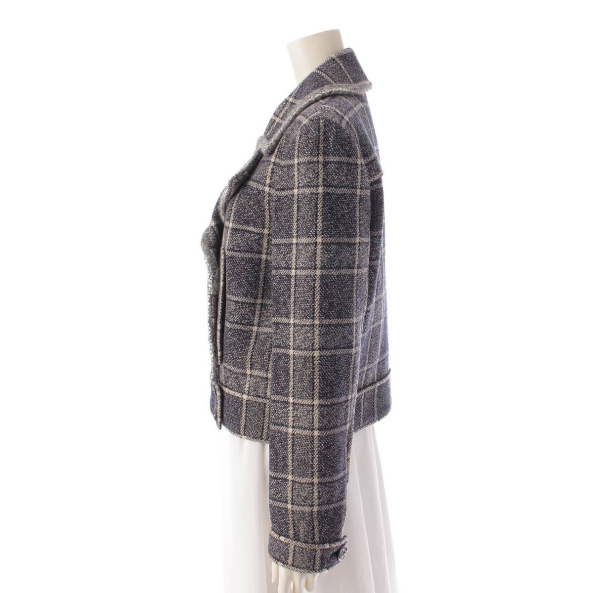 CHANEL 22 years wool Check Double Jacket P73124 Black x white 38