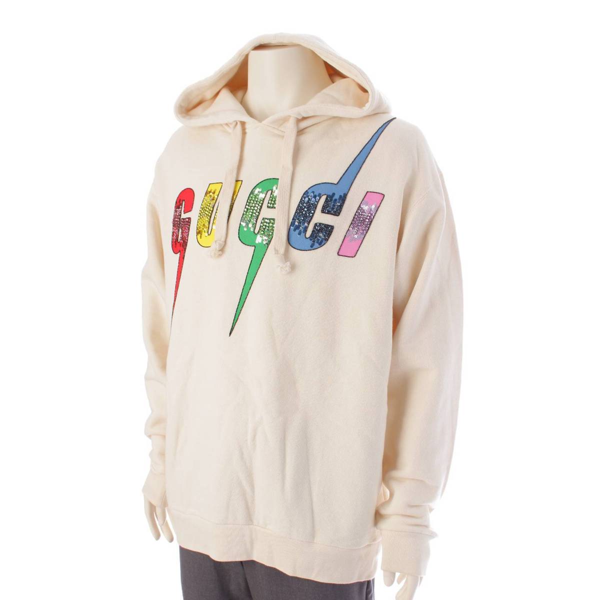 [Gucci] Gucci Men's Blade Logo Sequin Hoodie Parka 469251 Ivory L [Used] [Authenticated and Guaranteed Authentic] 202919