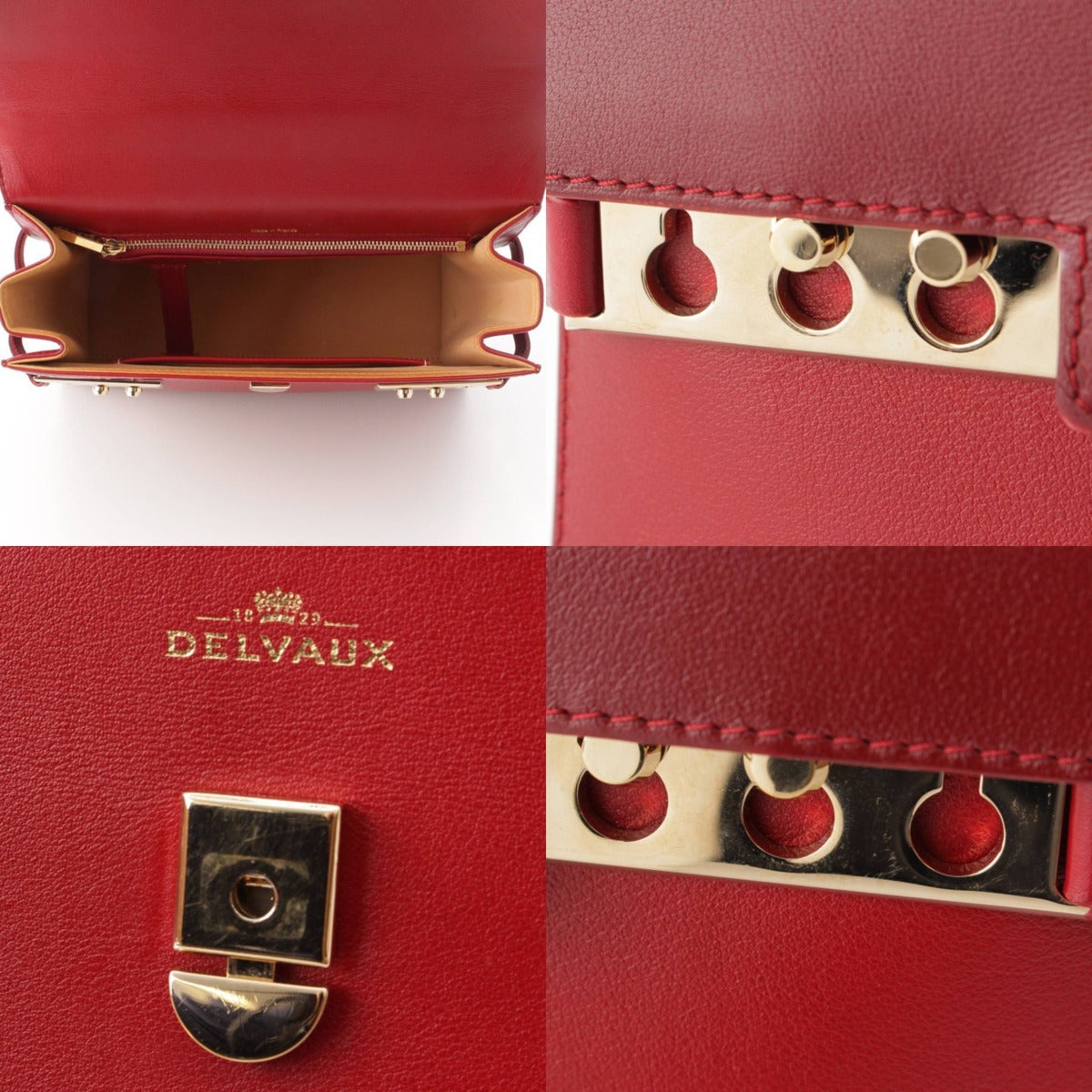 .detail {width:400px; font-size:12px;border-top:#000 2px solid; line-height:1.5em;border-bottom:#666 1px solid; margin-bottom:5px;}.detail .title{ padding:10px;border-bottom:#666 1px solid; background-color:#e3e3e3; margin:0;}.detail .text{ padding: 5px 10px;} Product Details Color: Red Material: Supple calf Closure: Metal clasp Accessories: Storage bag Mirror, Shoulder strap Guarantee card Pocket (Inner): Interior zip pocket x 1 Open pocket x 1 Damage: Stain scratches on metal clasp, scuffs on corners at bottom of front, color transfer on inside surface New reference price: yen *As this is a used item, there may be damage not listed on the main unit or accessories. Please note. Product condition AB: Slightly used, no noticeable scratches or damage, but inferior to A rank. Size: Width: 10.6" Height: 8.3" Depth: 3.1" Handle: 3.5" *Please allow for some error.