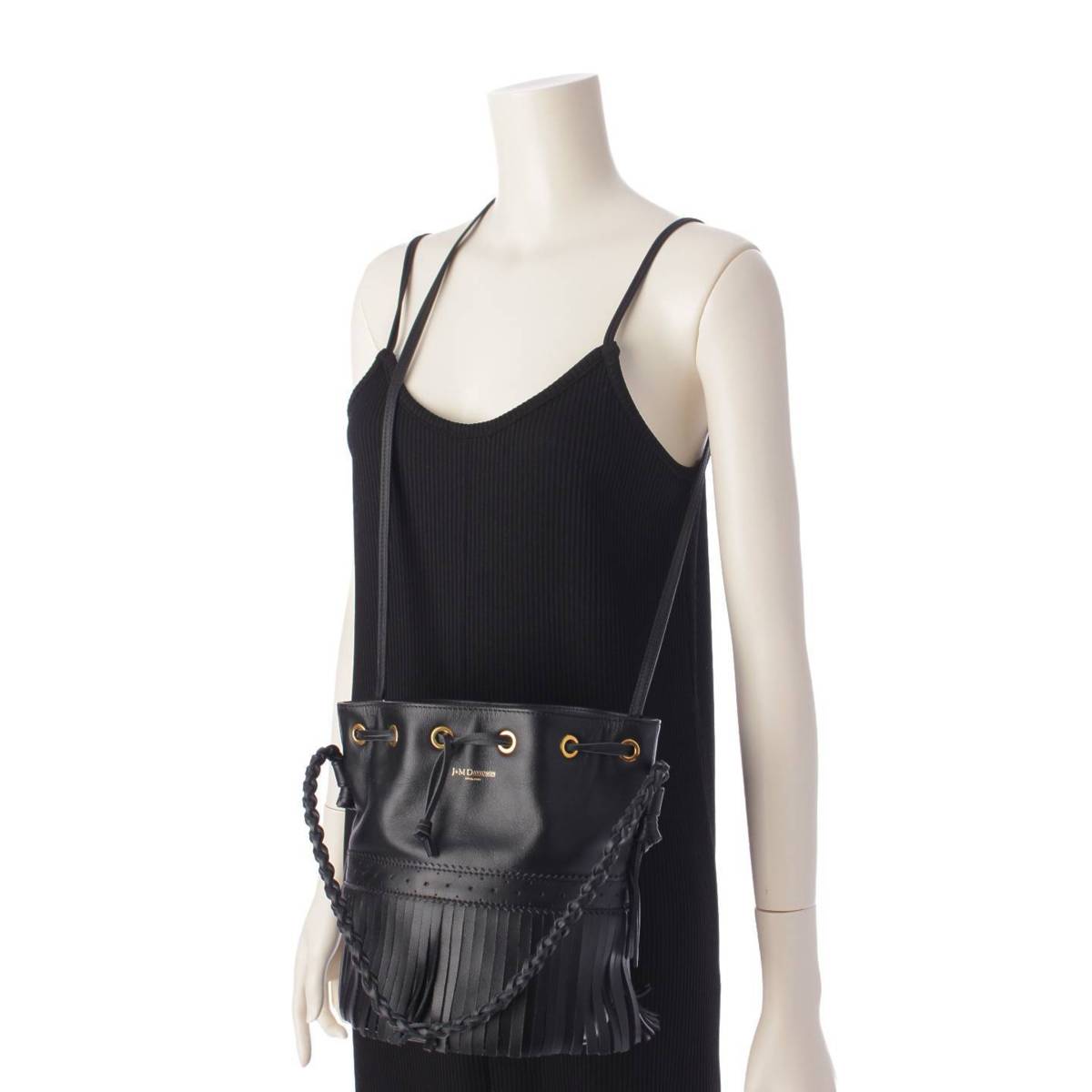 [J&M DAVIDSON] J&M DAVIDSON Carnival Drawstring Fringe Leather Shoulder Bag Black [Used] [Authenticated/Genuine Product Guaranteed] 204374