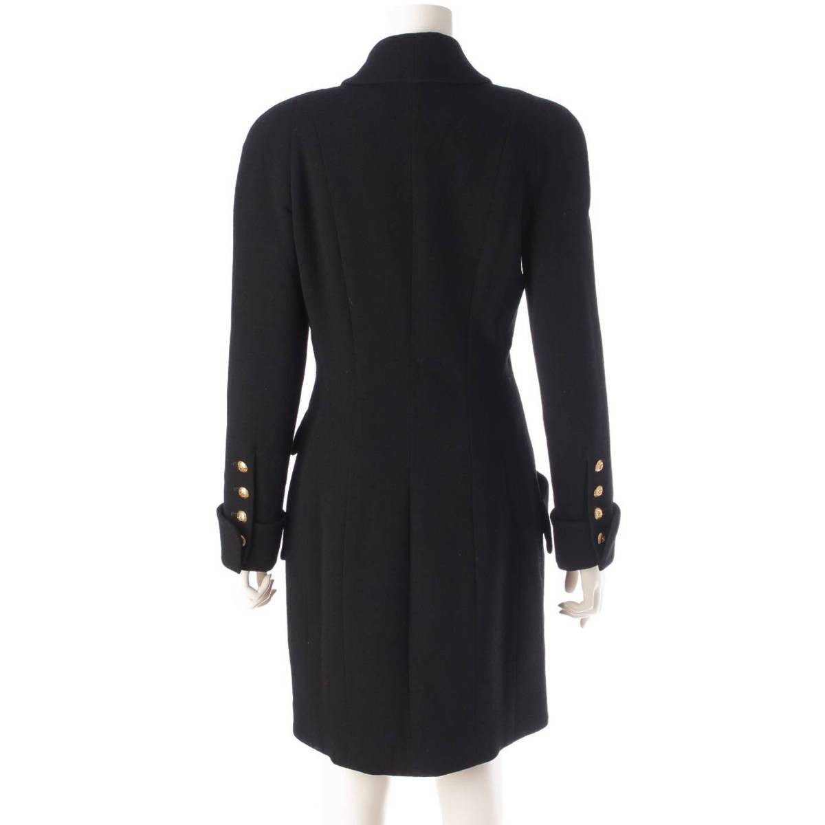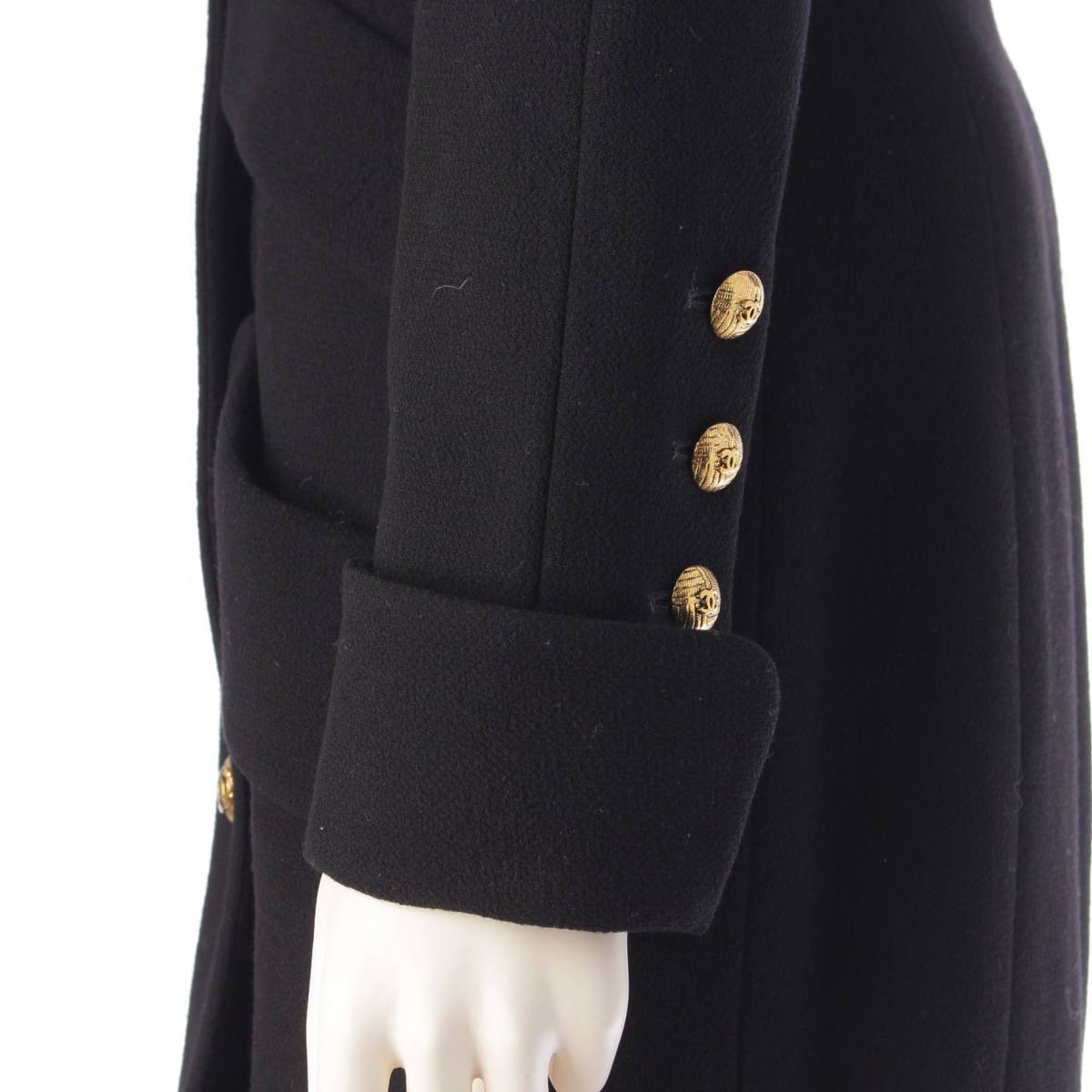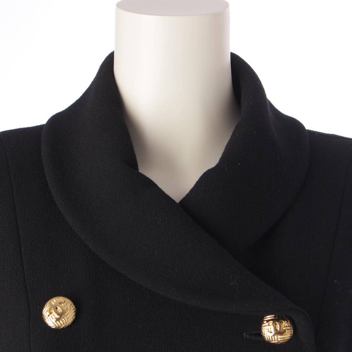 [Chanel] Chanel Vintage COCO Mark Double Button Wool Coat Outerwear Black 36 [Used] [Authenticated and Guaranteed Authentic] 204961