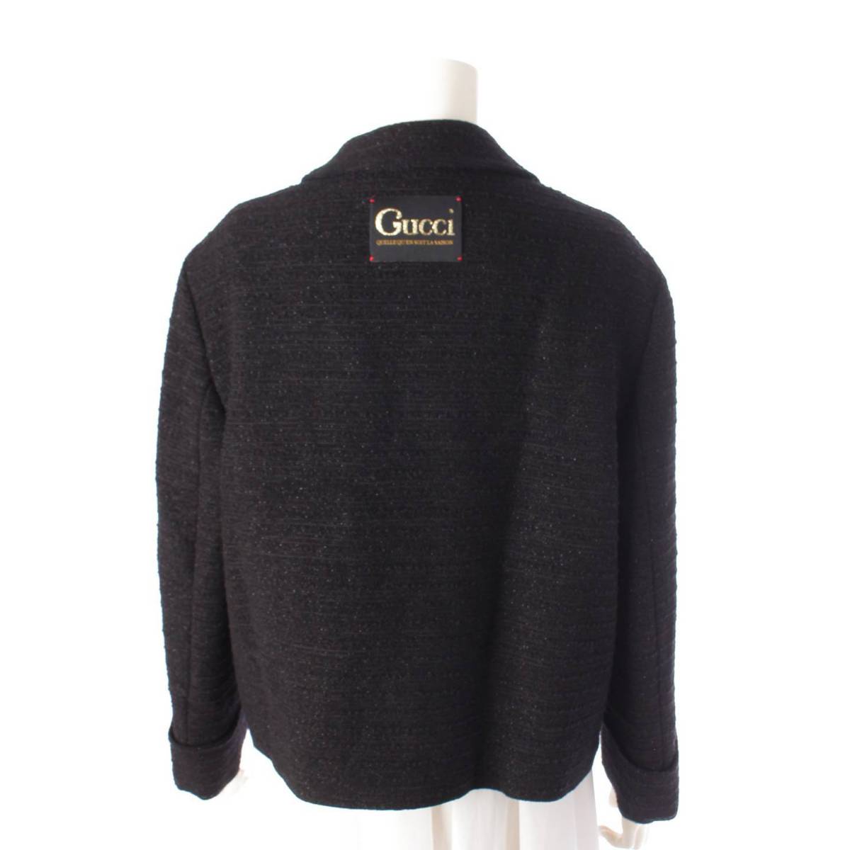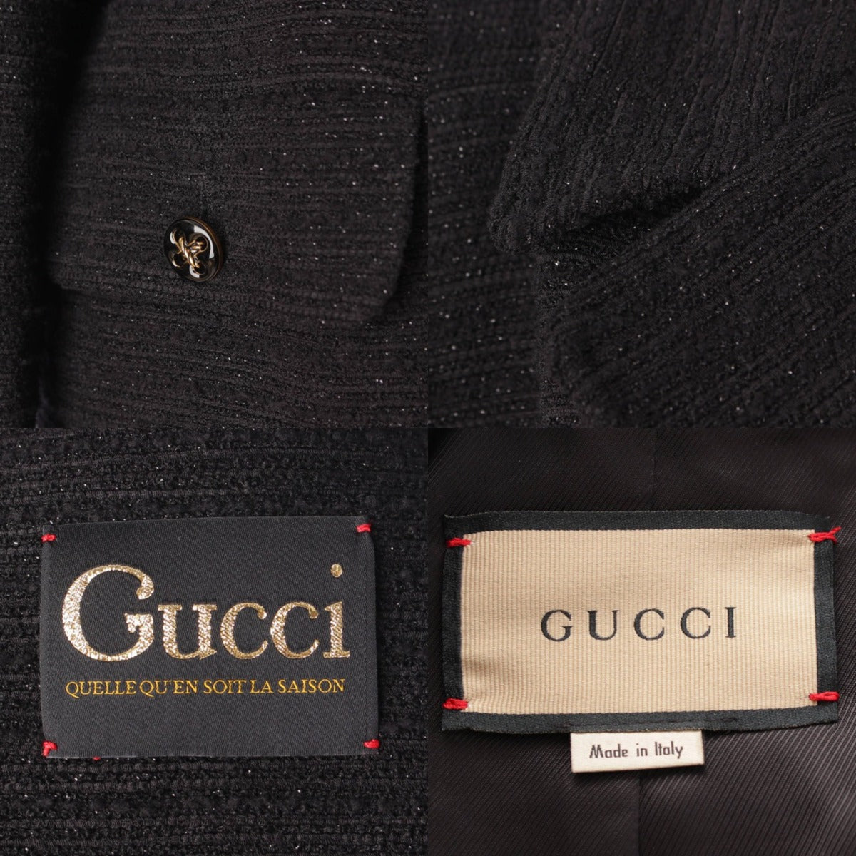 [Gucci] Gucci Back Logo Tweed Wool Tailored Double Breasted Jacket 643287 Black 40 [Used] [Authenticated and Guaranteed Authentic] 205017