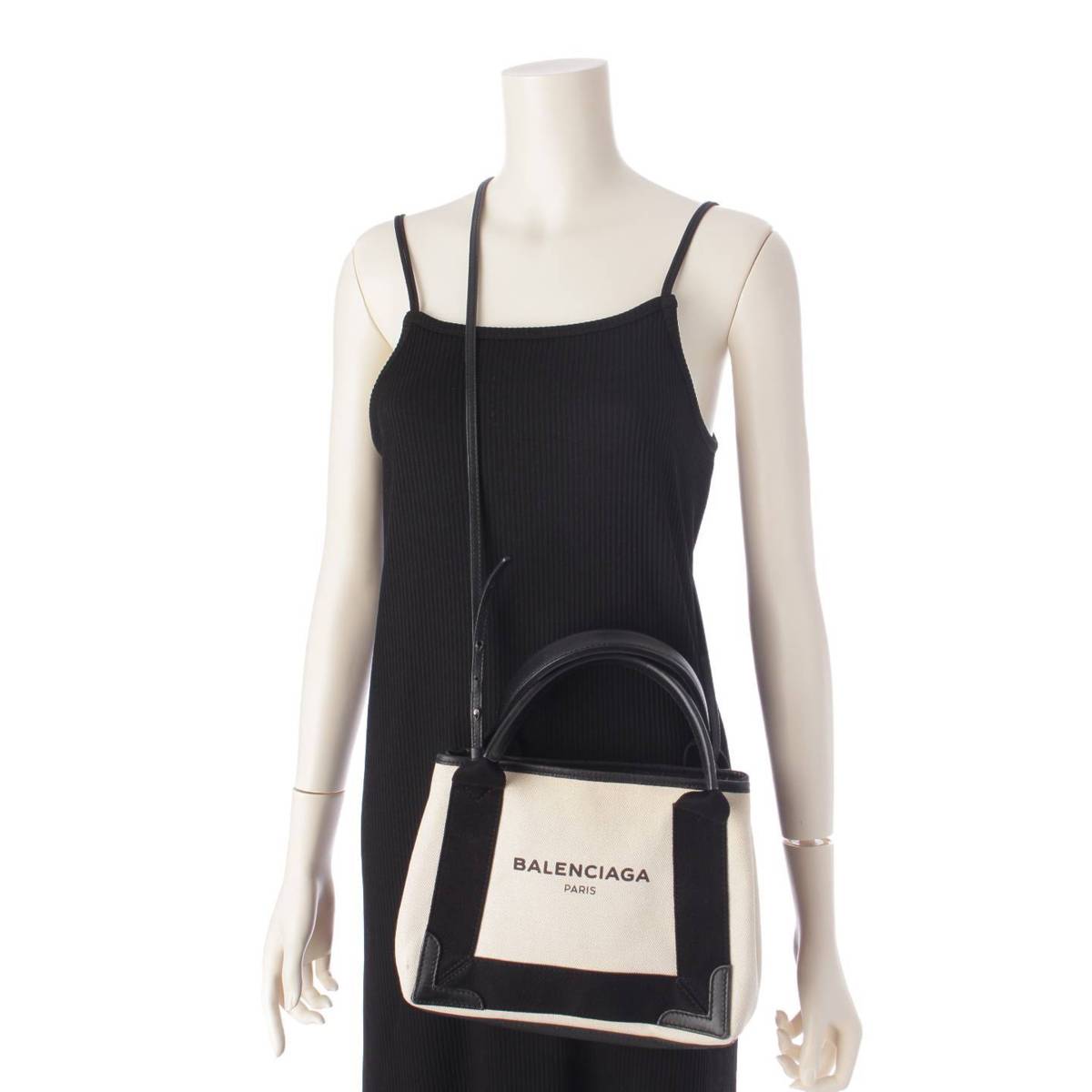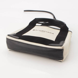 [Balenciaga] Balenciaga Navy Cabas XS Canvas 2-way Tote Bag 390346 White x Black [Used] [Authenticated and Guaranteed Authentic] 205060
