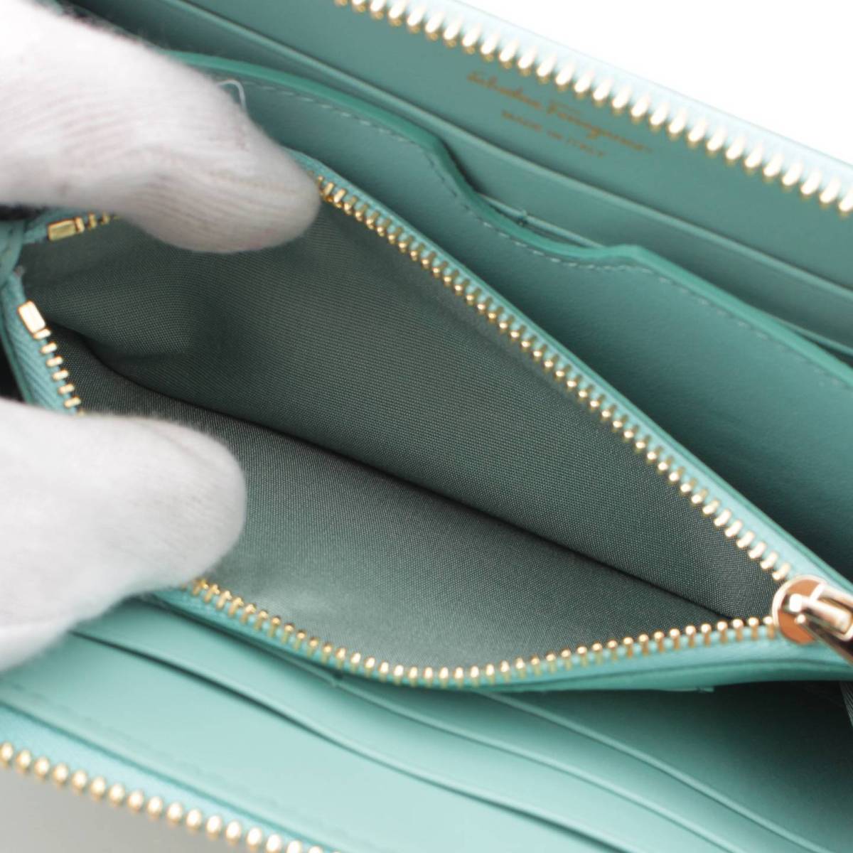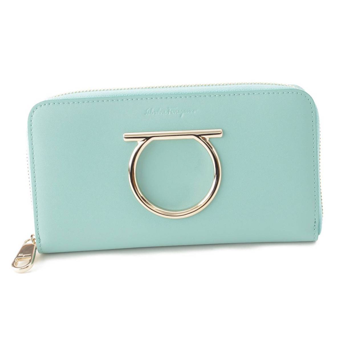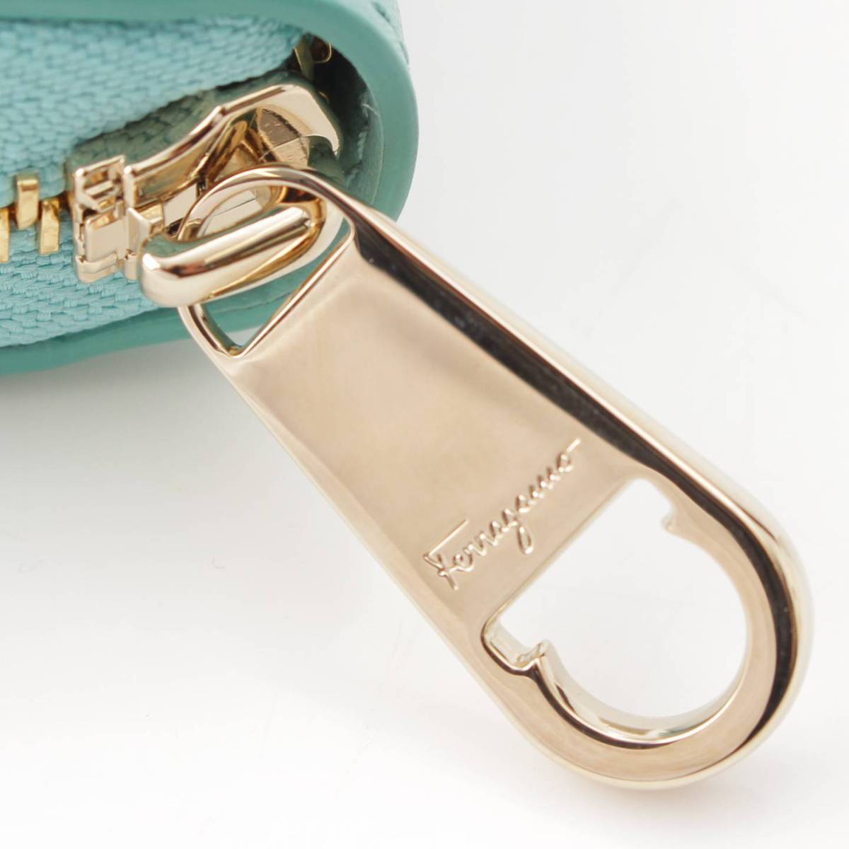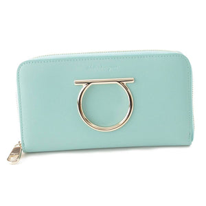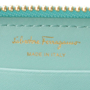 [Salvatore Ferragamo] Salvatore Ferragamo Gancini Leather Zip Around Purse Wallet Green [Used] [Authenticated and Guaranteed Authentic] 205487