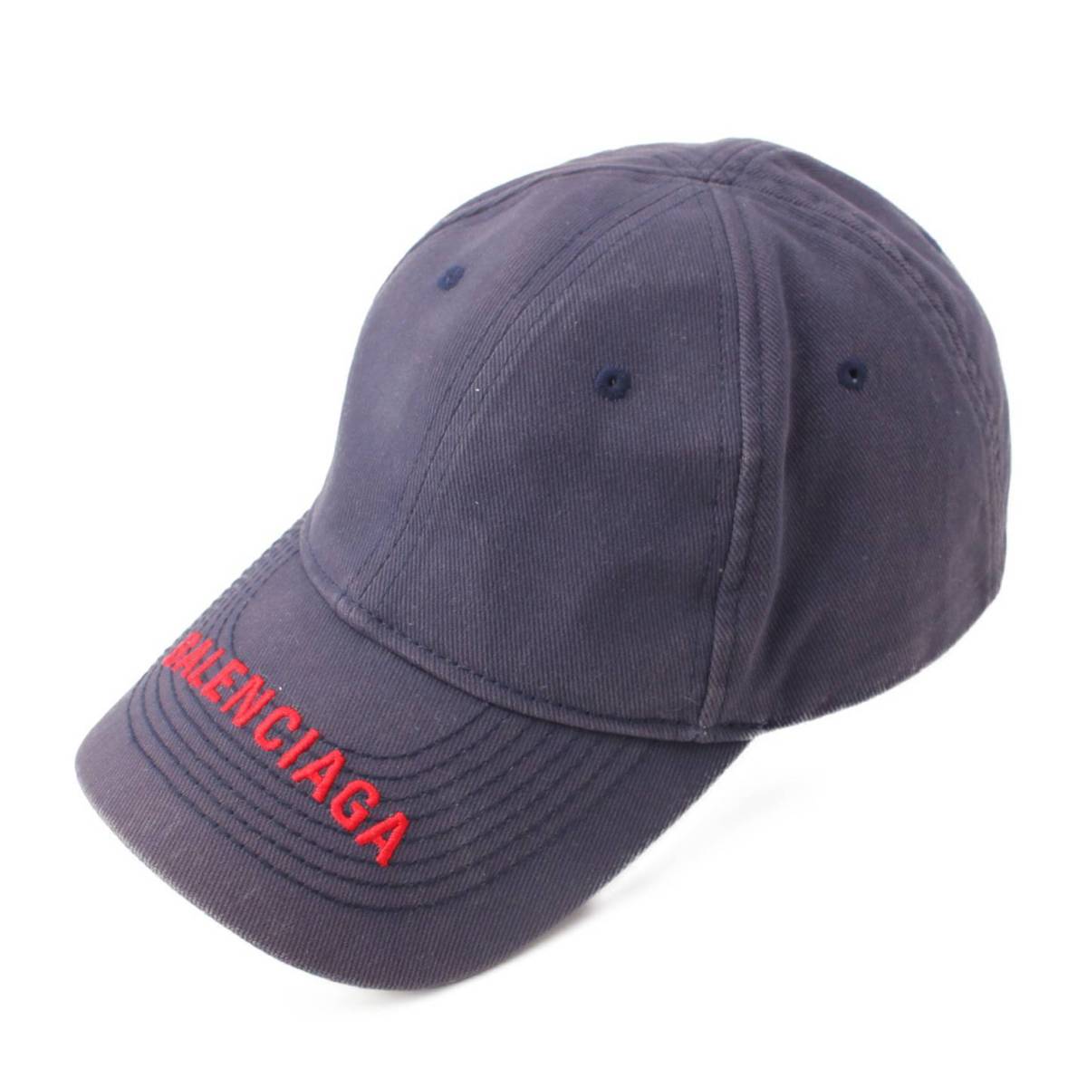 [Balenciaga] Balenciaga Logo Cotton Baseball Cap Hat Navy x Red L 59 [Used] [Authenticated and Guaranteed Authentic] 205559