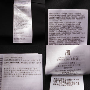 .detail {width:400px; font-size:12px;border-top:#000 2px solid; line-height:1.5em;border-bottom:#666 1px solid; margin-bottom:5px;}.detail .title{ padding:10px;border-bottom:#666 1px solid; background-color:#e3e3e3; margin:0;}.detail .text{ padding: 5px 10px;} Product details Material: Please see the composition tag Color: Black Product number: J02DL0007 Accessories: Bow tie (detachable) Spare button Damage area: Stain on the inside of the collar Reference price when new: yen *As this is a used item, there may be damage that is not listed on the main body or accessories. Please note. Product condition A: Little signs of use, no noticeable scratches or damage. Size: 34 Shoulder width: around 21.3" Bust: around 23.2" Sleeve length: around 23.6" Length: around 32.7" *Measurements taken flat. *Please allow for some error.