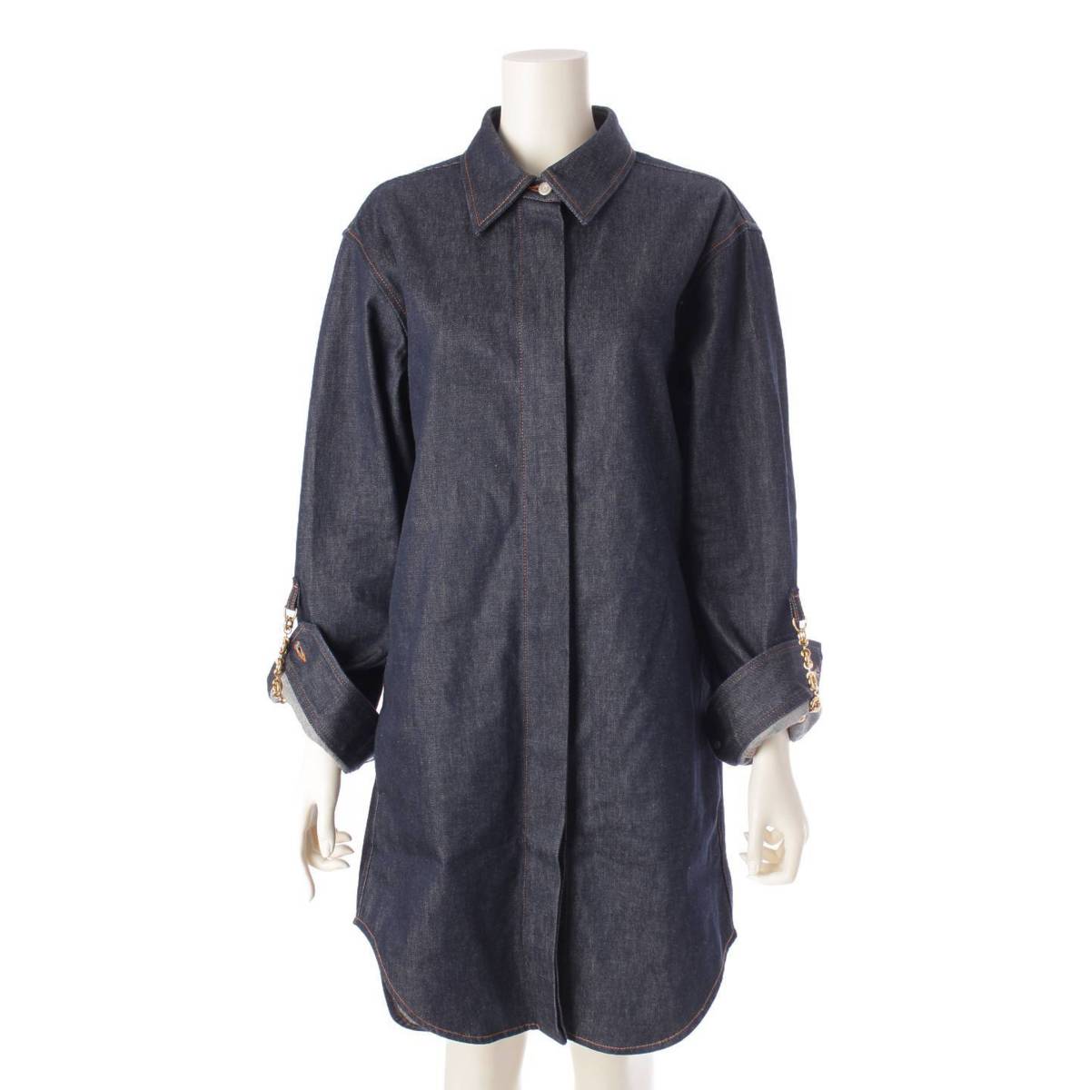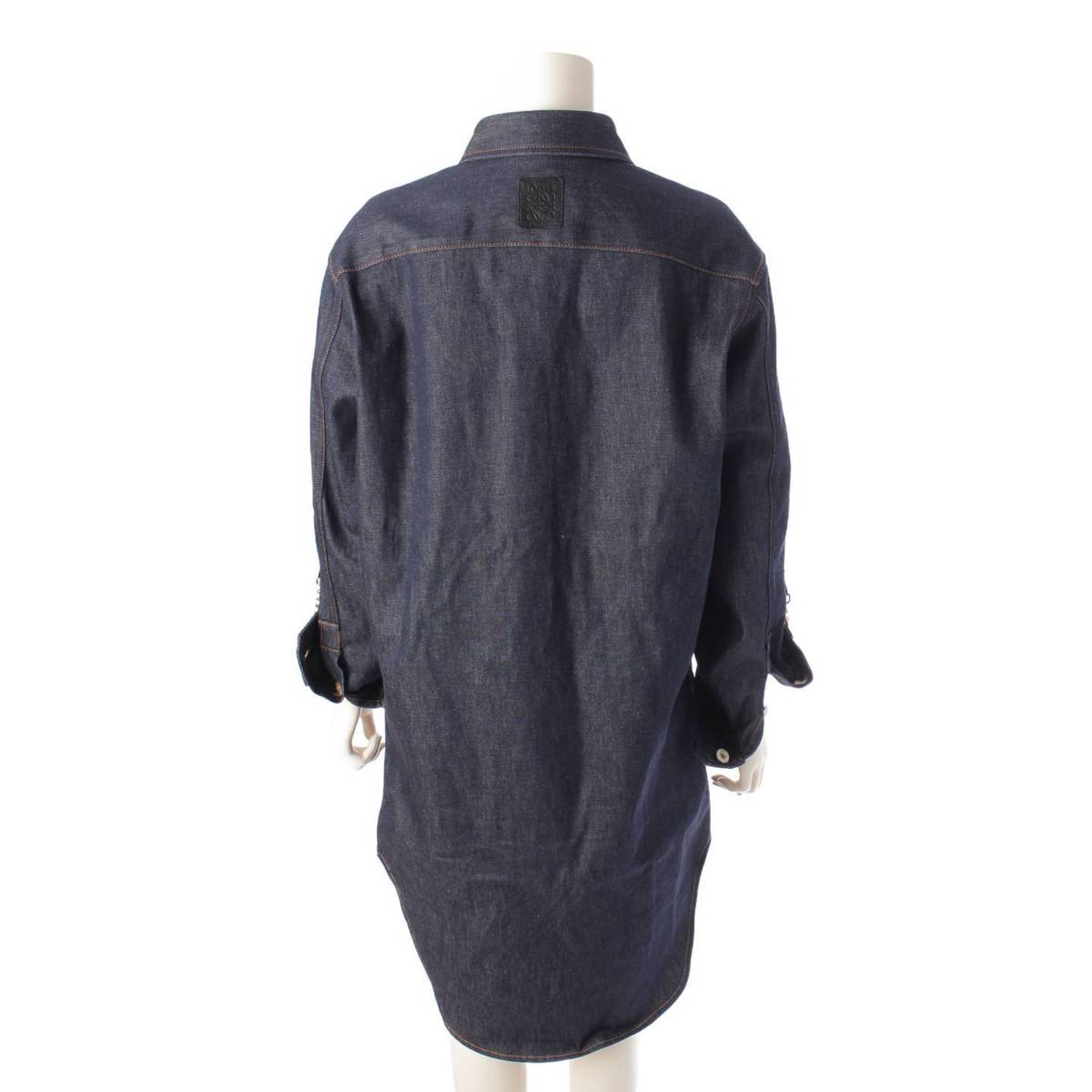 LOEWE 24Stainless Steel cotton Anagram Chain denim shirt one piece dress S359Y13X64 Raw Denim 32