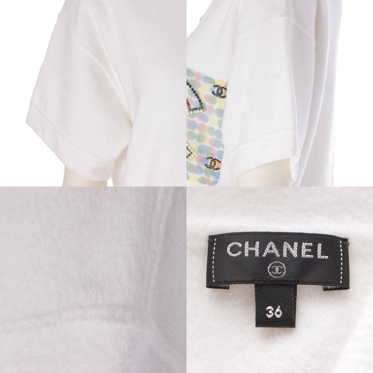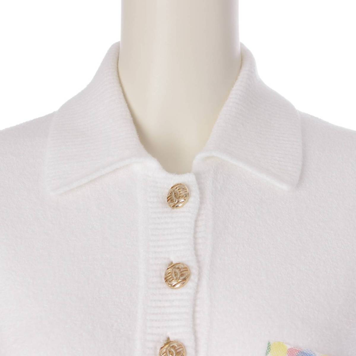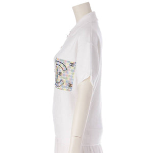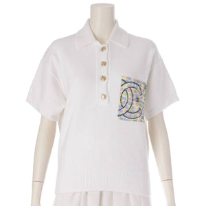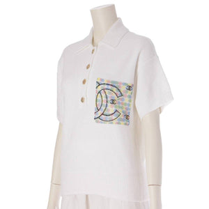 [Chanel] Chanel COCO Mark Pearl Polo Shirt T-Shirt Short Sleeve Top P70527 White 36 [Used] [Authenticated and Guaranteed Authentic] 206231
