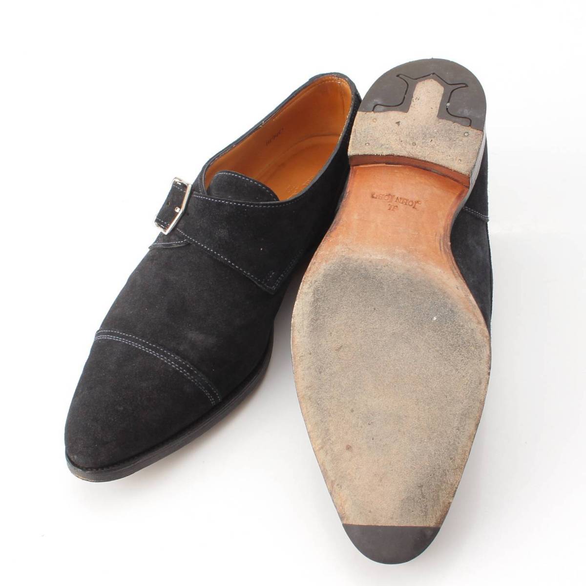 [John Lobb] John Lobb Men's Brenwood Suede Single Monk Loafer Shoes Black 61/2 [Used] [Authenticated and Guaranteed Authentic] 206453