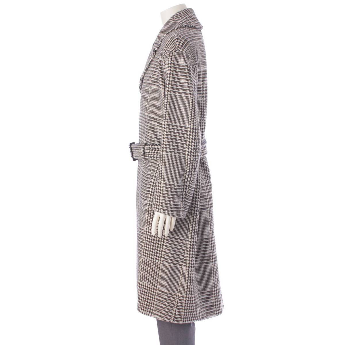 [Hermes] Hermes 2017 Wool Men's Glen Check Belted Trench Coat PT9504 Black 46 [Used] [Authenticated and Guaranteed Authentic] 206490