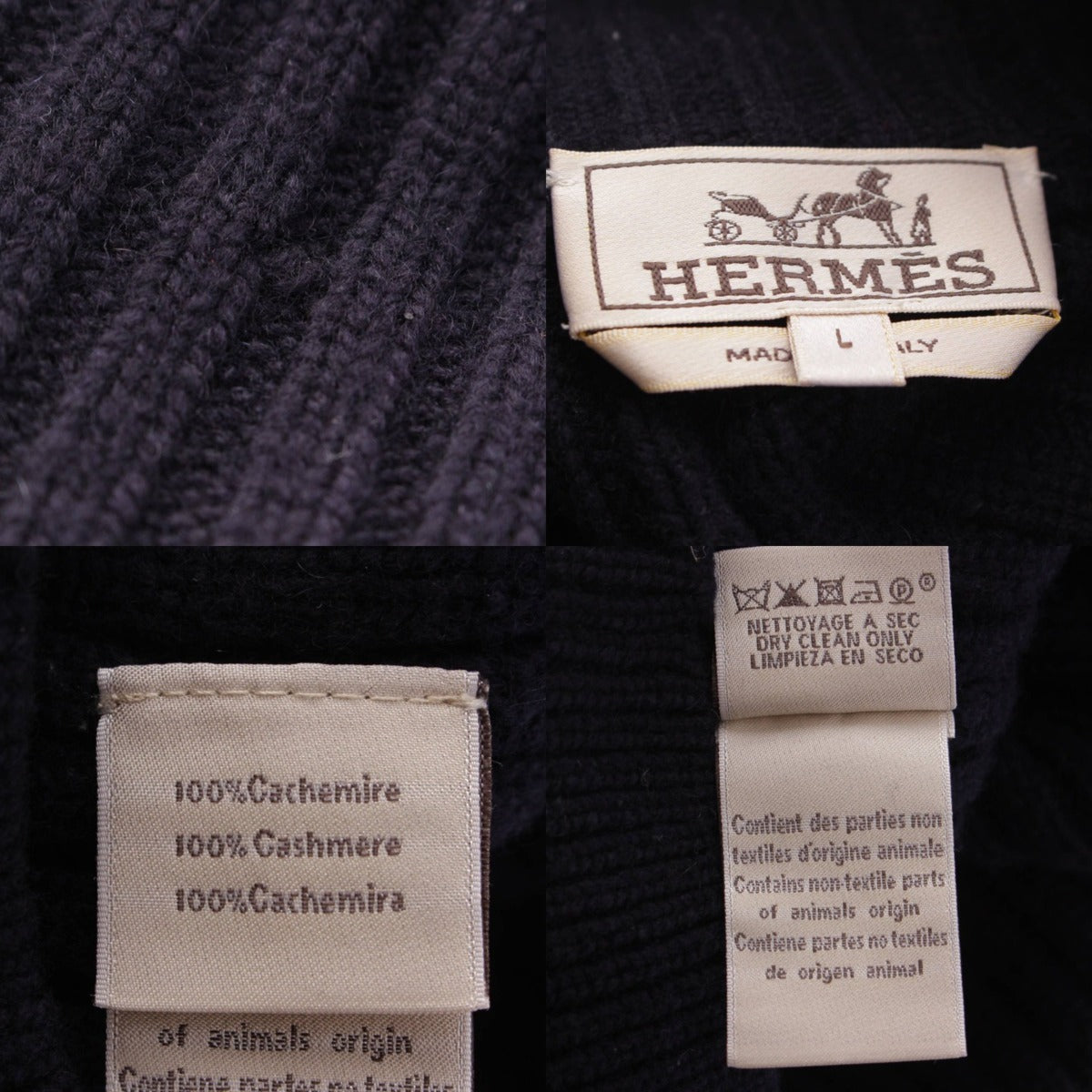 [Hermes] Hermes Cashmere Shawl Collar Long Sleeve Knit Sweater Top Navy L [Used] [Authenticated/Genuine Product Guaranteed] 206501