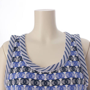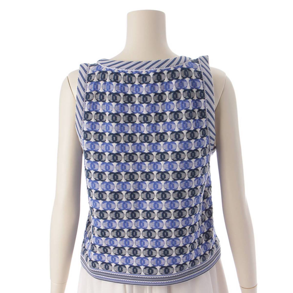 [Chanel] Chanel 19P COCO Mark Knitted Tank Top Sleeveless Top P60691 Blue 38 [Used] [Authenticated and Guaranteed Authentic] 208049