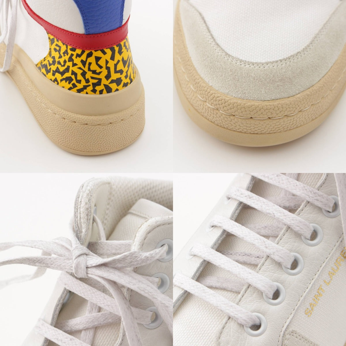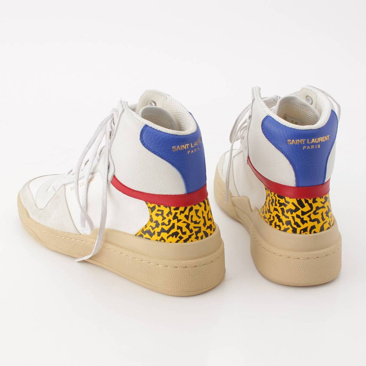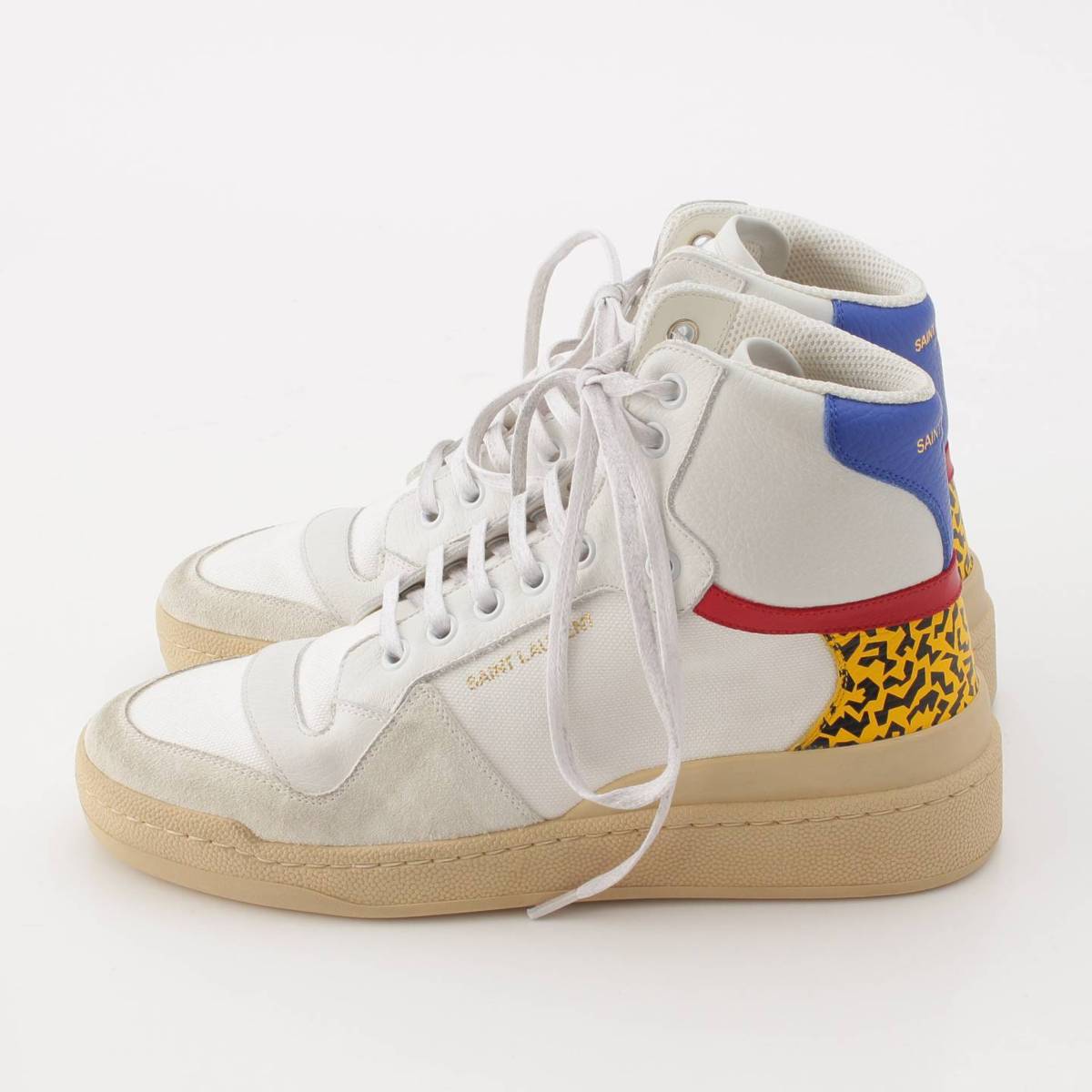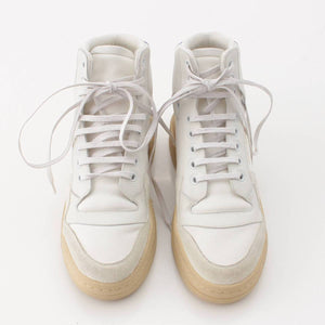 [Saint Laurent] SAINT LAURENT SL24 Distressed Leather Mid-Top Sneakers Leopard 669434 White 38 [Used] [Authenticated and Guaranteed Authentic] 208112