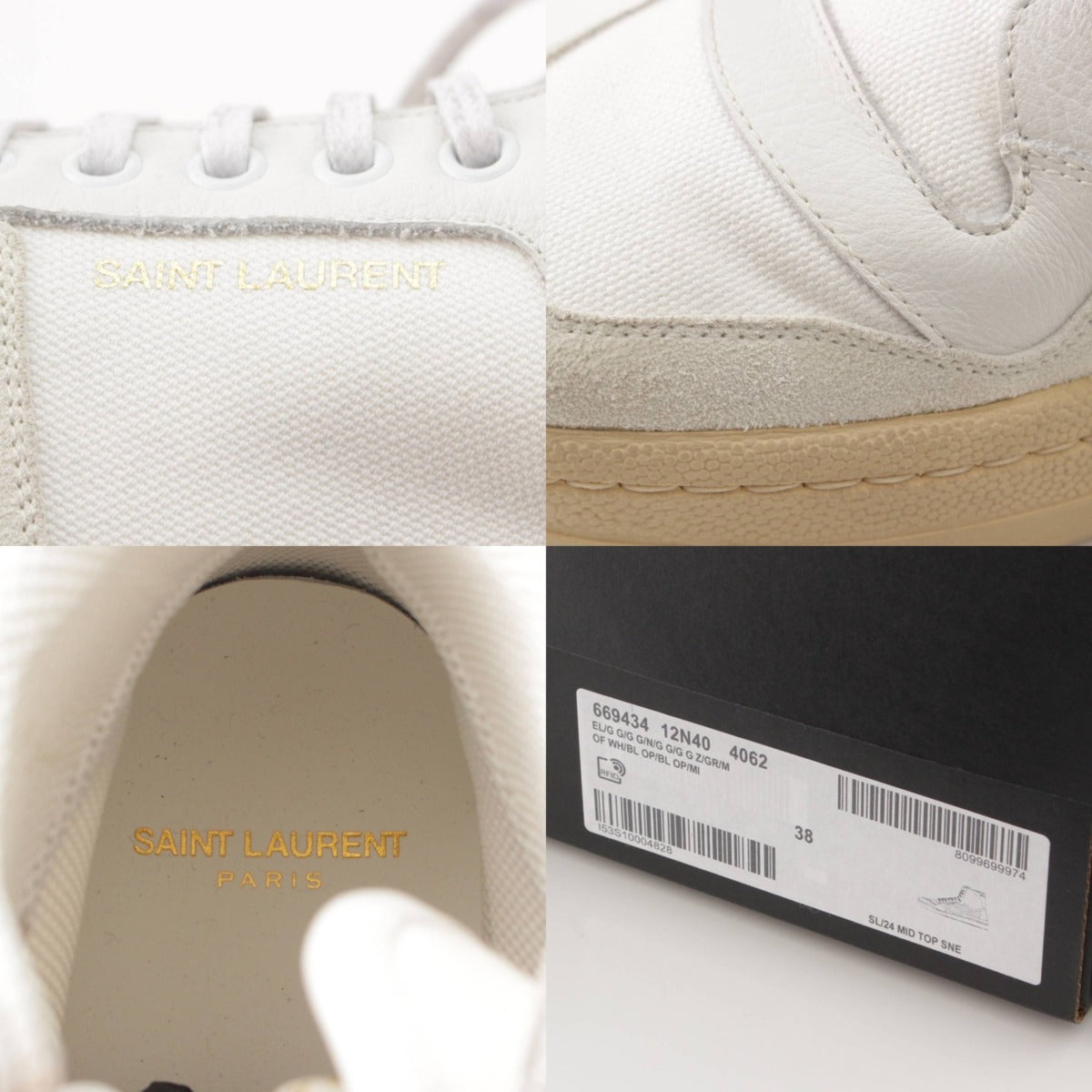 .detail {width:400px; font-size:12px;border-top:#000 2px solid; line-height:1.5em;border-bottom:#666 1px solid; margin-bottom:5px;}.detail .title{ padding:10px;border-bottom:#666 1px solid; background-color:#e3e3e3; margin:0;}.detail .text{ padding: 5px 10px;} Product details Material: Leather x Canvas Model number: 669434 12N40 4062 Color: White Accessories: Storage bag, box Damage: Slight scuffs on the outsole, stained Upper, some wrinkles around the heel Reference price when new: yen *As this is a used item, there may be damage not listed on the product or accessories. Please note. Product condition A: Little signs of use, no noticeable scratches or damage. Size: 38 (around 9.8") Width: around 3.7" Height: around 5.5" Outsole length: around 10.4" *Please allow for some error.