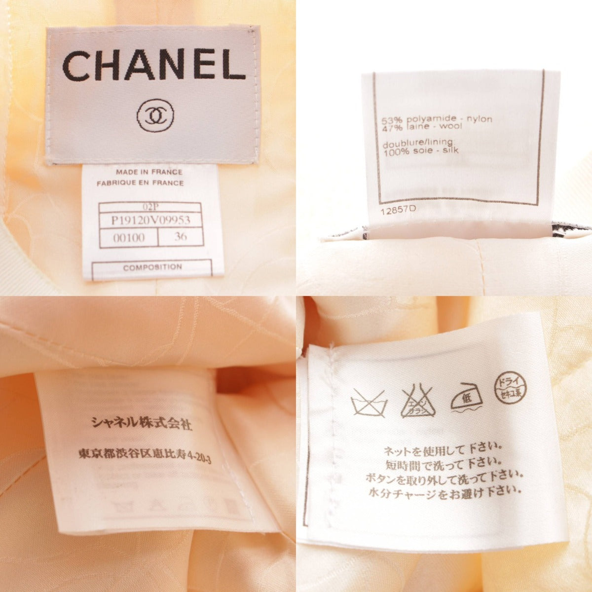 [Chanel] Chanel 02P Tweed COCO Mark Button Camellia Lining Jacket MP19120 Off White 36 [Used] [Authenticated and Guaranteed Authentic] 208372