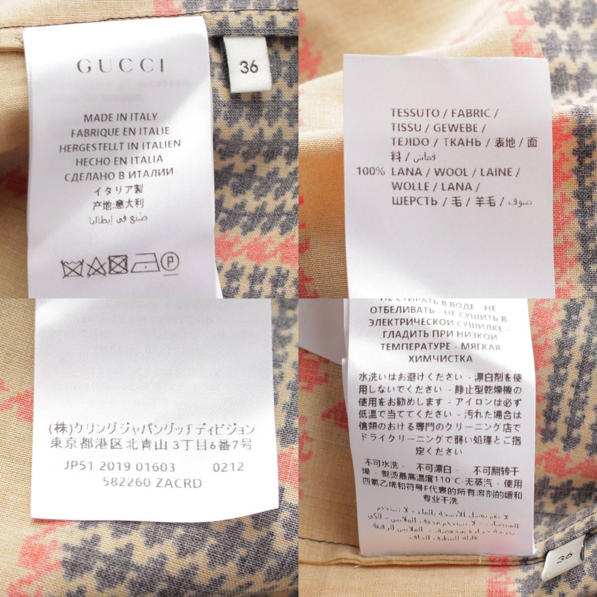 [Gucci] Gucci 2019 Houndstooth Wool Shirt Blouse 582260 Multicolor 36 [Used] [Authenticated and Guaranteed Authentic] 208463