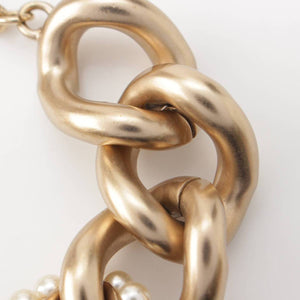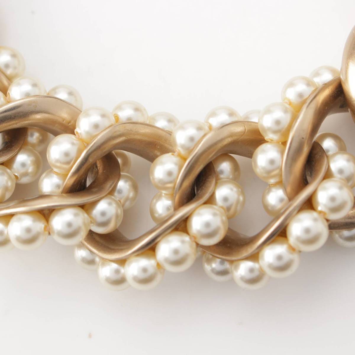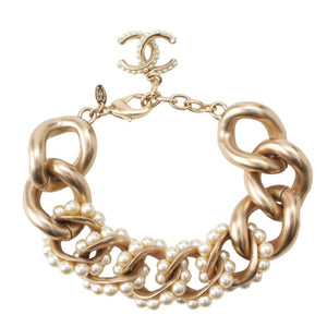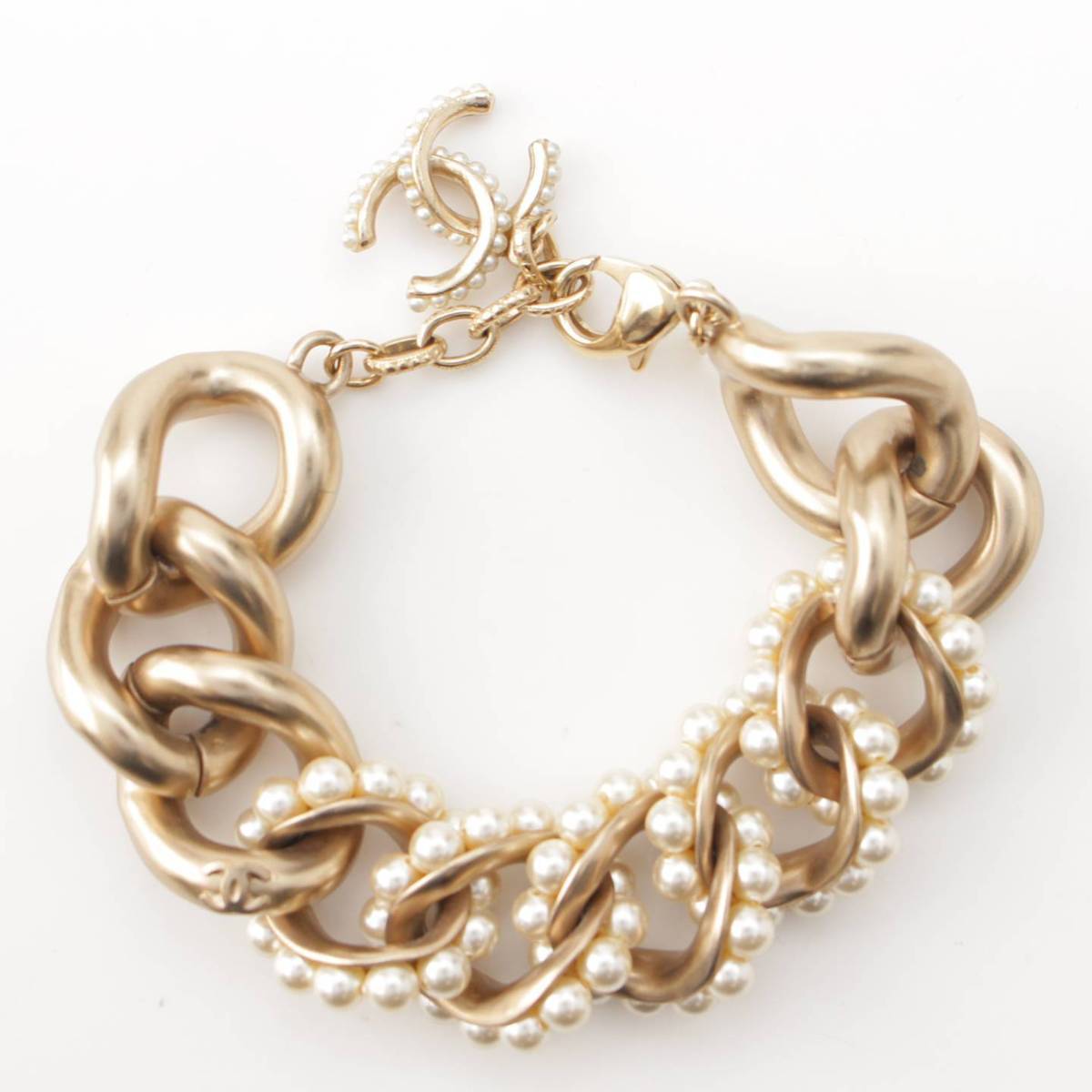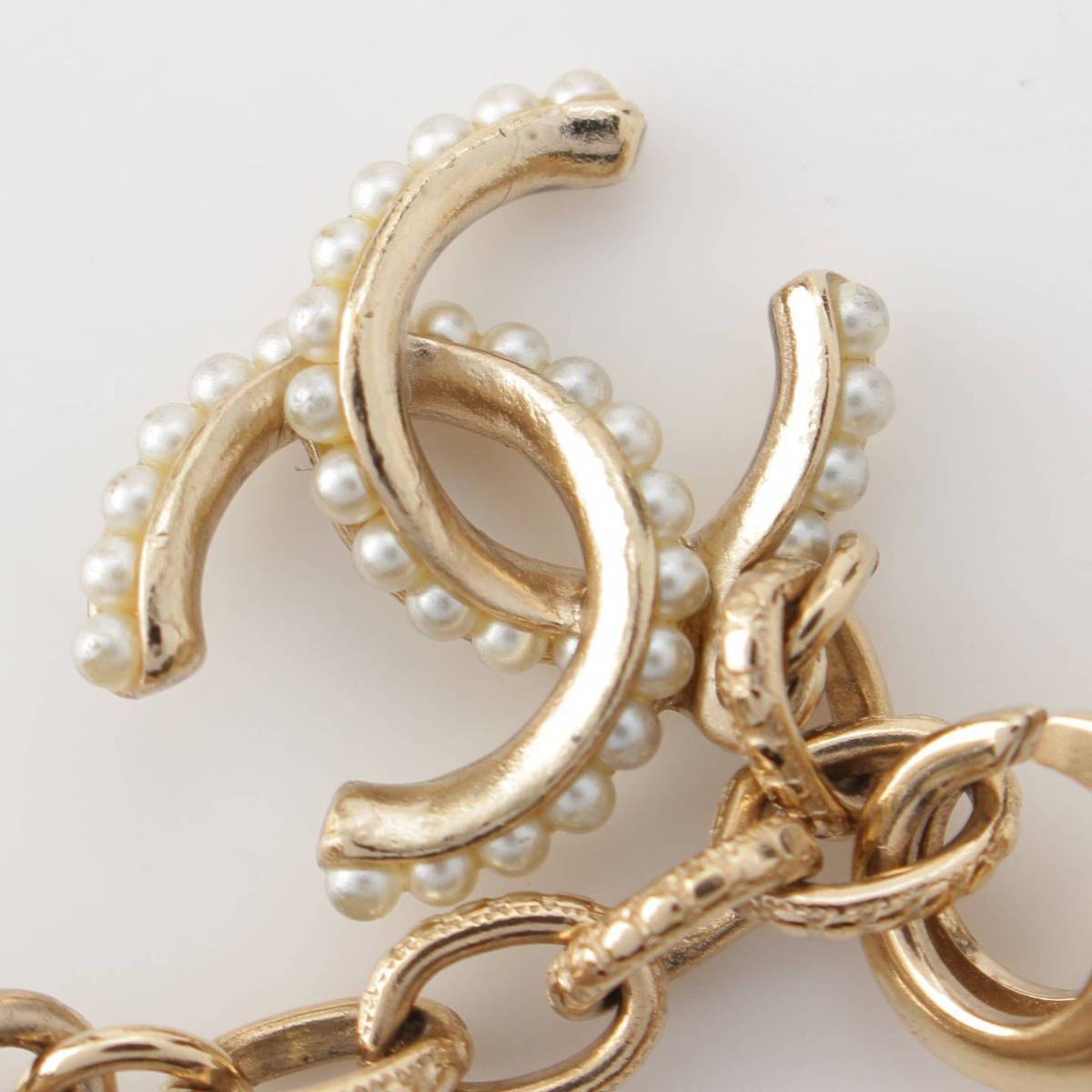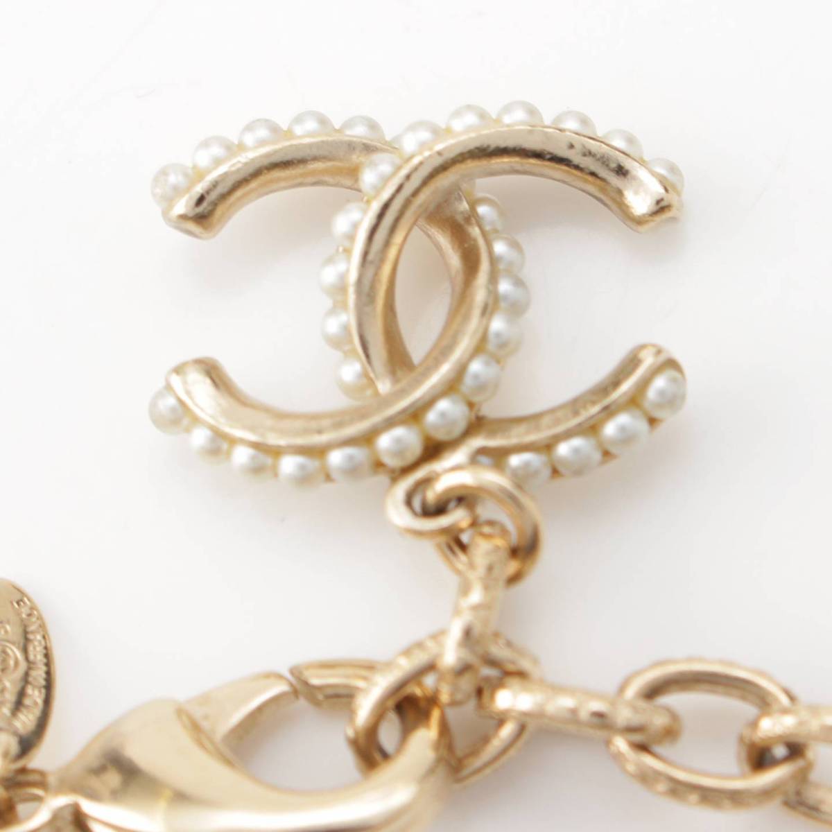 [Chanel] Chanel A13B COCO Mark Pearl Chain Gold Plated Bracelet Champagne Gold [Used] [Authenticated and Guaranteed Authentic] 208498