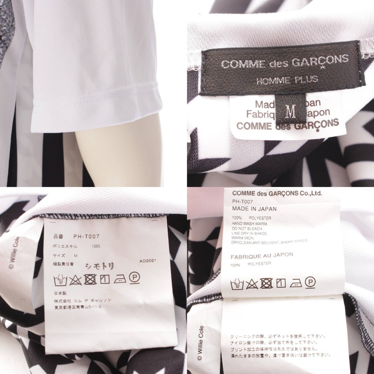 [Comme des Garcons] Comme des Garcons Homme Plus Men's AD2021 Striped Front Print Top Short Sleeve White M [Used] [Authenticated and Guaranteed Authentic] 208954