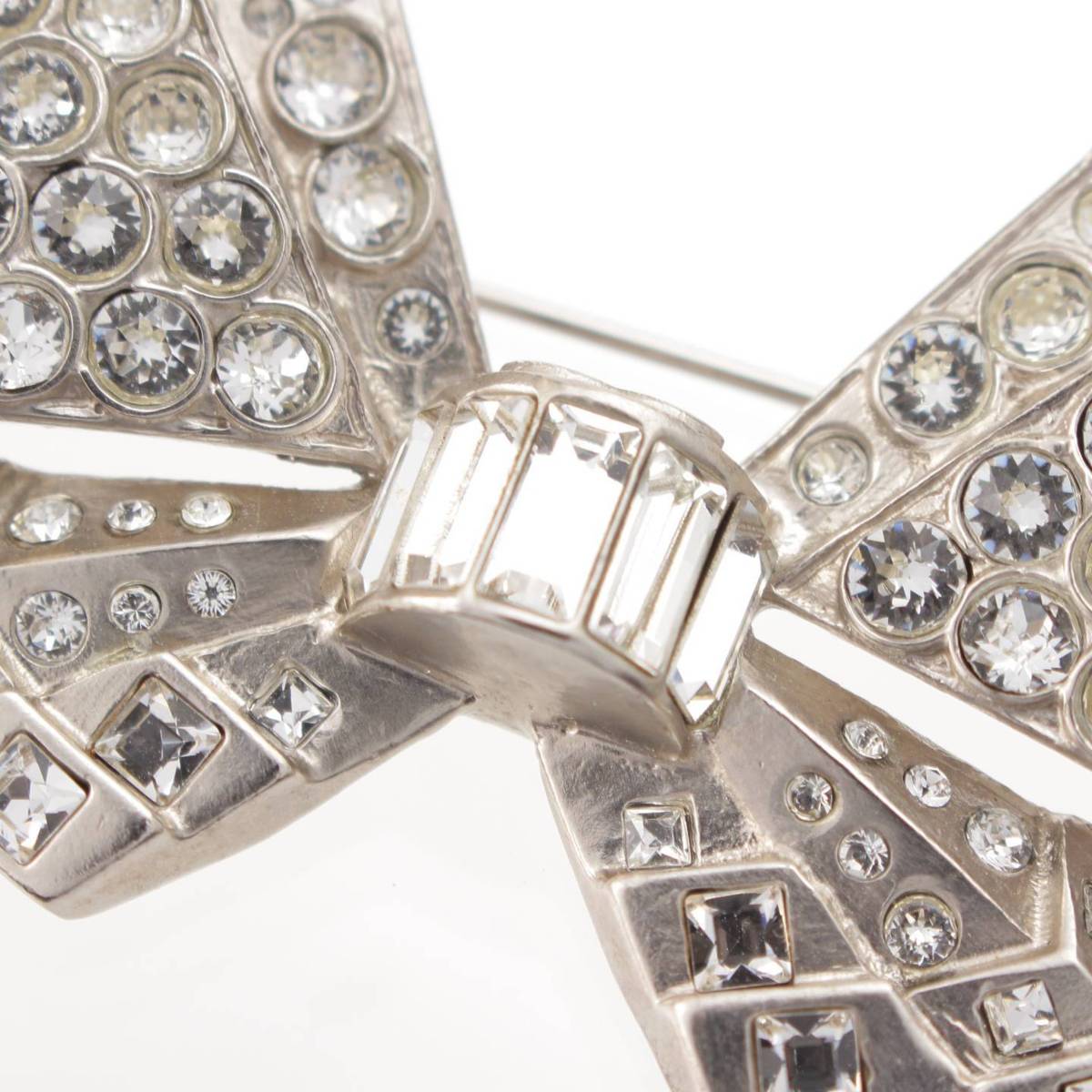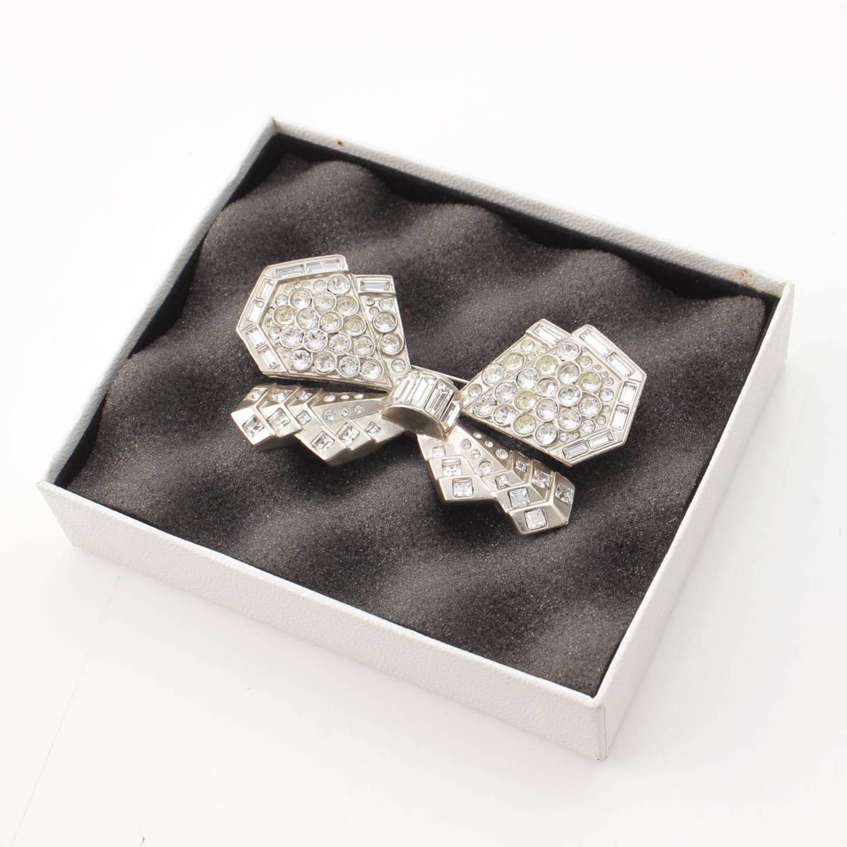 [Chanel] Chanel B14C Metallic Ribbon Motif Rhinestone Brooch Silver [Used] [Authenticated and Guaranteed Authentic] 209986