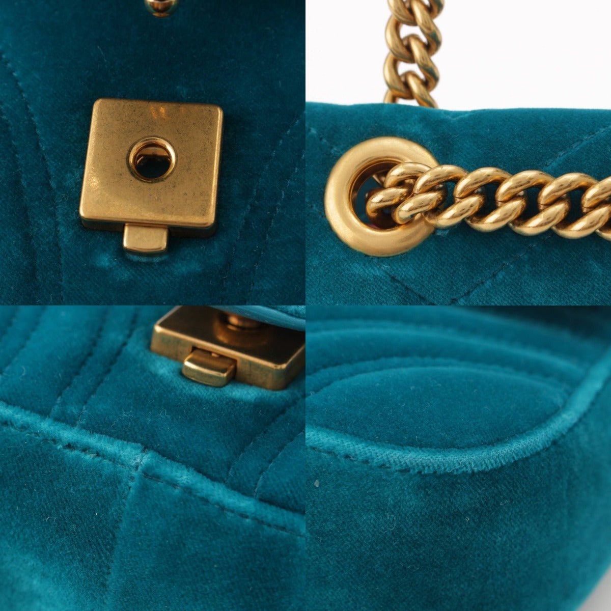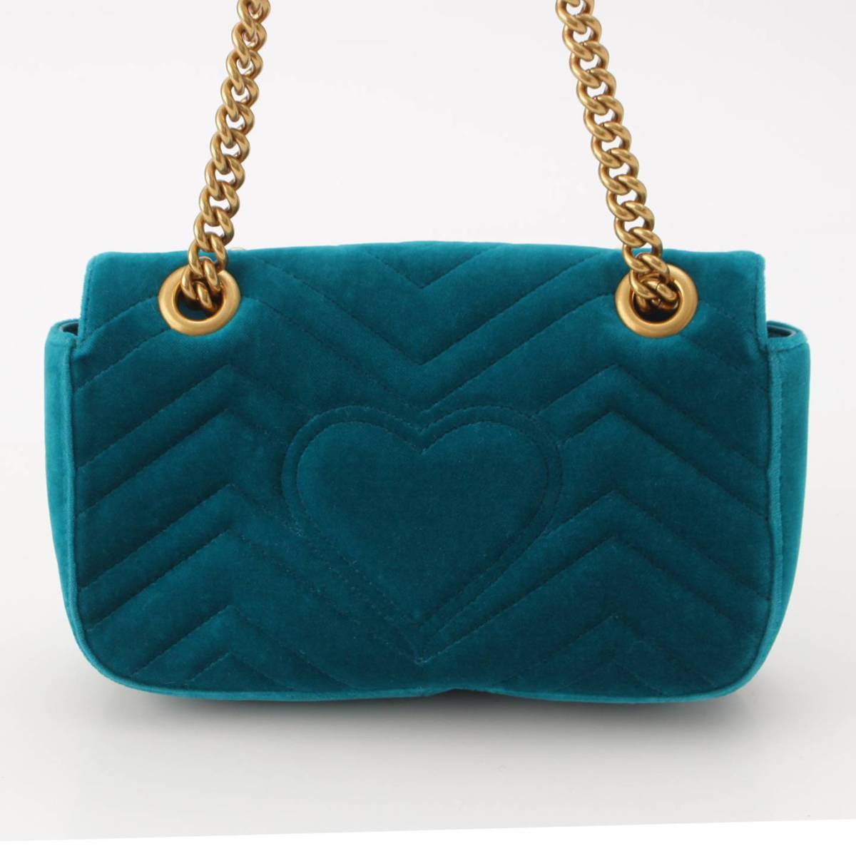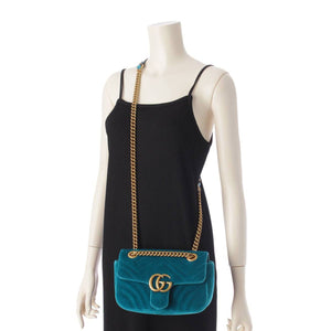 [Gucci] Gucci GG Marmont Velvet Chain Heart Shoulder Bag 446744 Green [Used] [Authenticated and Guaranteed Authentic] 210014