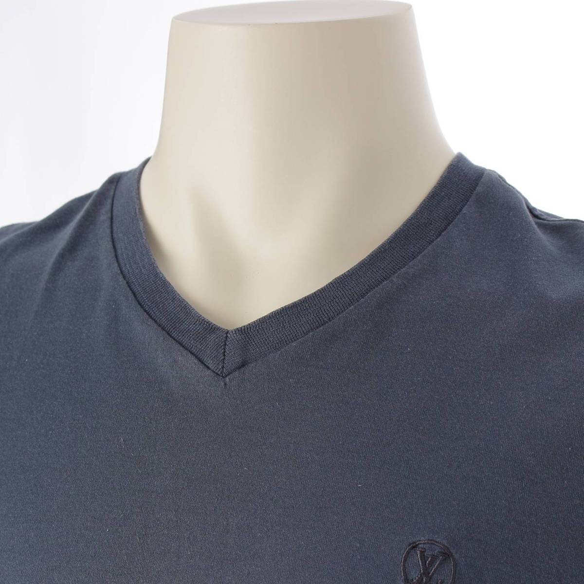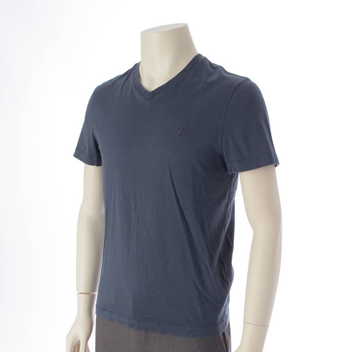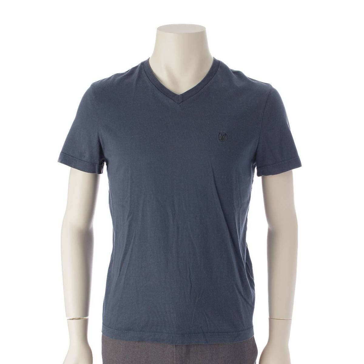 [Louis Vuitton] Louis Vuitton Men's V-neck LV Circle Logo Embroidered Short Sleeve T-shirt RM181Q JC8 HAY51W Blue XS [Used] [Authenticated and Guaranteed Authentic] 210569
