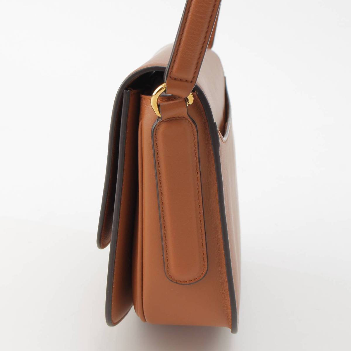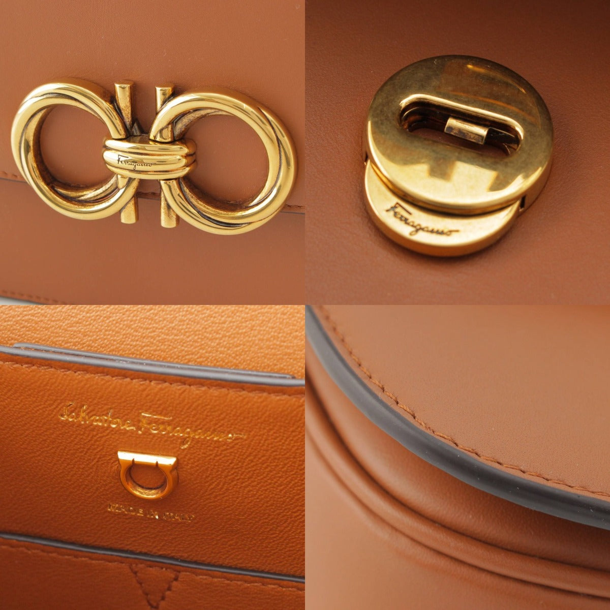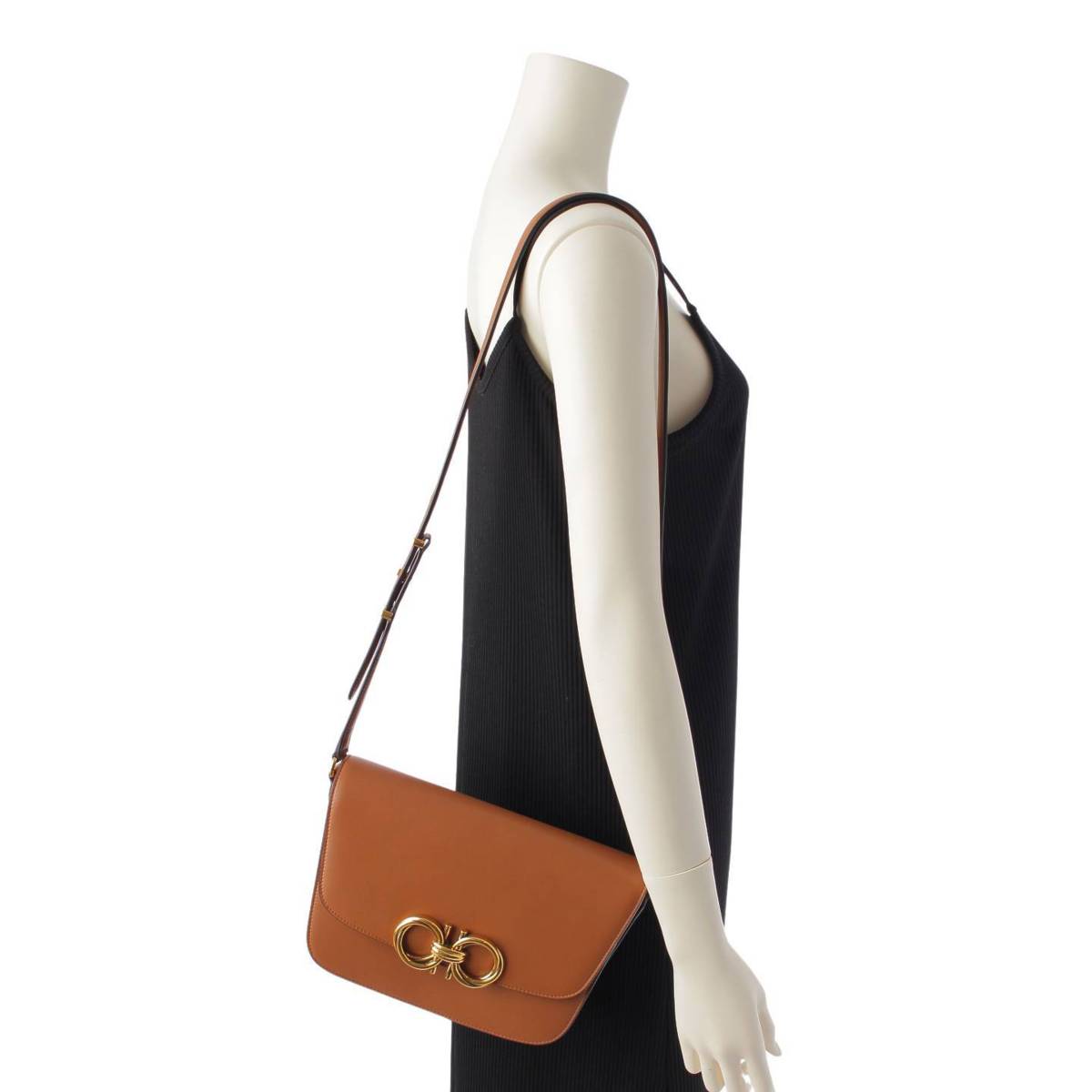 [Salvatore Ferragamo] Salvatore Ferragamo Trapeze Gold Metal Tan Shoulder Bag Brown [Used] [Authenticated and Guaranteed Authentic] 211526