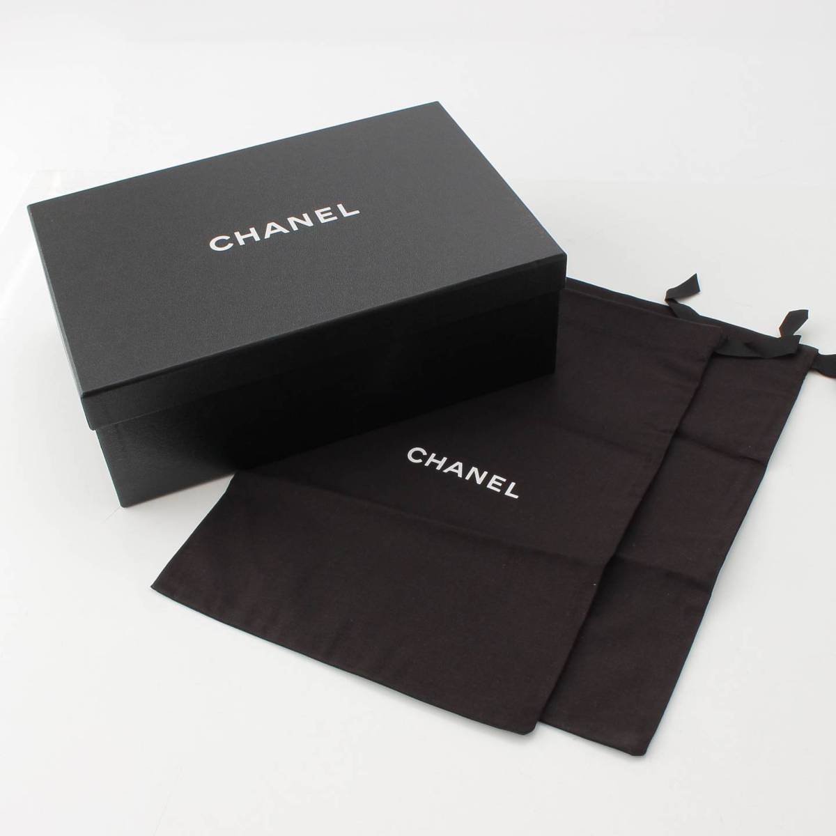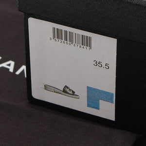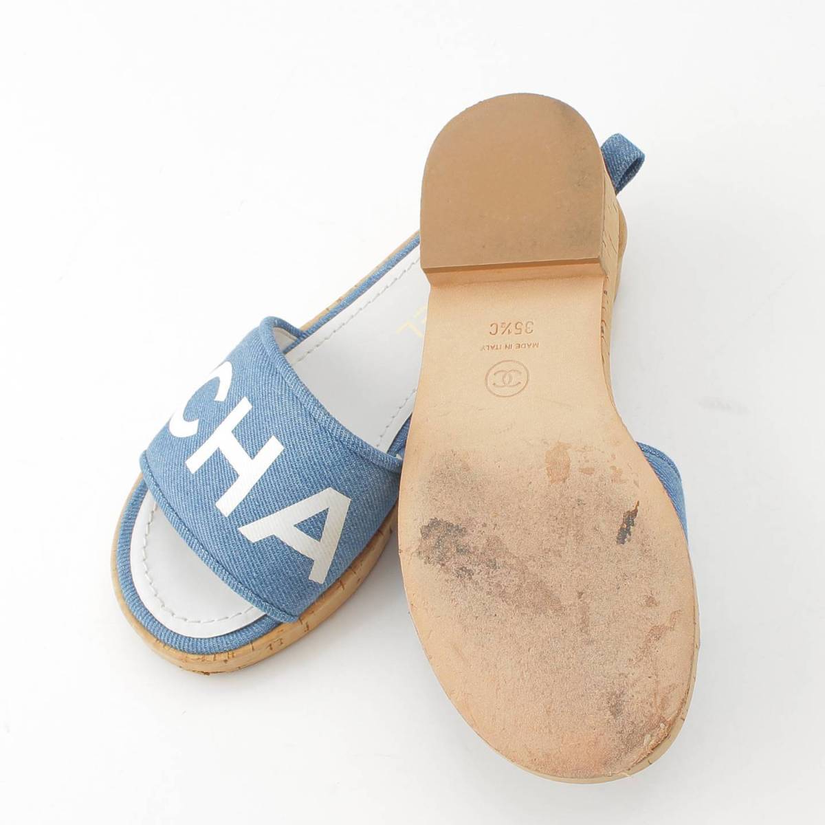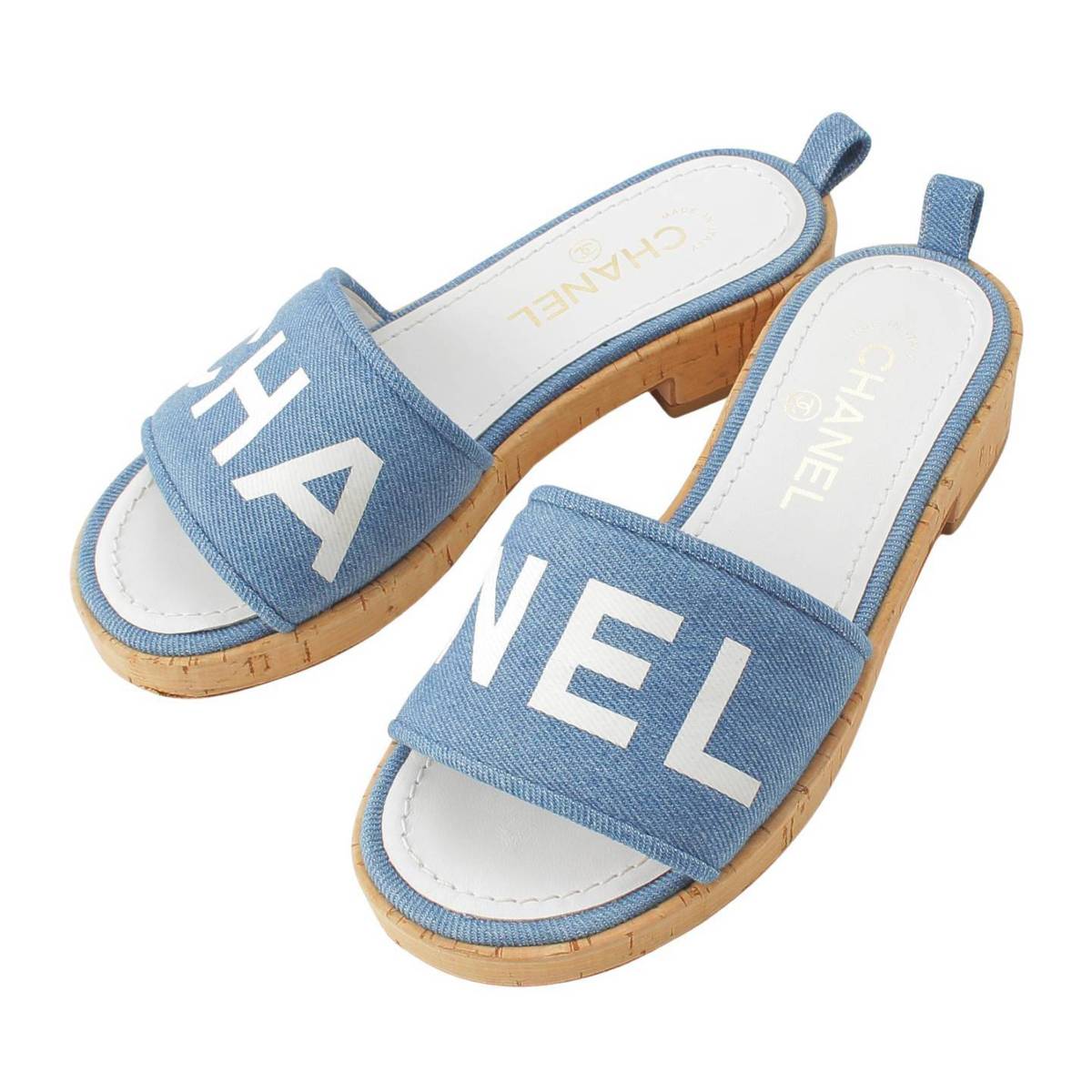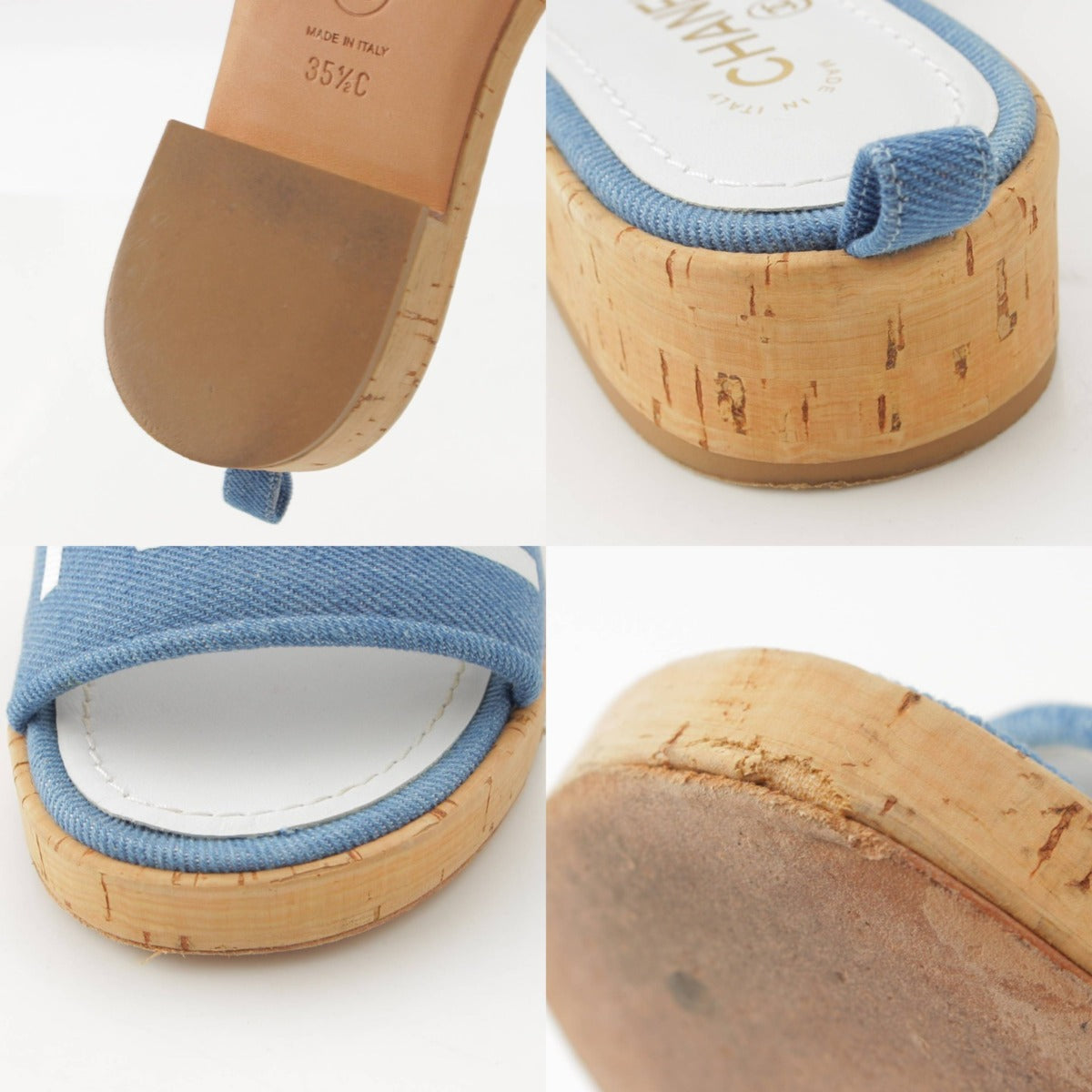 [Chanel] Chanel 19 Stainless Steel Denim Logo Cork Sole Sandals Mules G34876 Blue x White 35 1/2 [Used] [Authenticated and Guaranteed Authentic] 211682