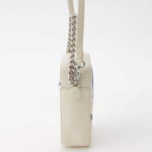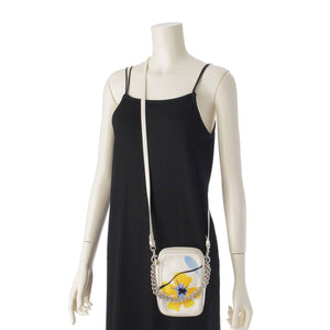 [J&M DAVIDSON] J&M DAVIDSON 20 Stainless Steel Pebble Mini Flower Motif Chain Handle Shoulder Bag White [Used] [Authenticated/Genuine Product Guaranteed] 211874