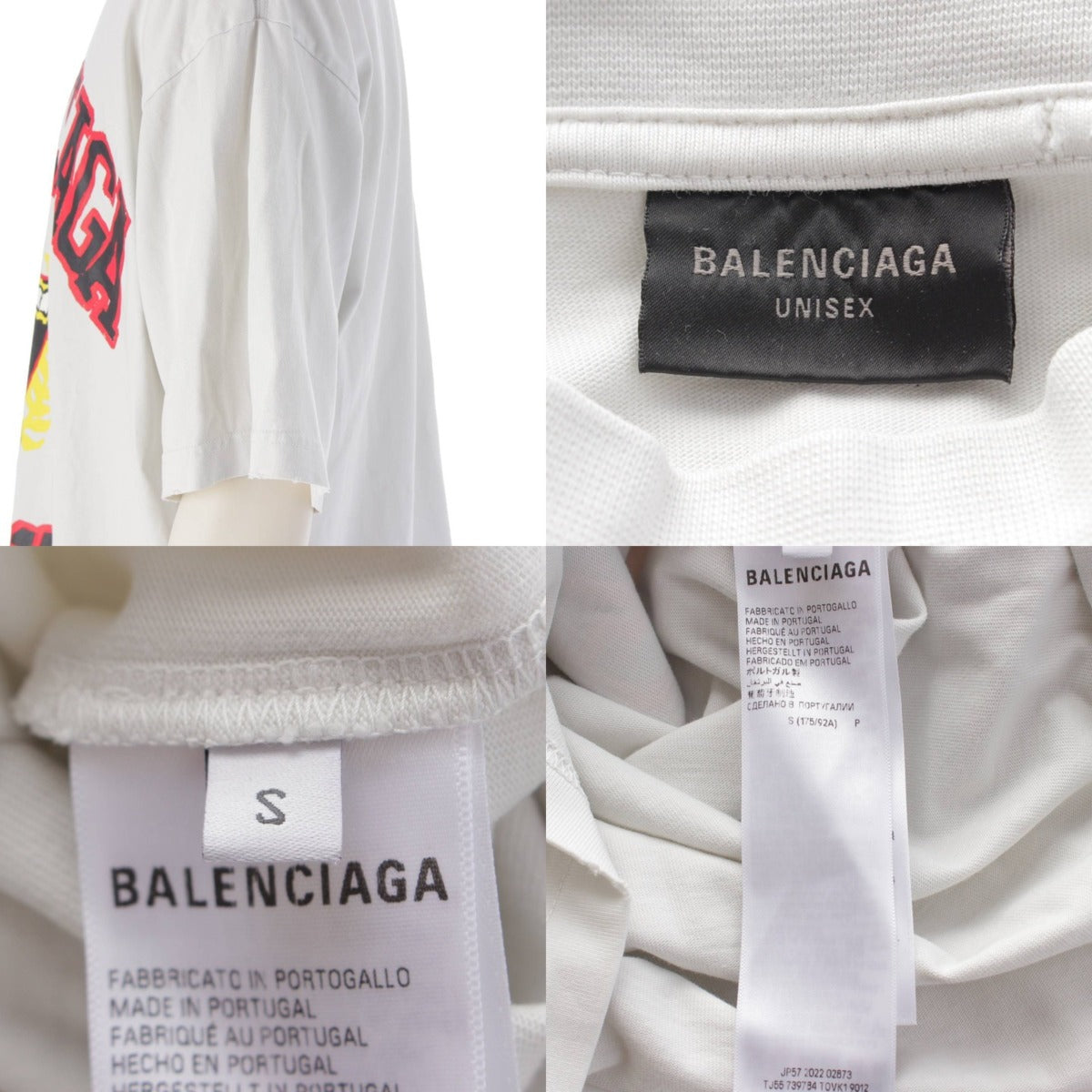 [Balenciaga] Balenciaga Men's 22 Stainless Steel Print College Shirt Short Sleeve Cut and Sew T-Shirt 739784 White S Unused [Used] [Authenticated and Guaranteed Authentic] 212060